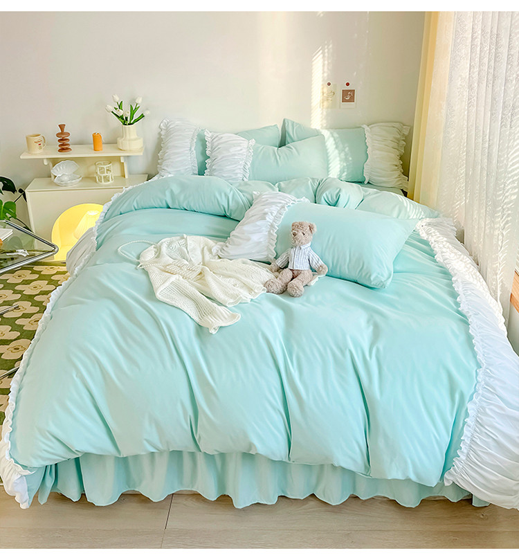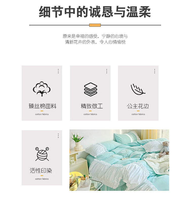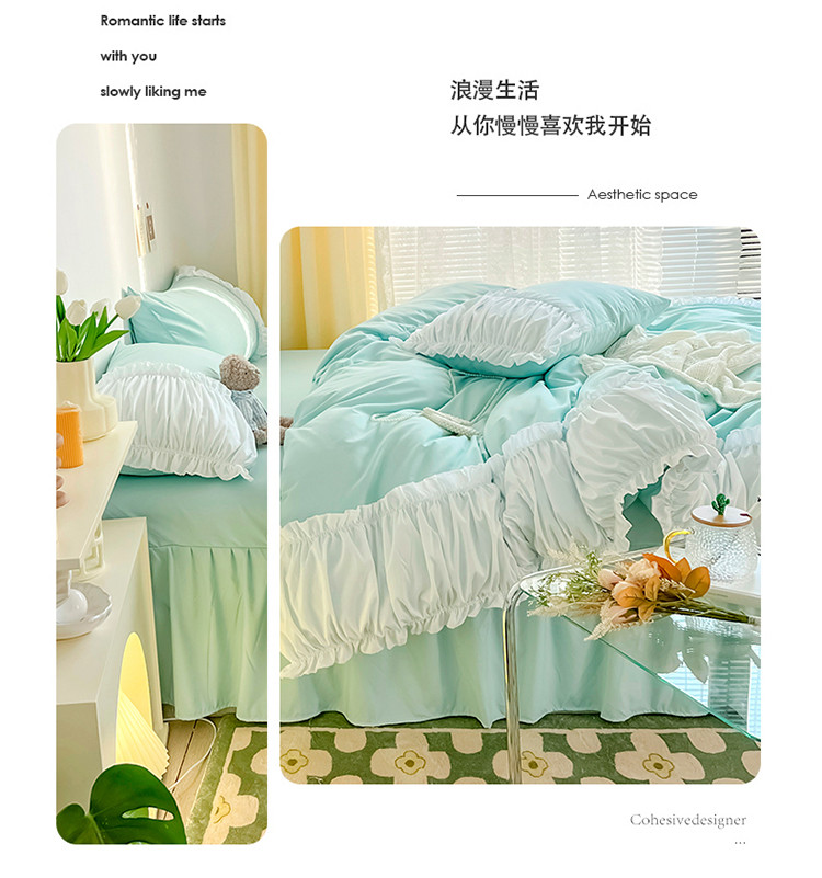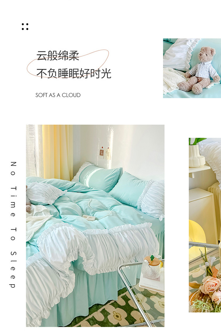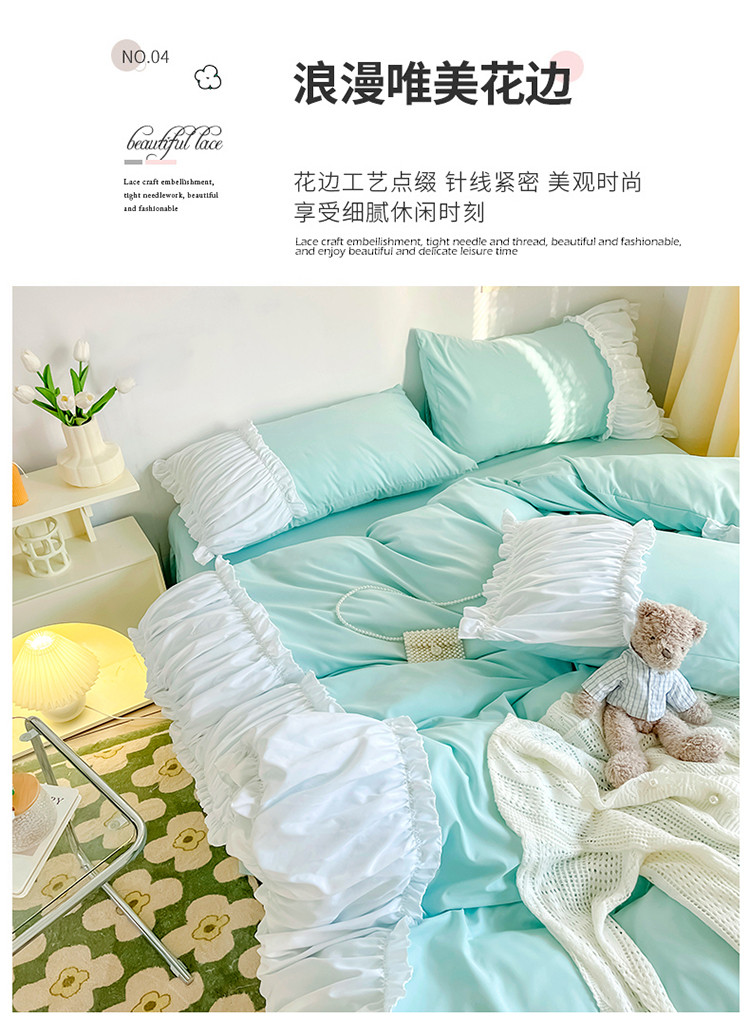 当前位置: 91家纺网 > 商品网购 > 床品套件 > 四件套 > 磨毛活性四件套 > 包小包2024新款韩版奶油ing风系列臻丝棉四件套 奶油绿