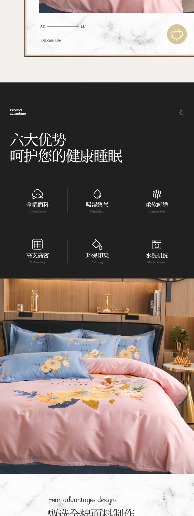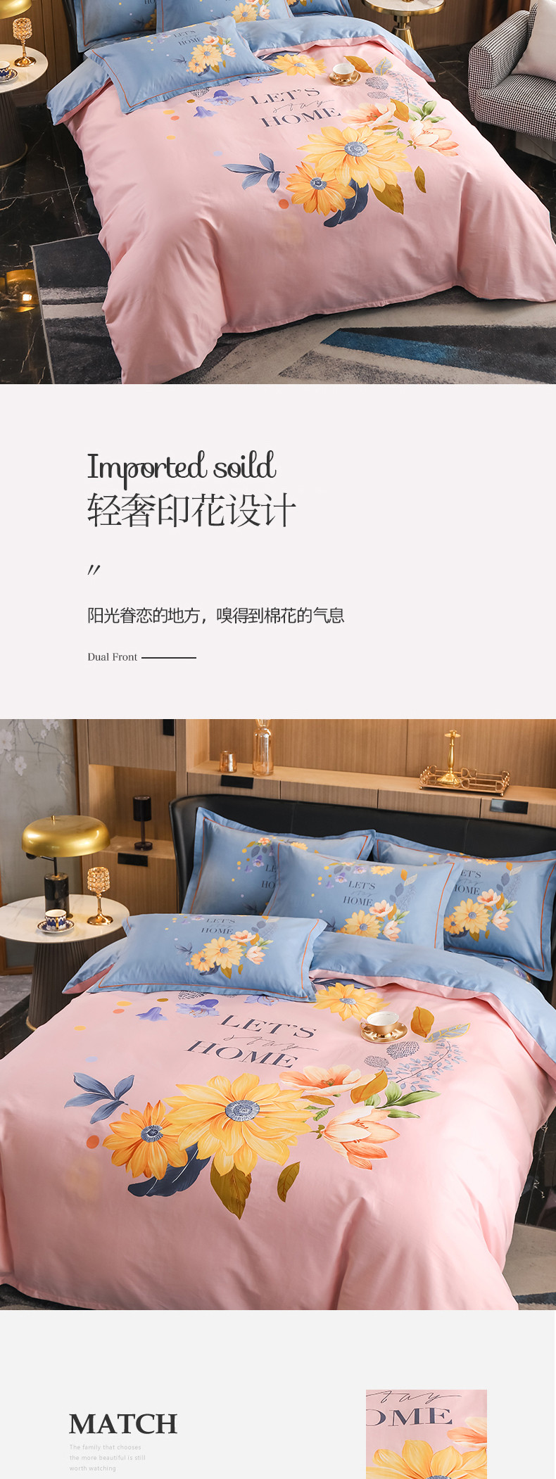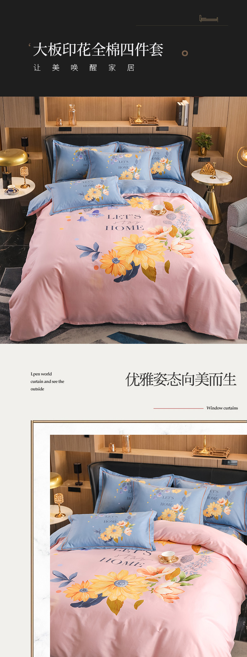 商品名称:雲归梦 2022新款全棉大版四件套 花卉花型 花语初晴-粉