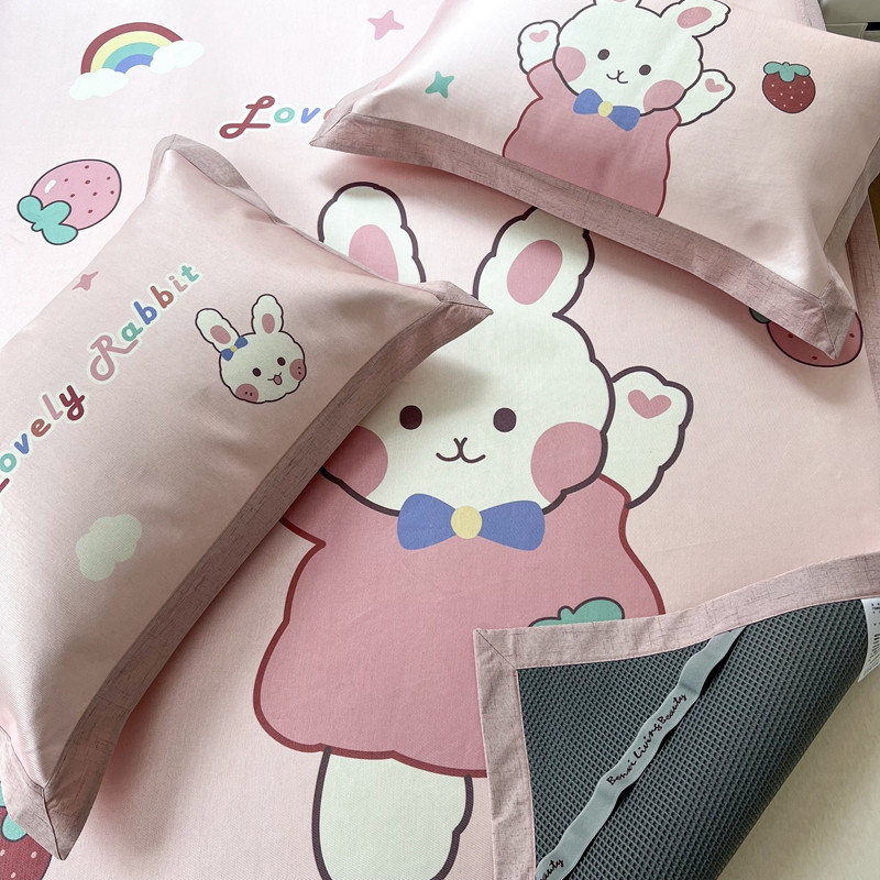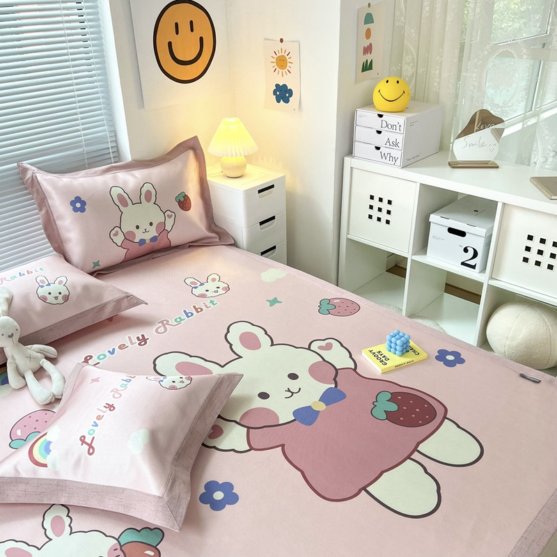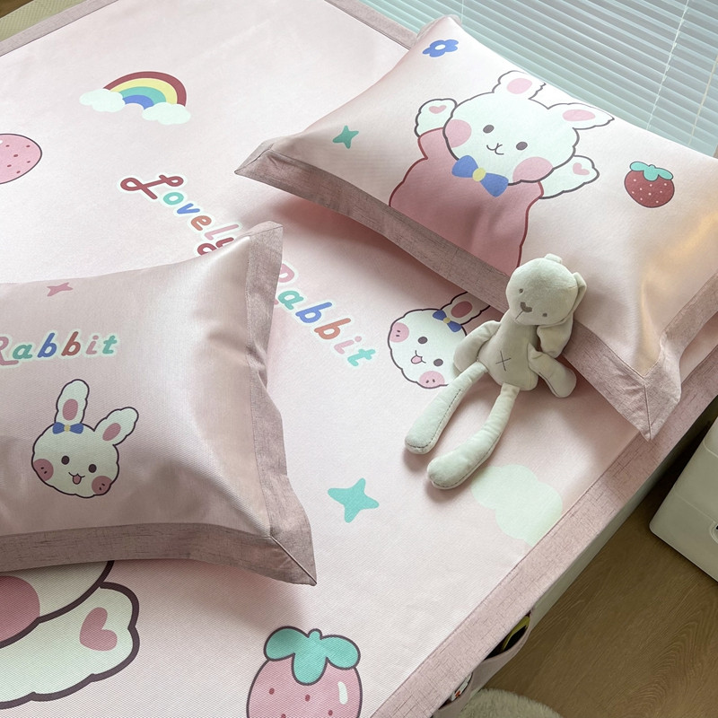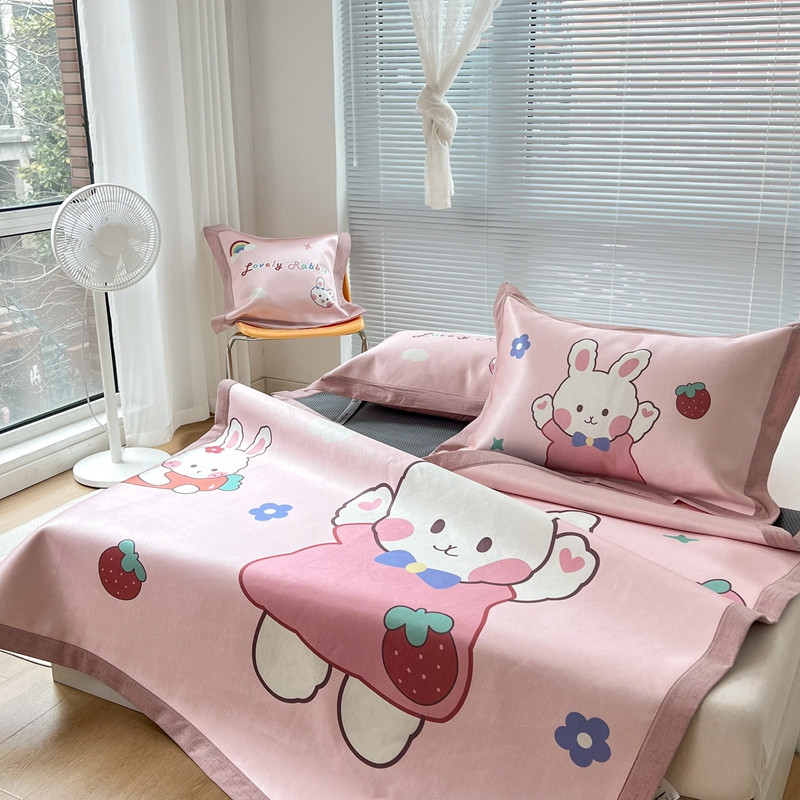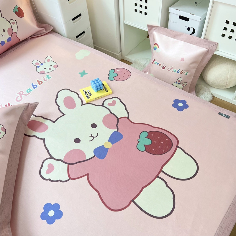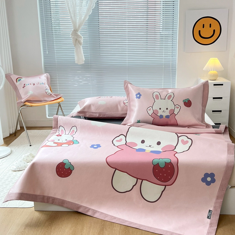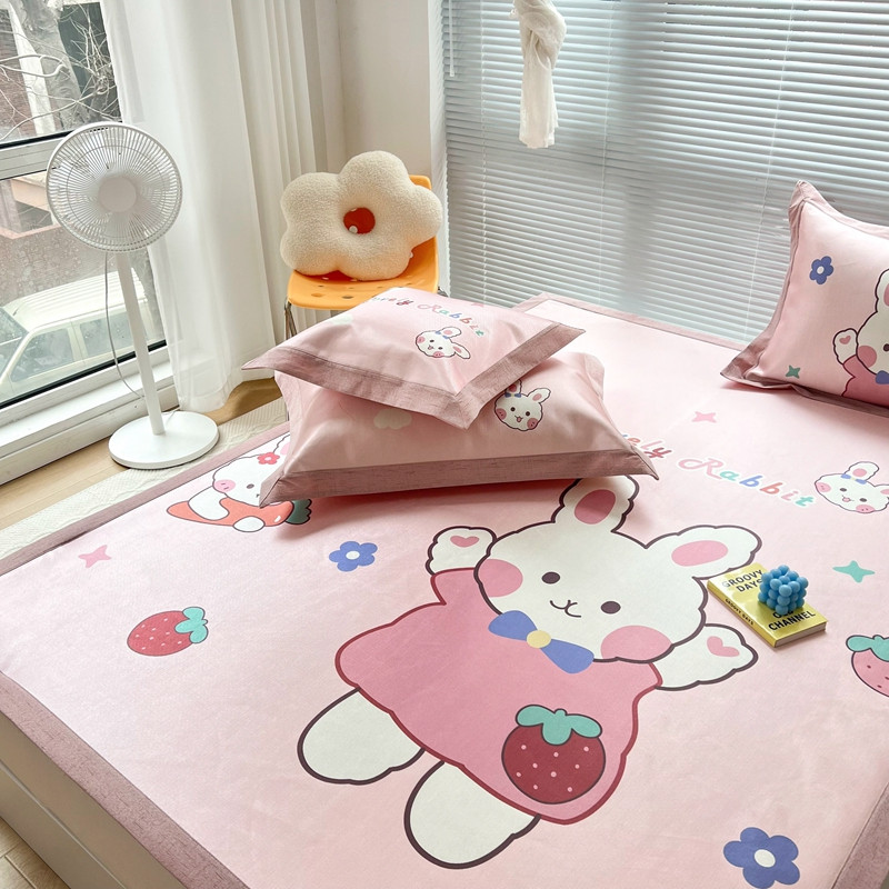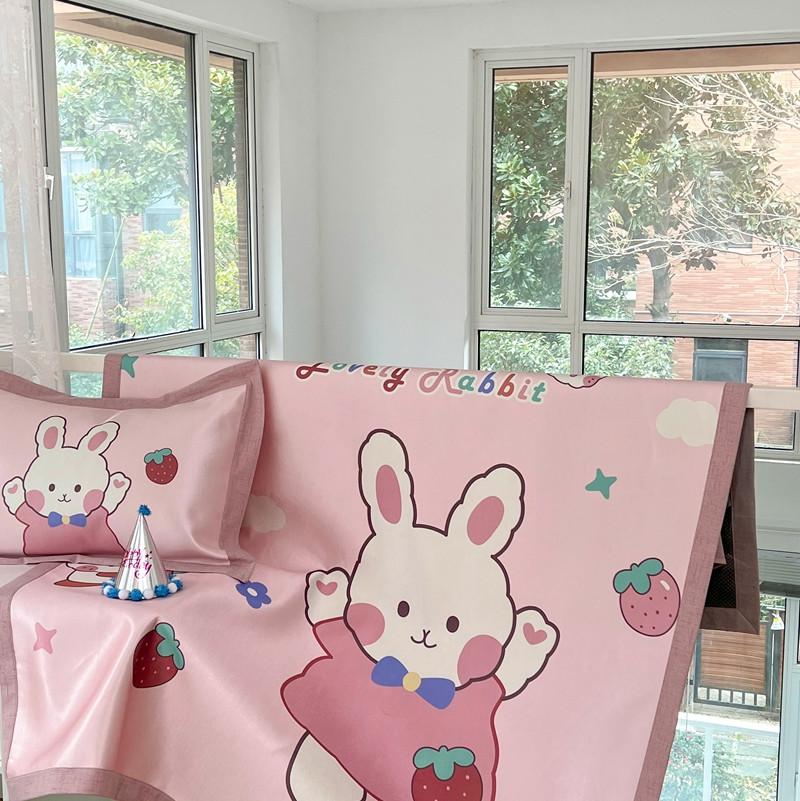 本希 2022新款水洗数码印花卡通简约冰丝席床席款 草莓兔