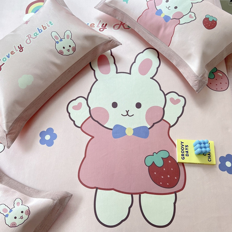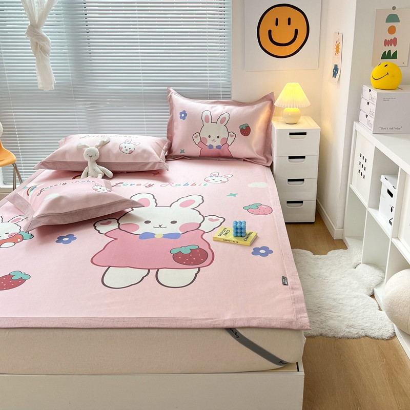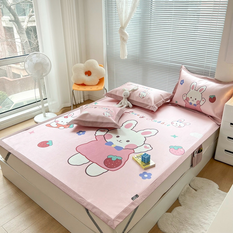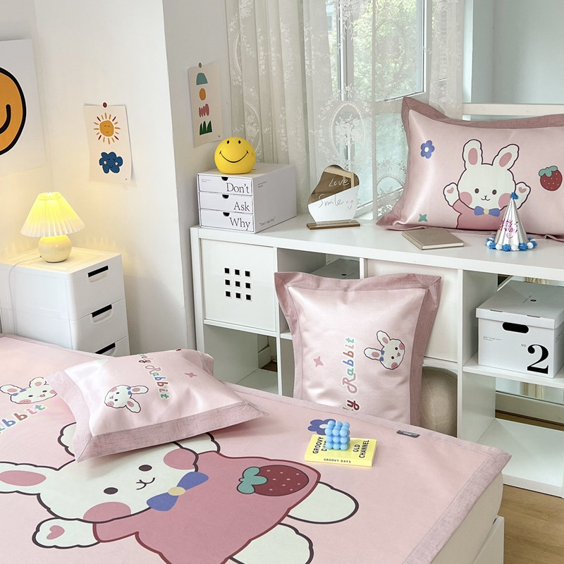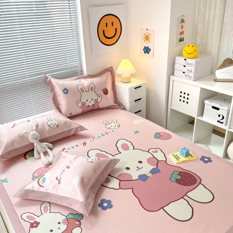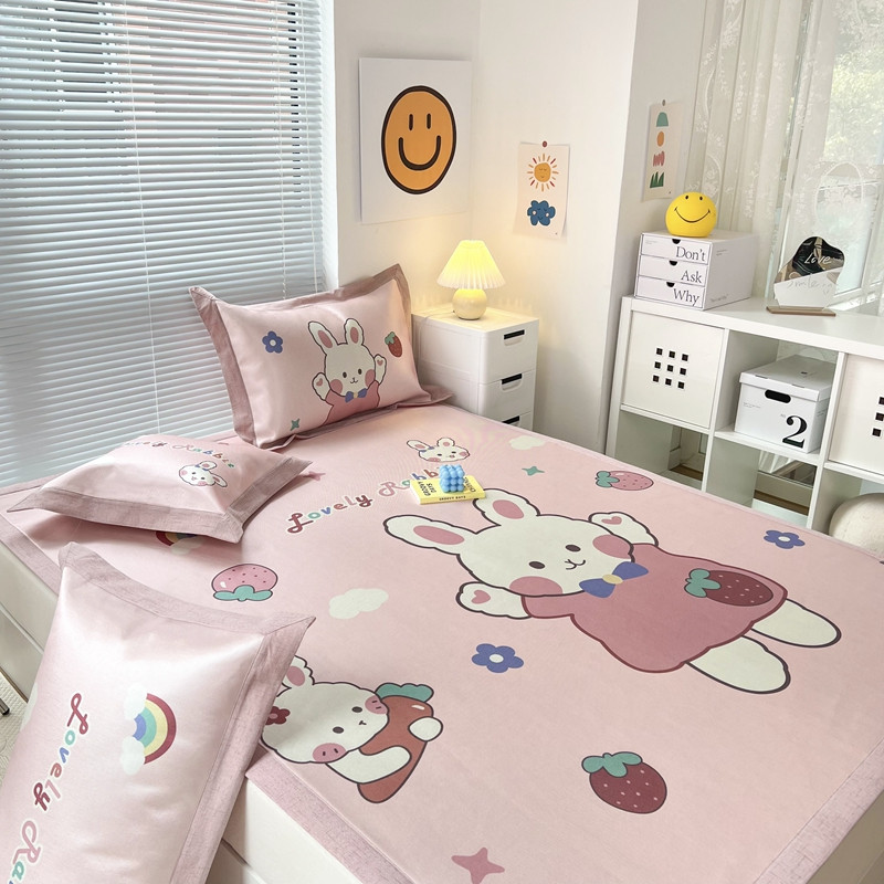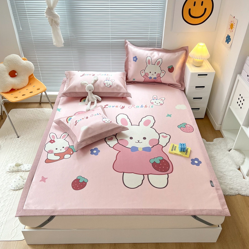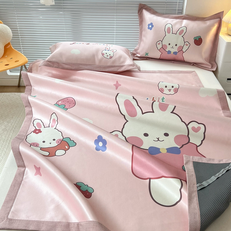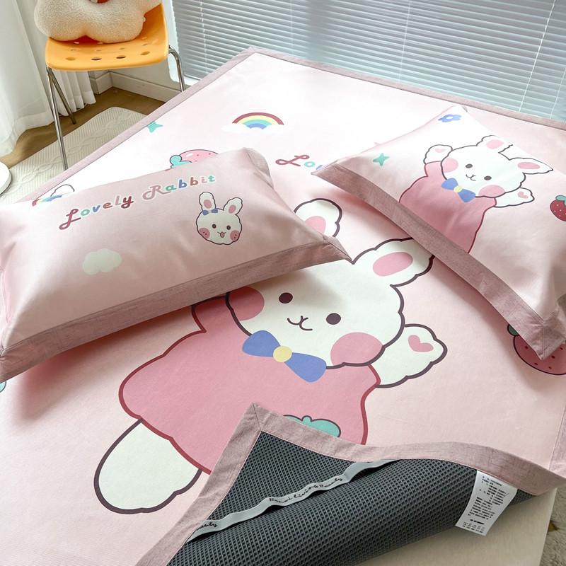 本希 2022新款水洗数码印花卡通简约冰丝席床席款 草莓兔