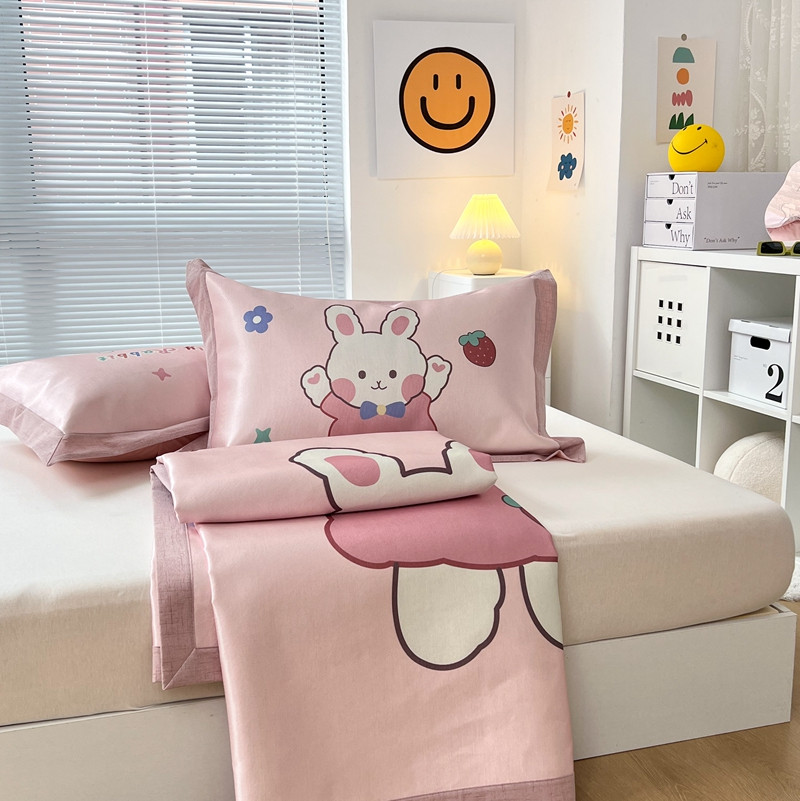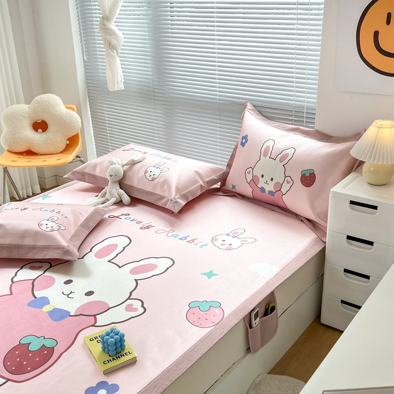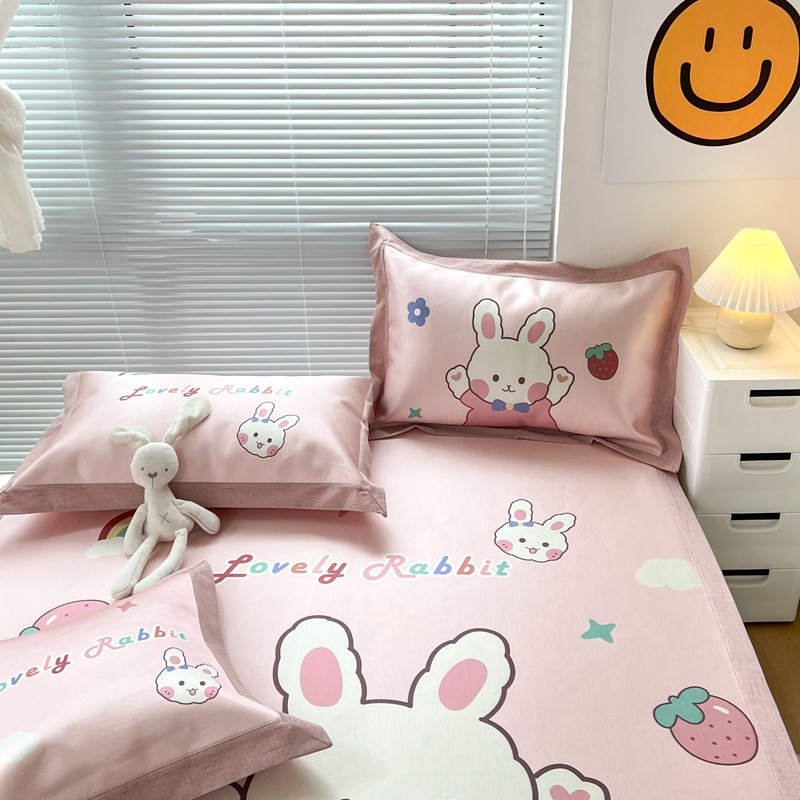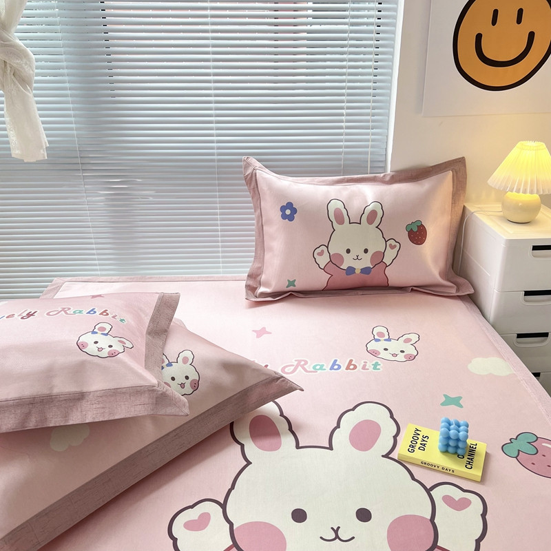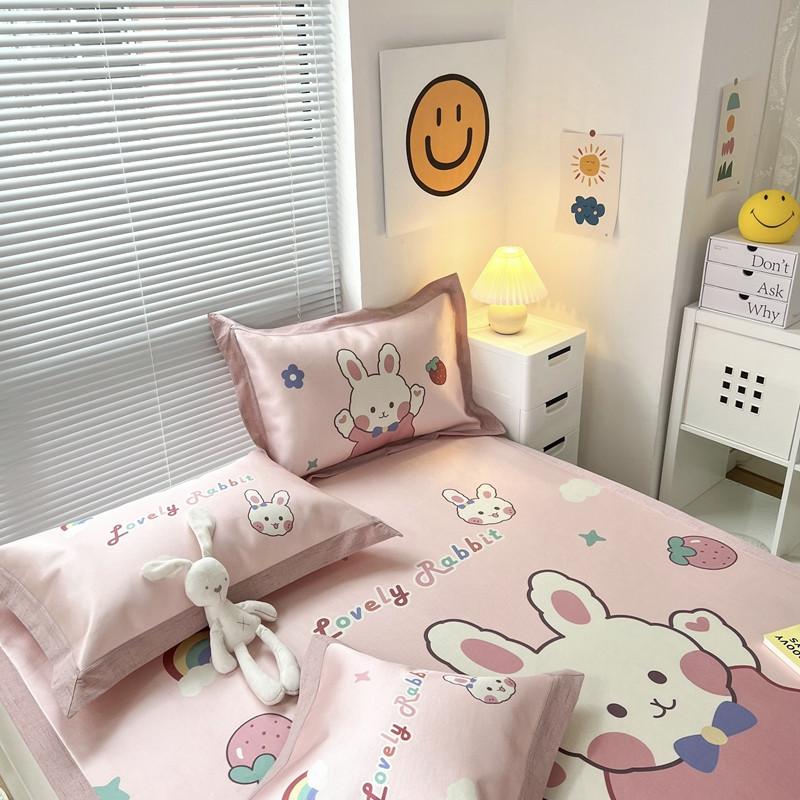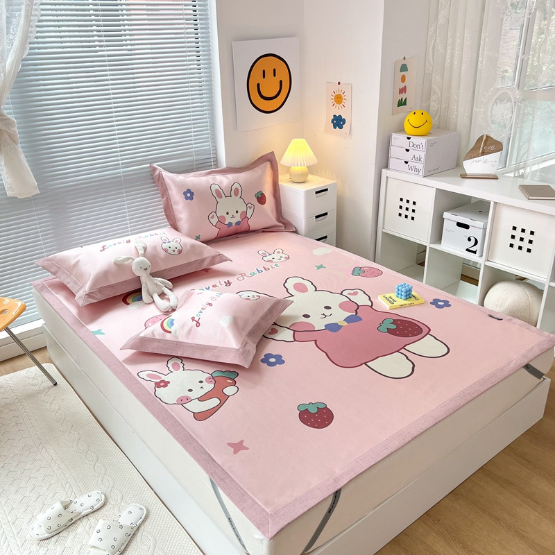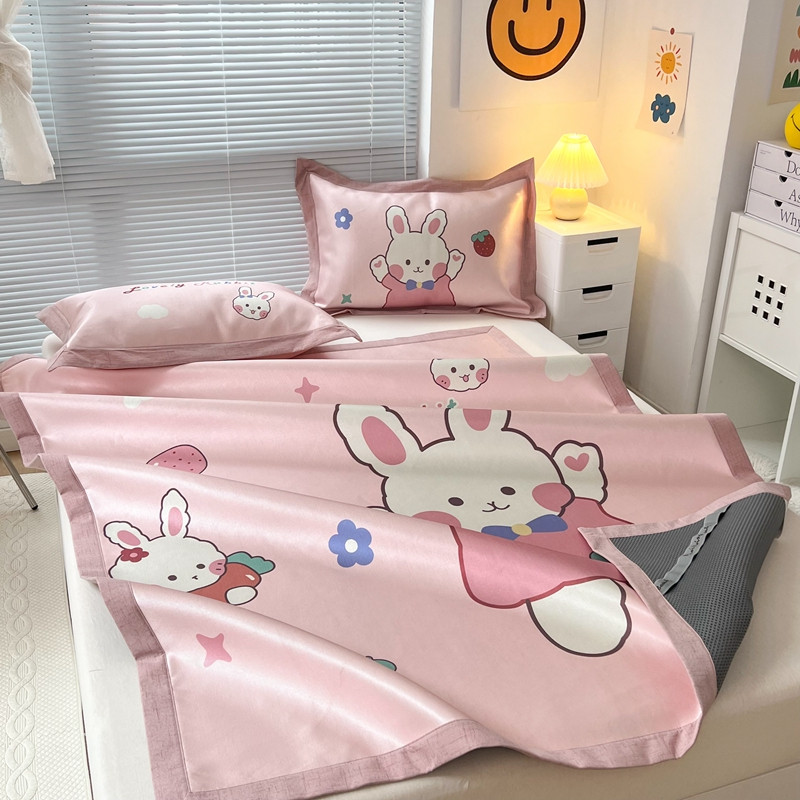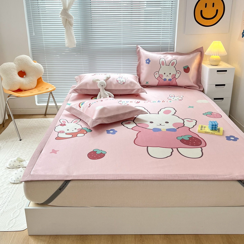 本希 2022新款水洗数码印花卡通简约冰丝席床席款 草莓兔