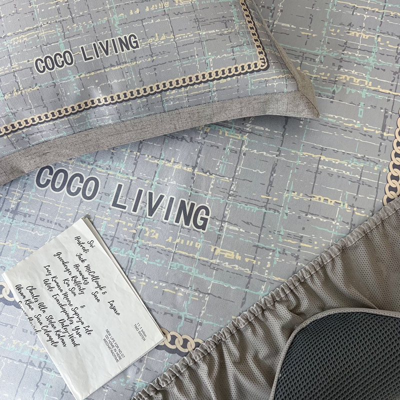 本希 2022新款数码印花水洗冰丝席床笠款-小香风轻奢 绅士灰