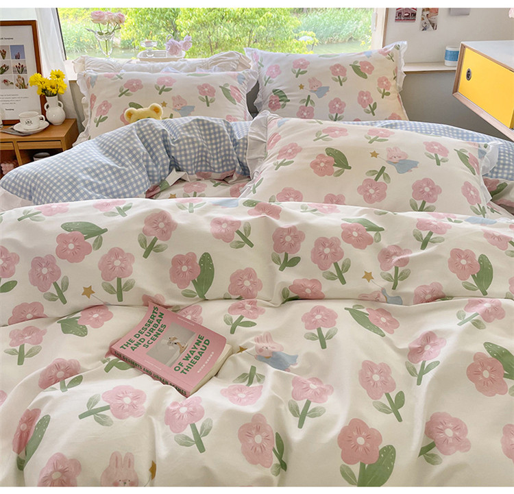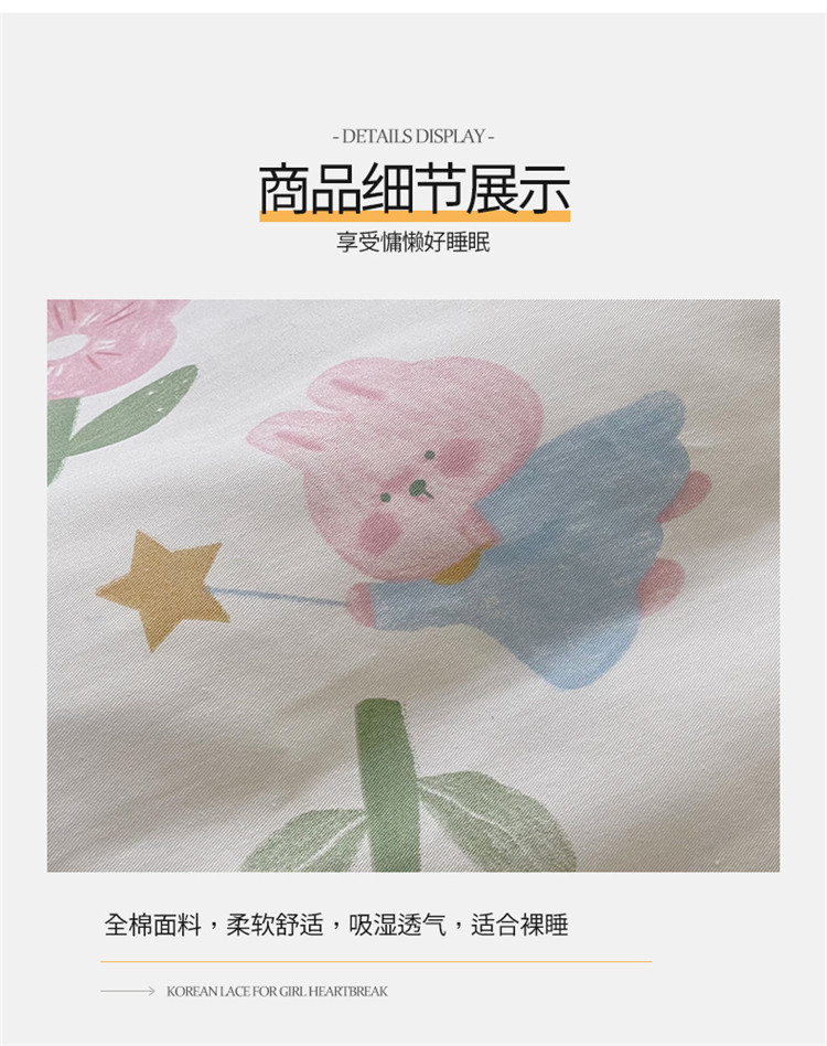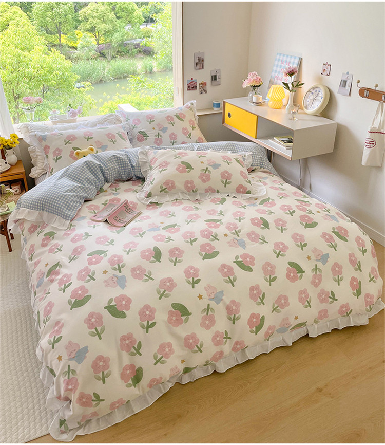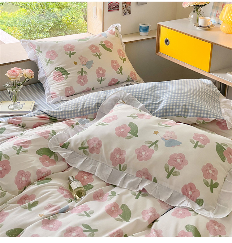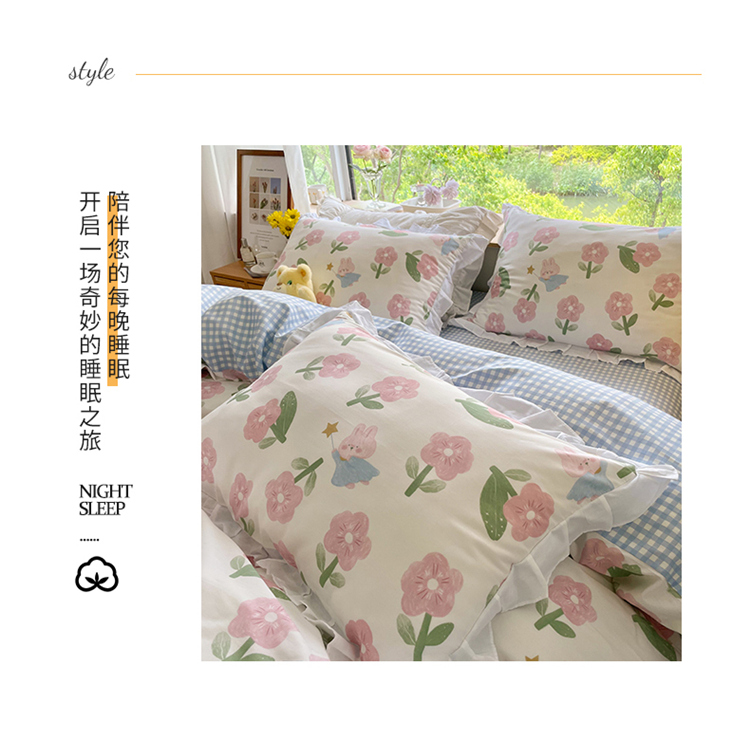 桃子家居 2022新款仙气奶油碎花少女心韩版花边纯棉四件套 花边魔法兔