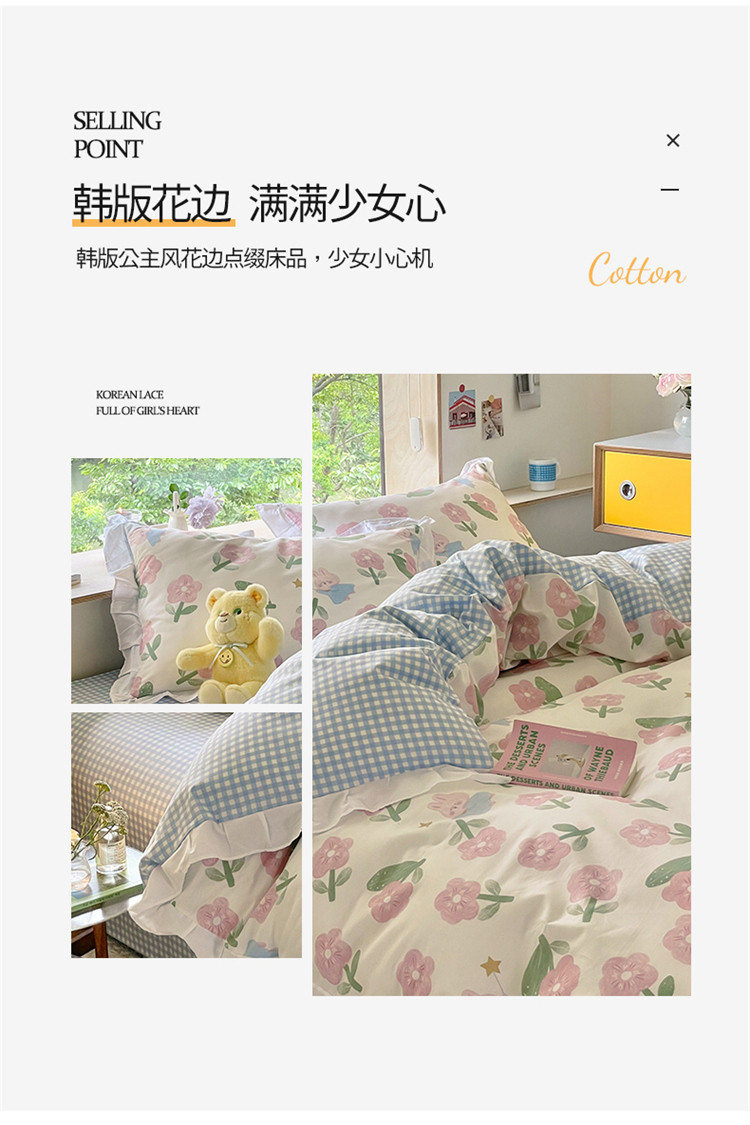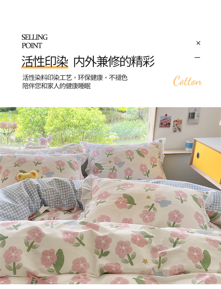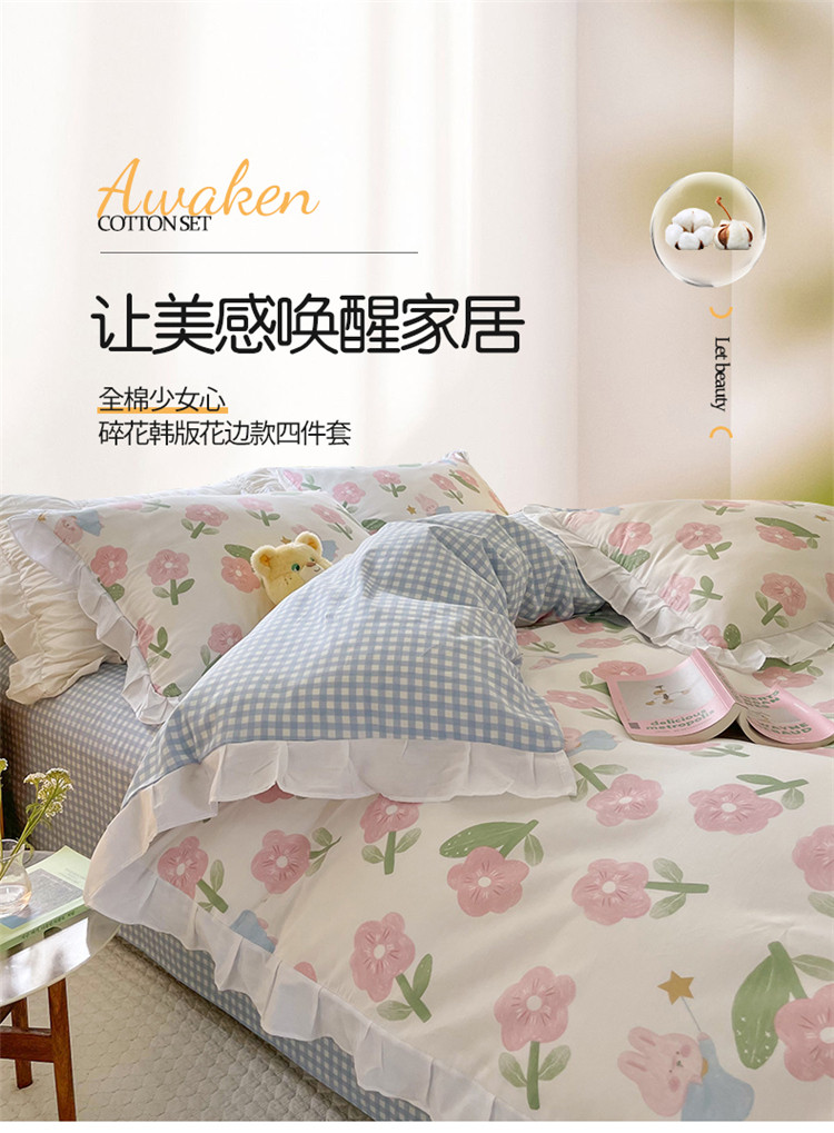 商品名称:桃子家居 2022新款仙气奶油碎花少女心韩版花边纯棉四件套 花边魔法兔