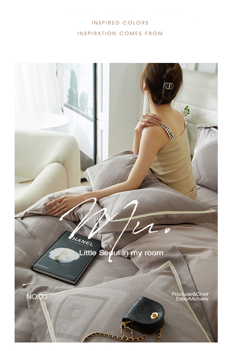 (总)瑞米家居 2025新款A类棉麻提花花边款四件套-蝶恋花,蝶恋花-粉色,蝶恋花-红咖,蝶恋花-芥末绿,蝶恋花-米色,蝶恋花-中灰