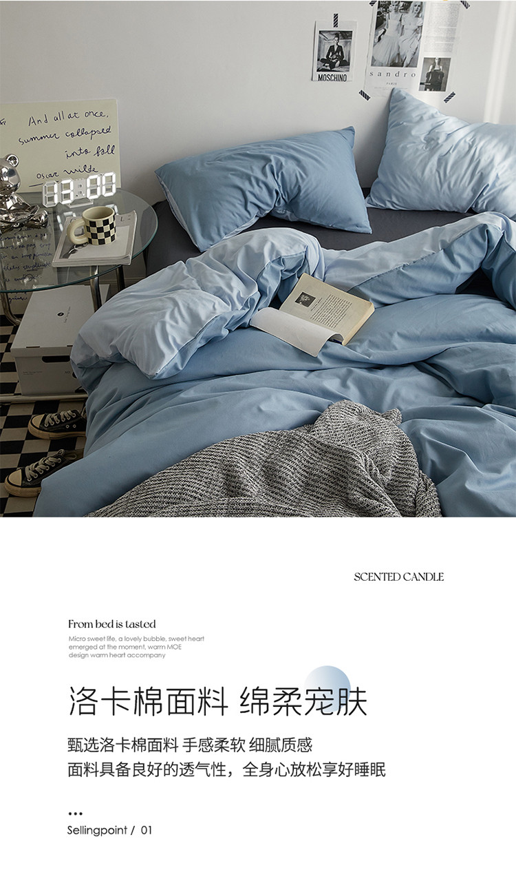 当前位置: 91家纺网 > 商品网购 > 床品套件 > 四件套 > 优承佳 2023新款简约亲肤磨毛四件套系列 月光蓝三拼