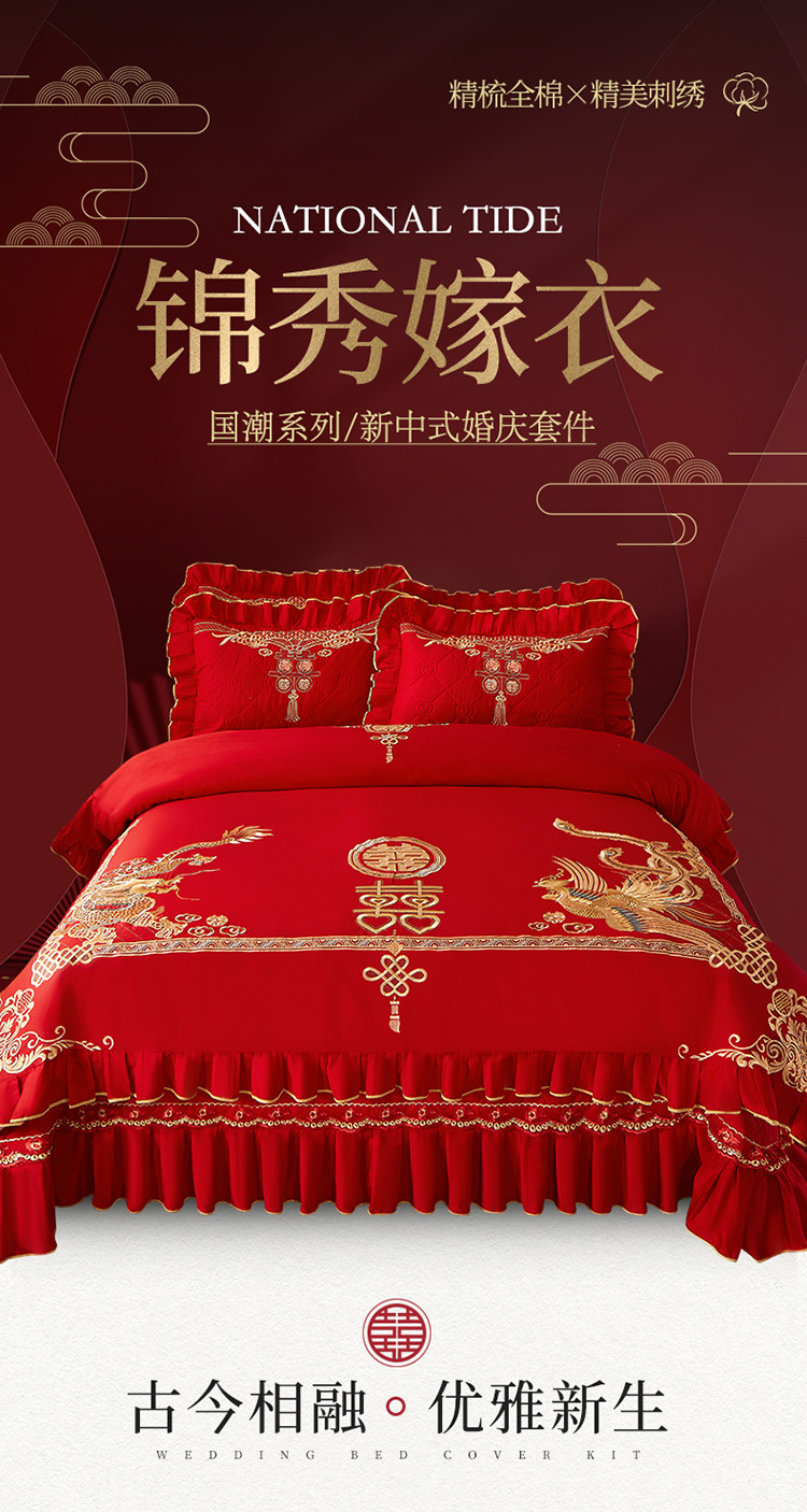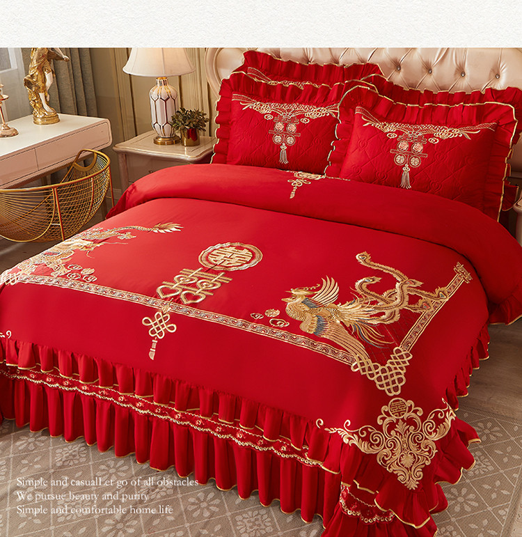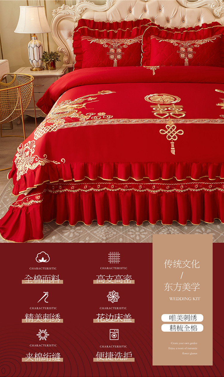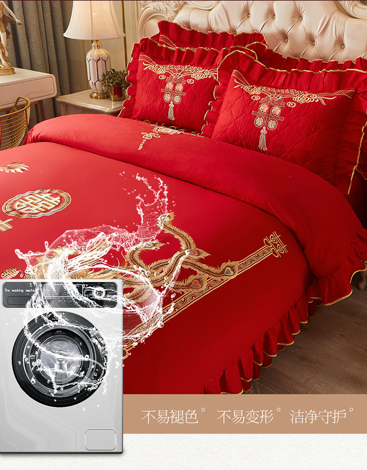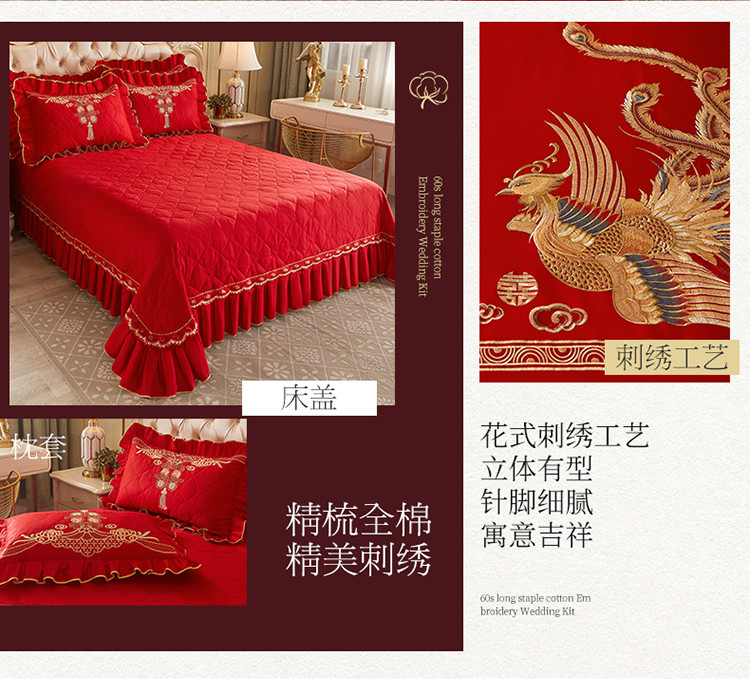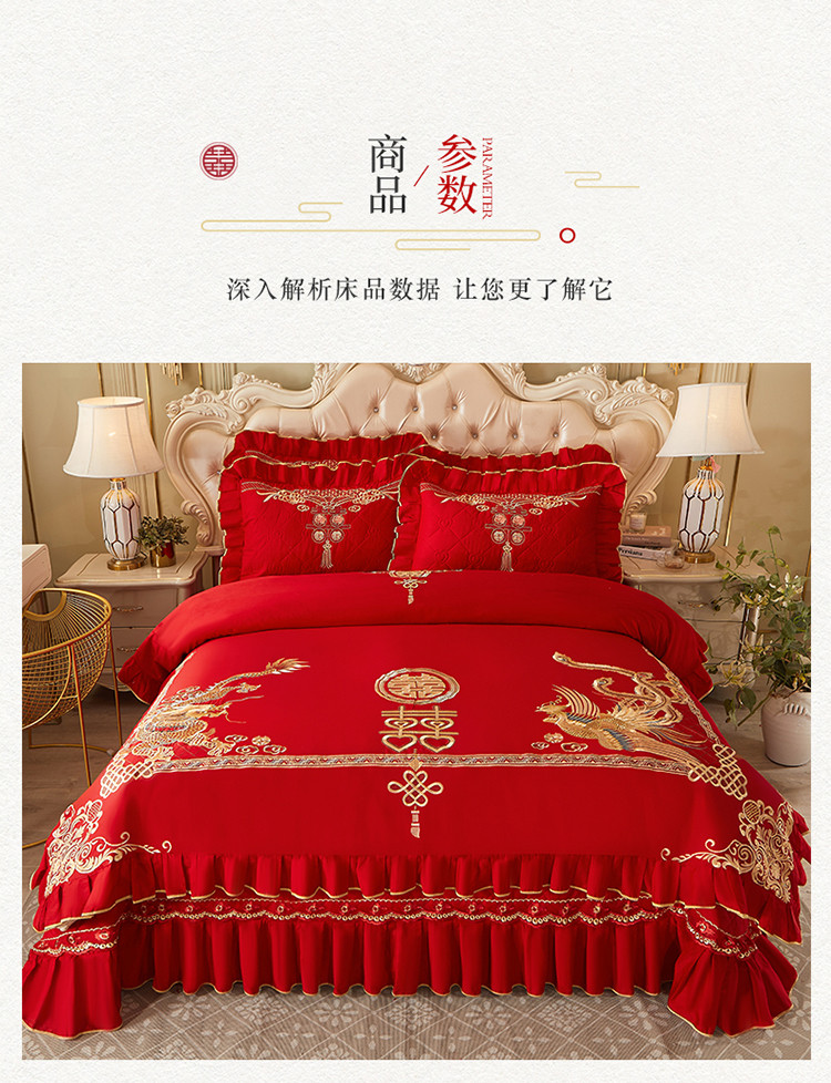 商品名称:宜凡 2022新款绣花婚庆全棉夹棉床盖款四件套 龙凤呈祥