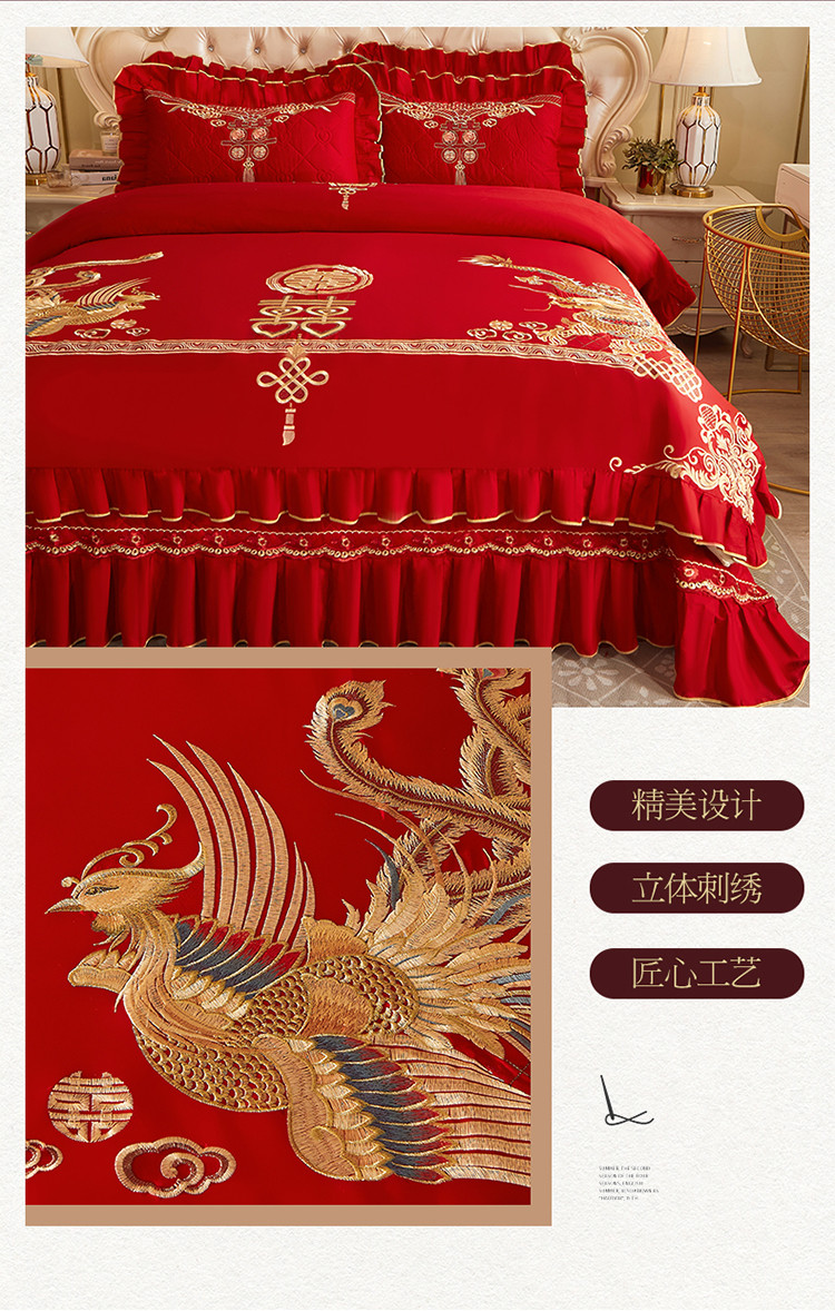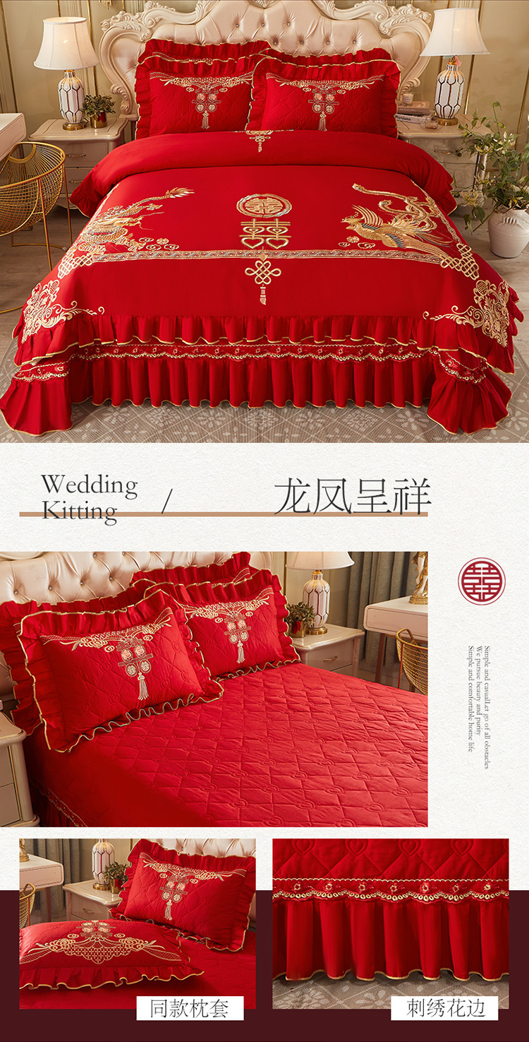 宜凡 2022新款绣花婚庆全棉夹棉床盖款四件套 龙凤呈祥