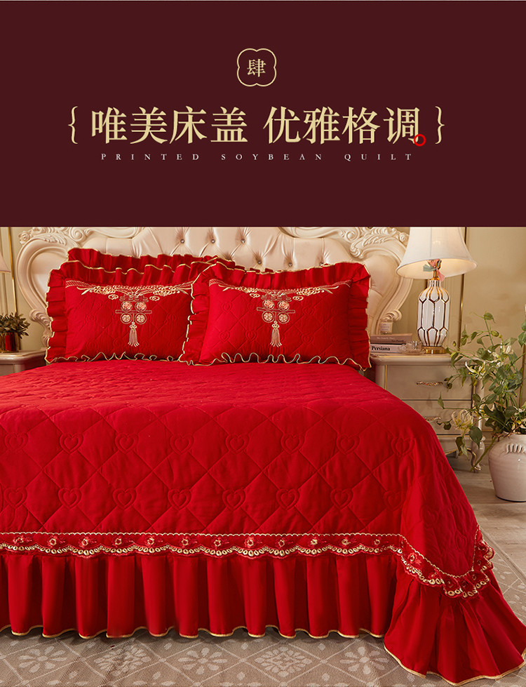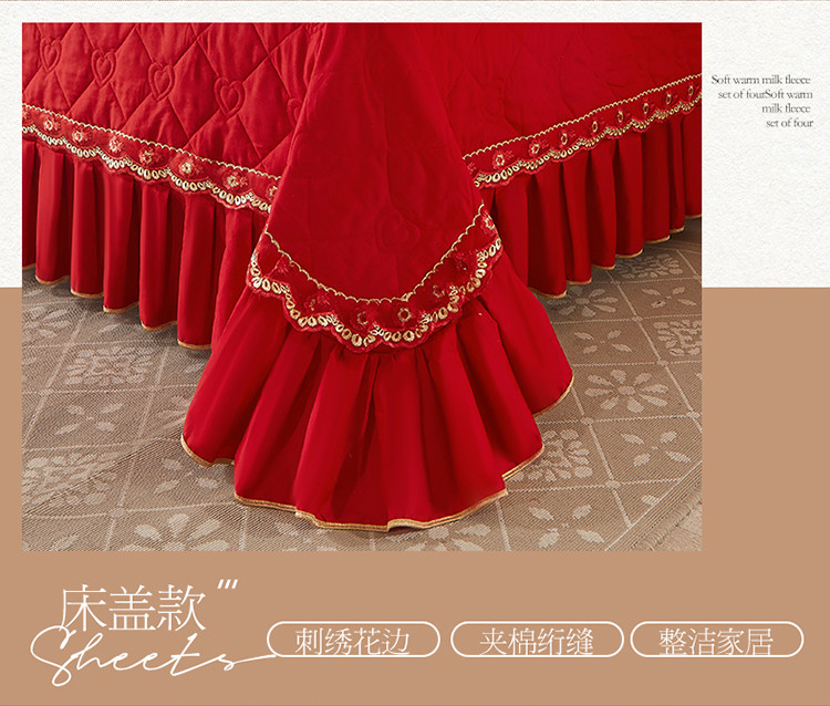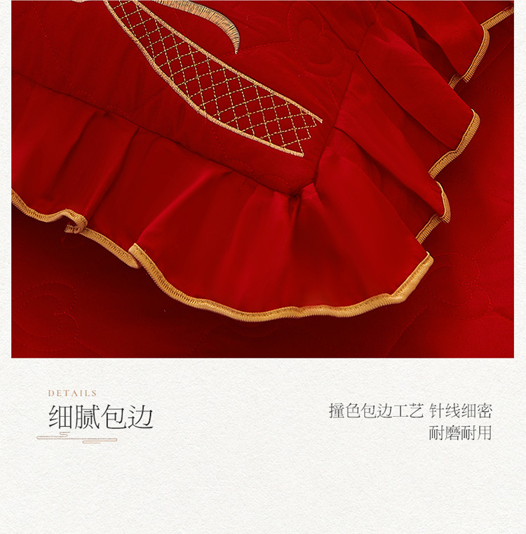 (总)宜凡家纺 2025新款婴儿绒压花全夹棉床裙四件套,韵雅-中国红,韵雅-黑天鹅