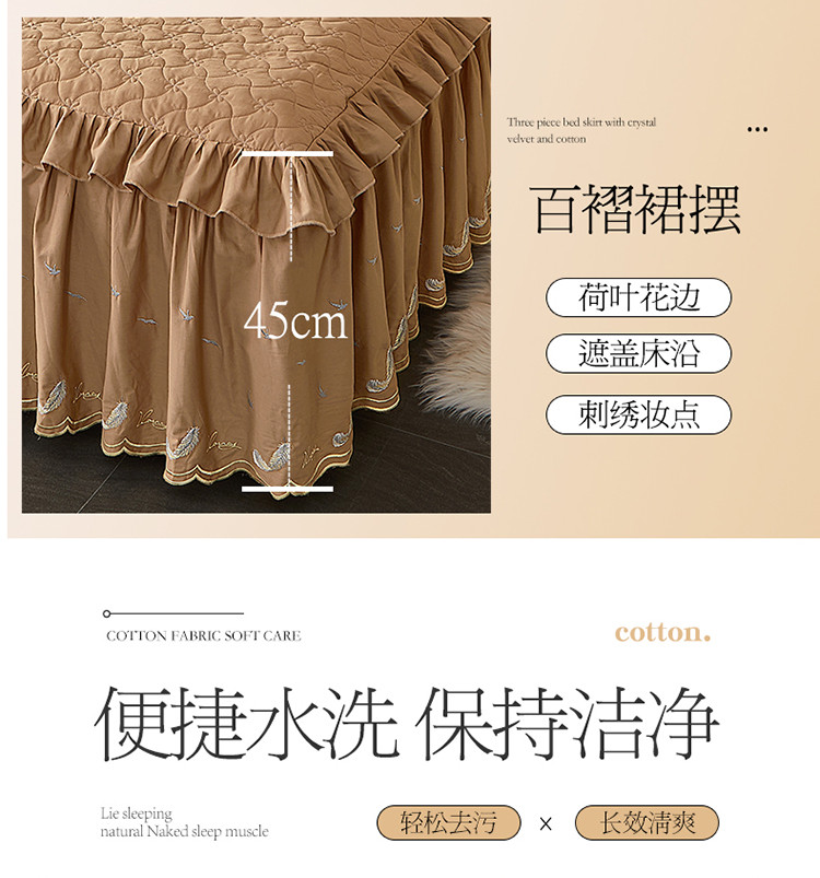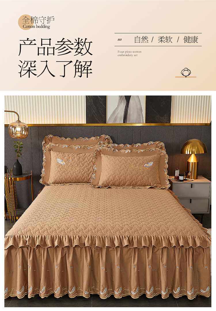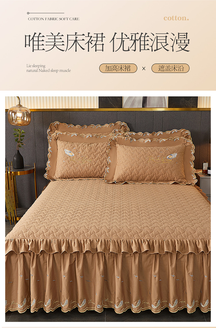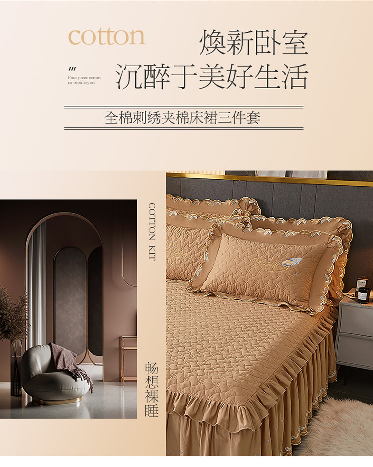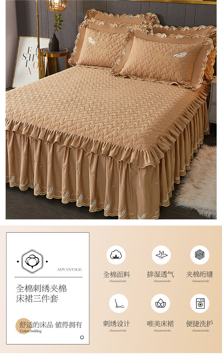 当前位置: 91家纺网 > 商品网购 > 床品套件 > 三件套 > 宜凡 2022新款全棉刺绣夹棉床裙款三件套-芳羽 芳羽咖啡
