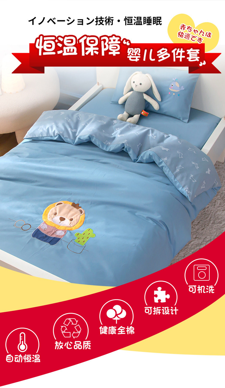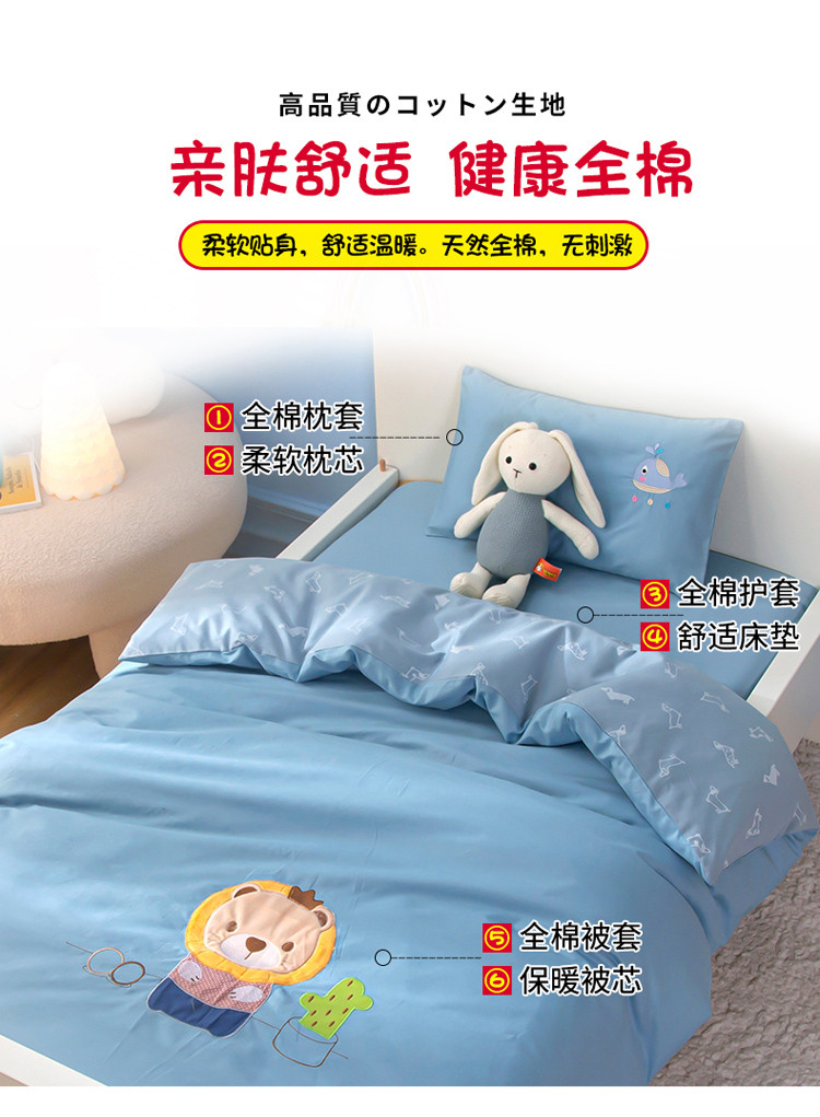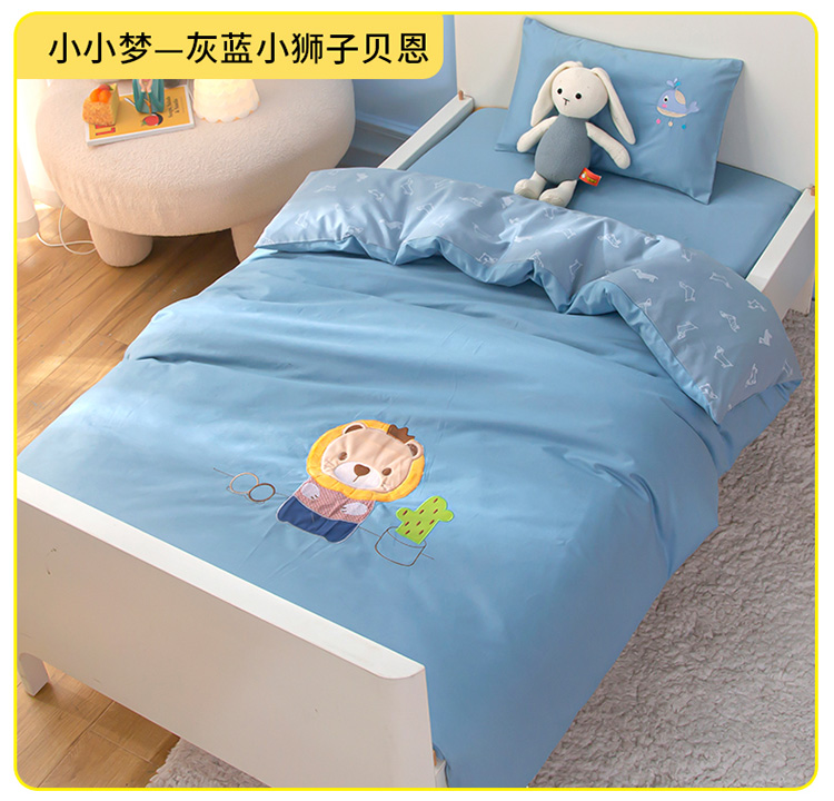 当前位置: 91家纺网 > 商品网购 > 婴童用品 > 婴童三件套 > 喜多兔 2022新款小小梦幼儿园三件套 小小梦灰蓝小狮子贝恩