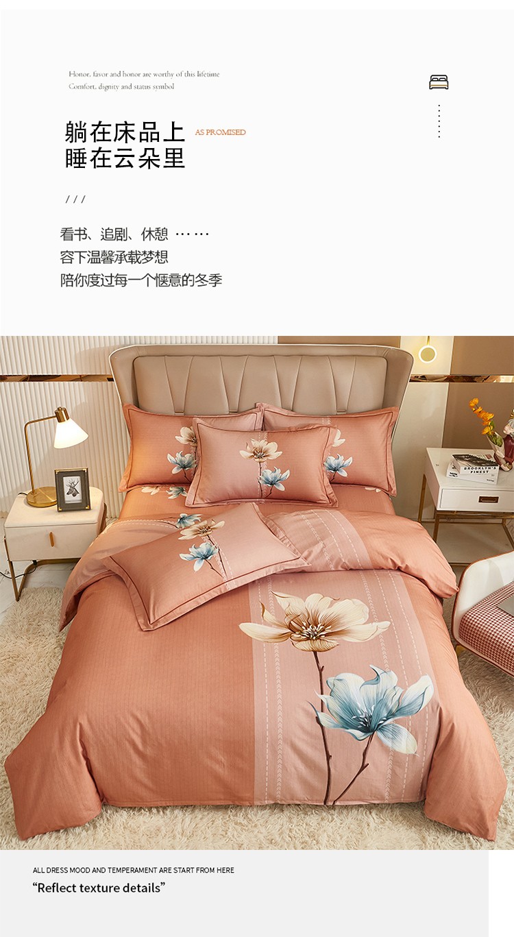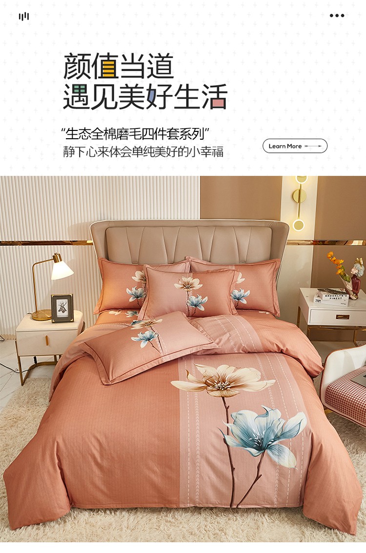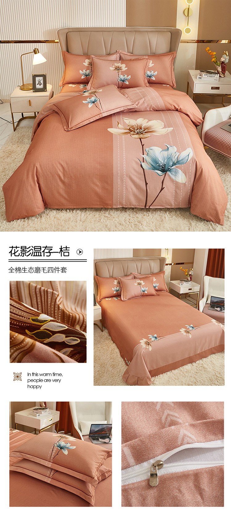 商品名称:雲归梦 2022年新款全棉AB版加厚磨毛大版四件套 花影温存-桔