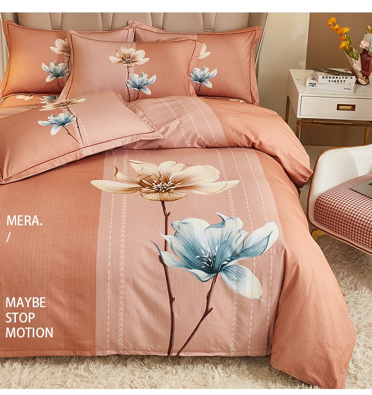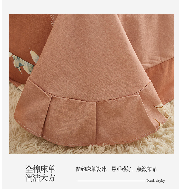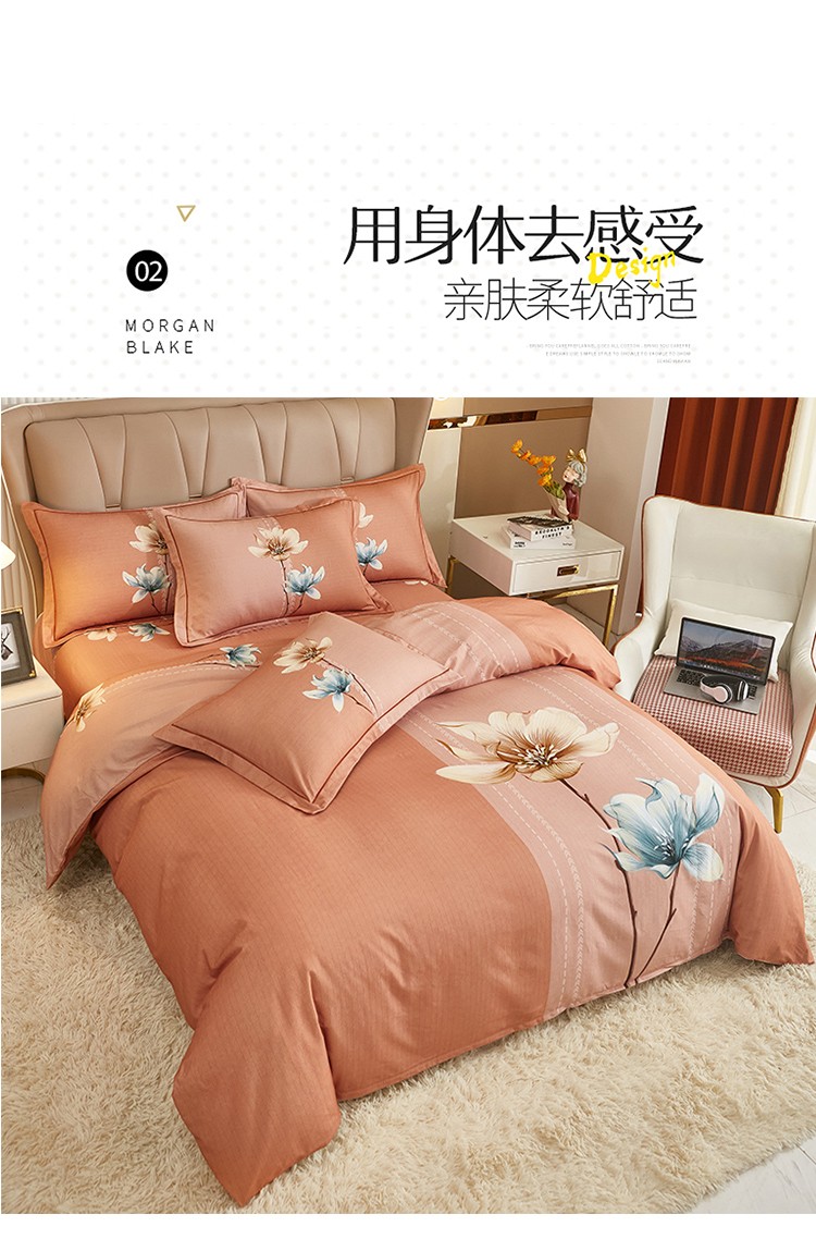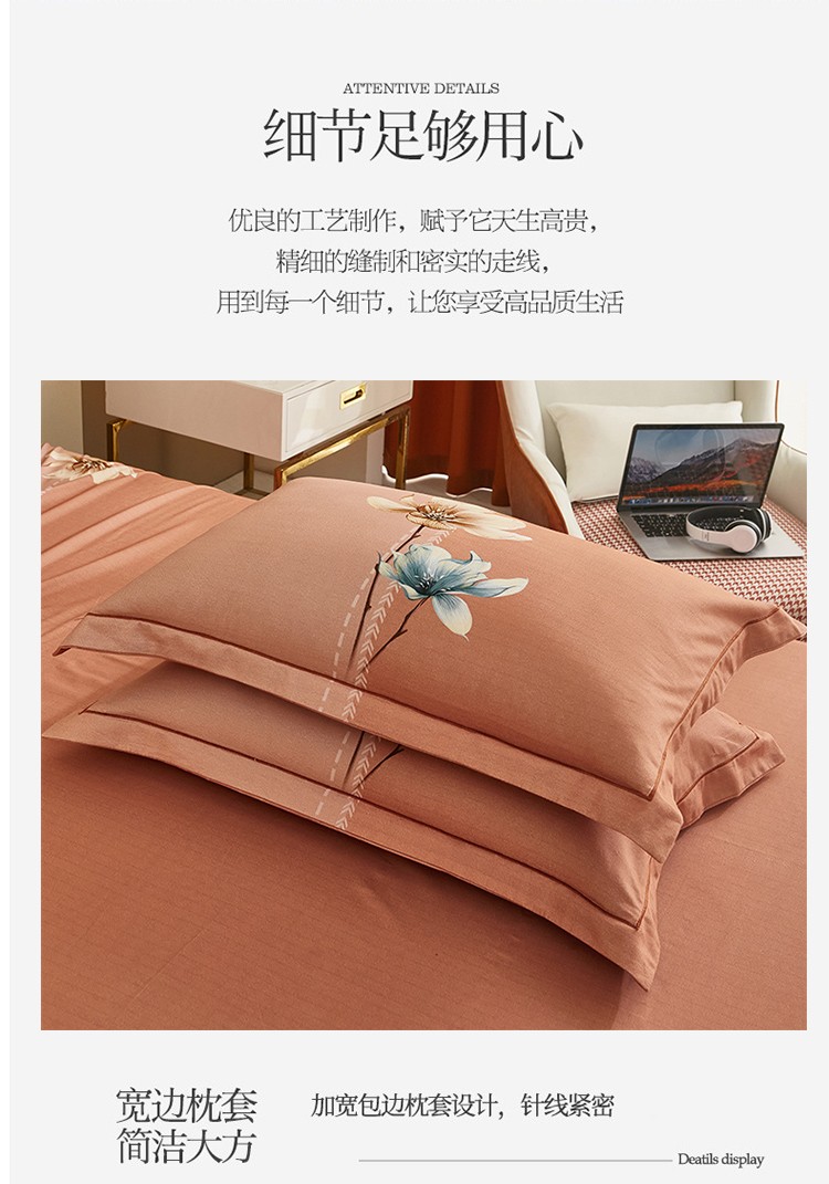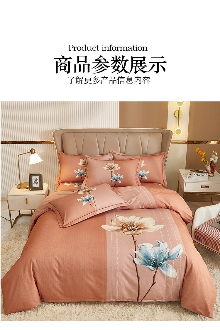 商品名称:雲归梦 2022年新款全棉AB版加厚磨毛大版四件套 花影温存-桔