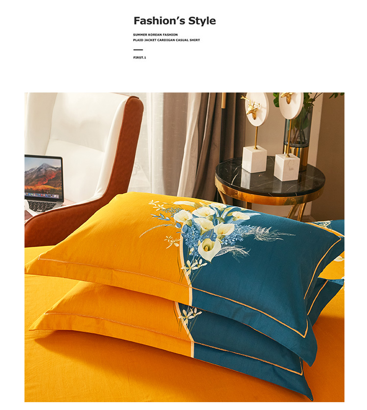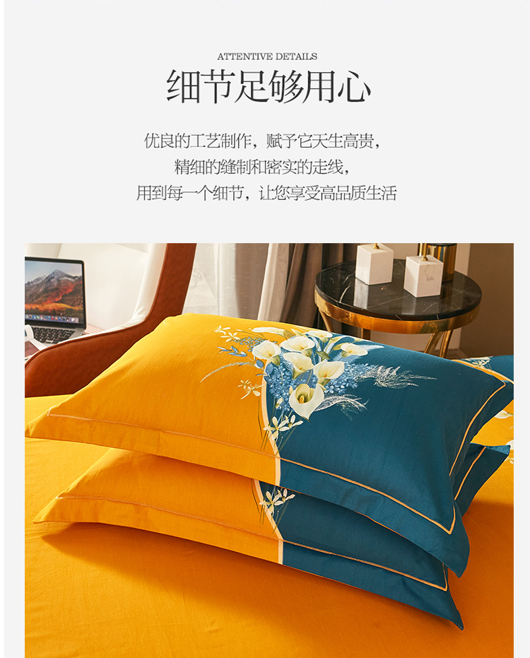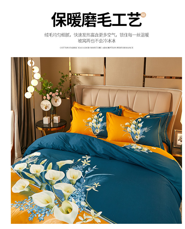 (总)雲归梦 2021新款全棉生态磨毛刺绣四件套,慕思-橙色,慕思-粉紫,慕思-灰,慕思-米黄,慕思-青绿,慕思-天蓝