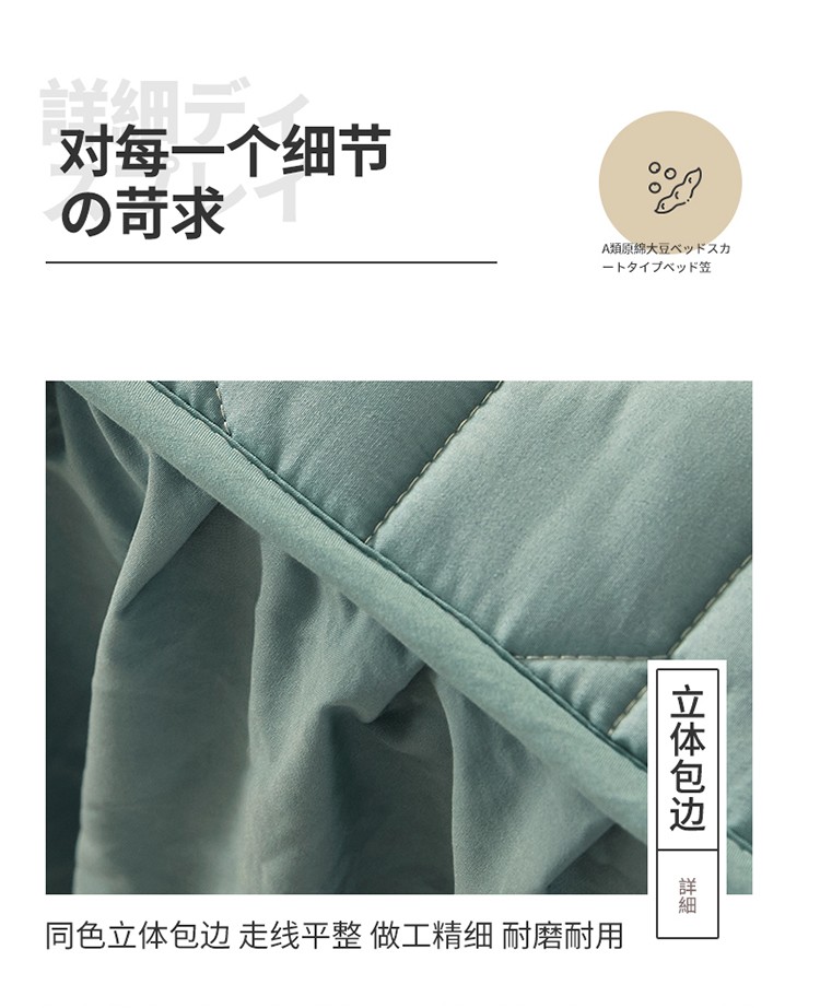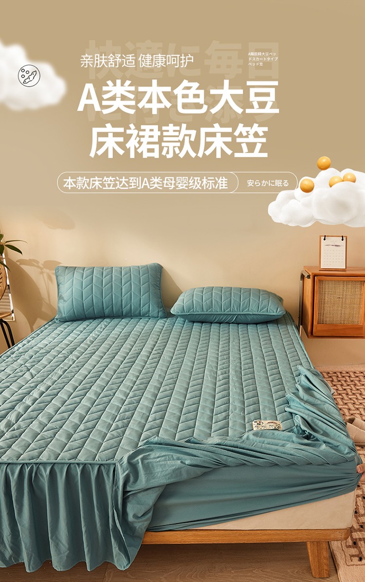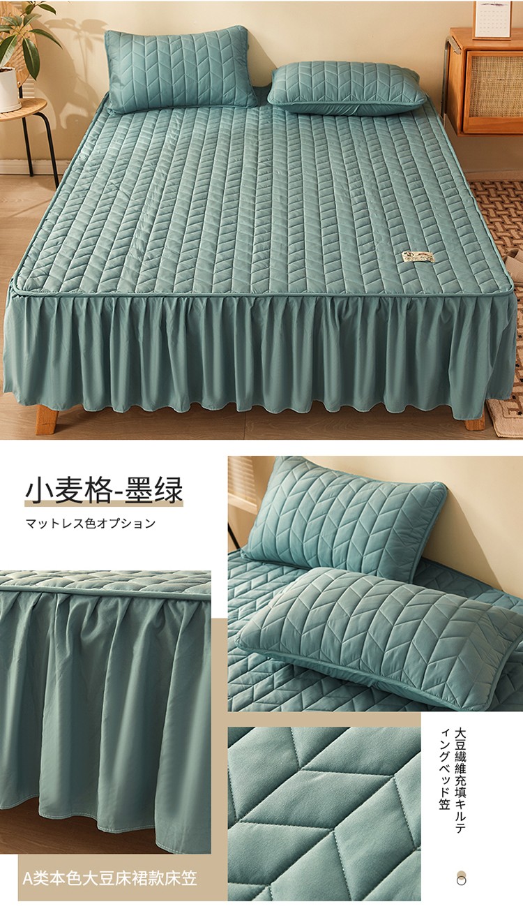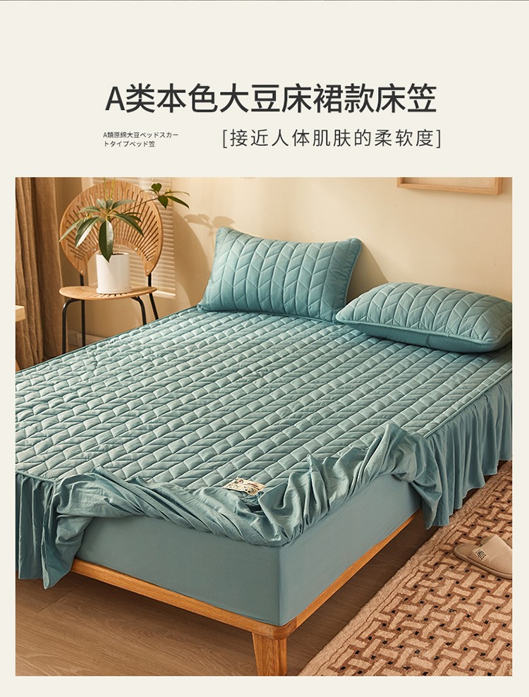 2022新款A类原棉大豆夹棉床裙款床笠本色大豆床笠小麦格墨绿