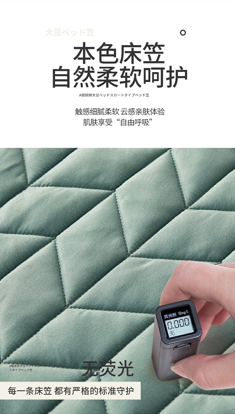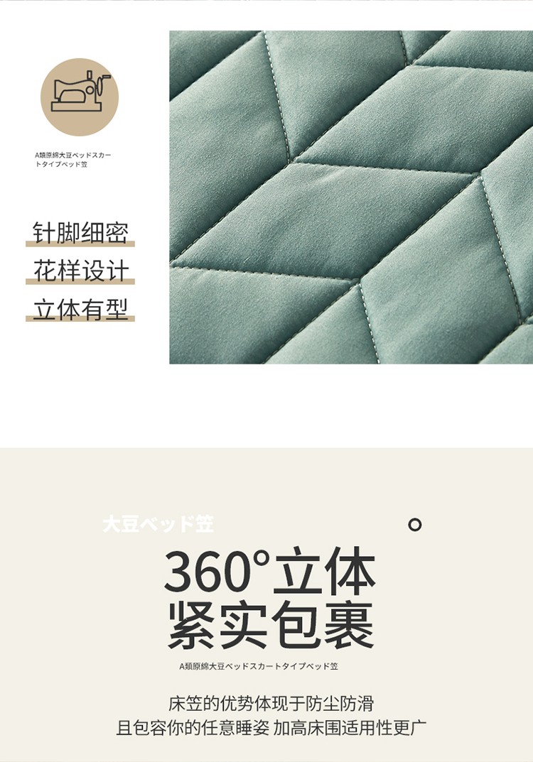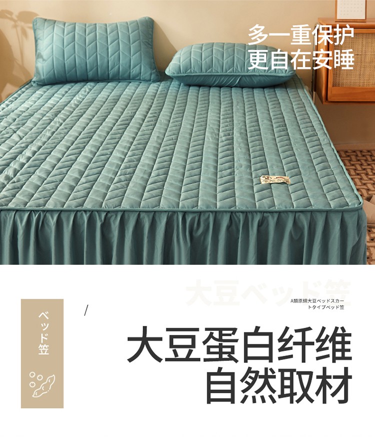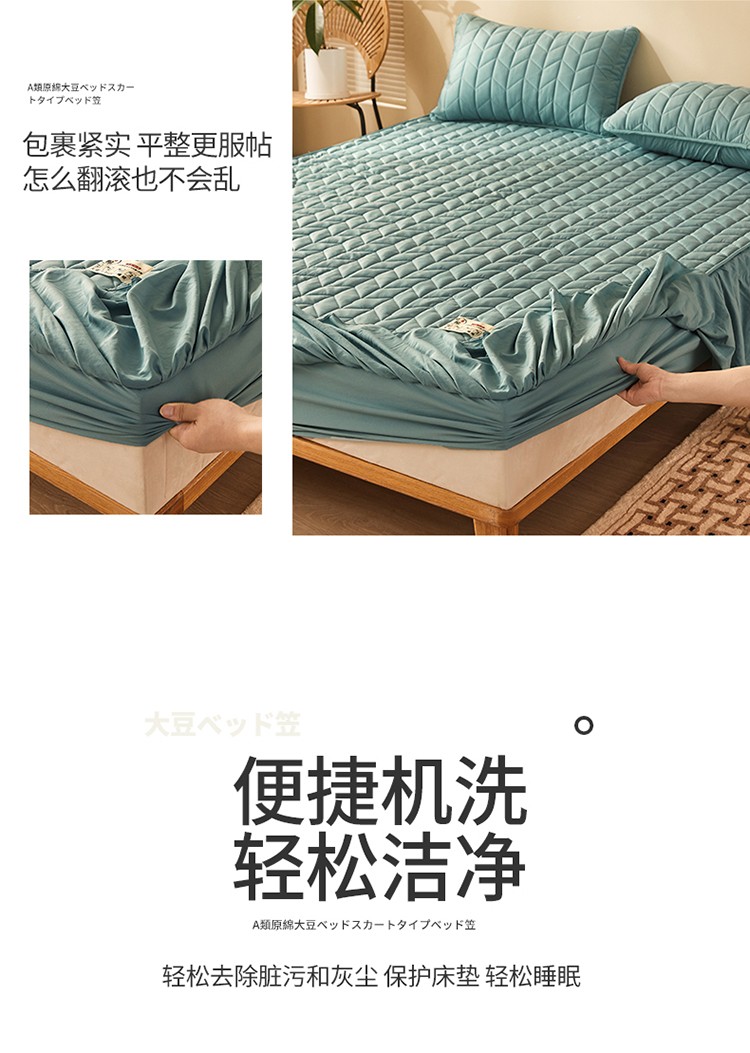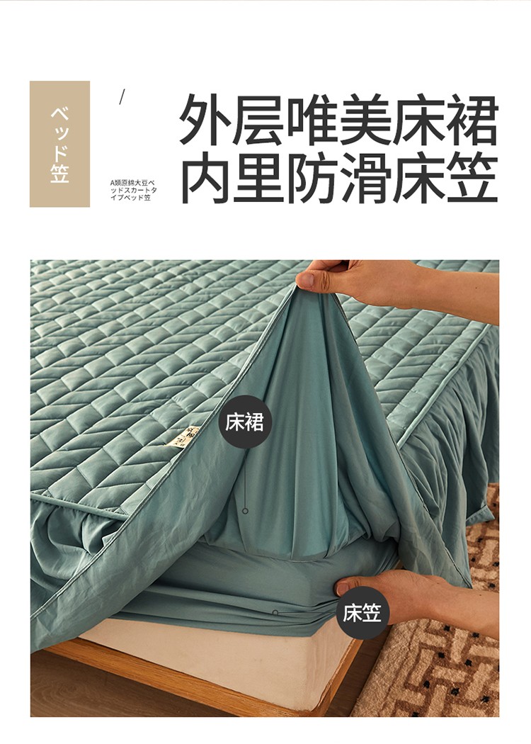 2022新款A类原棉大豆夹棉床裙款床笠本色大豆床笠小麦格墨绿