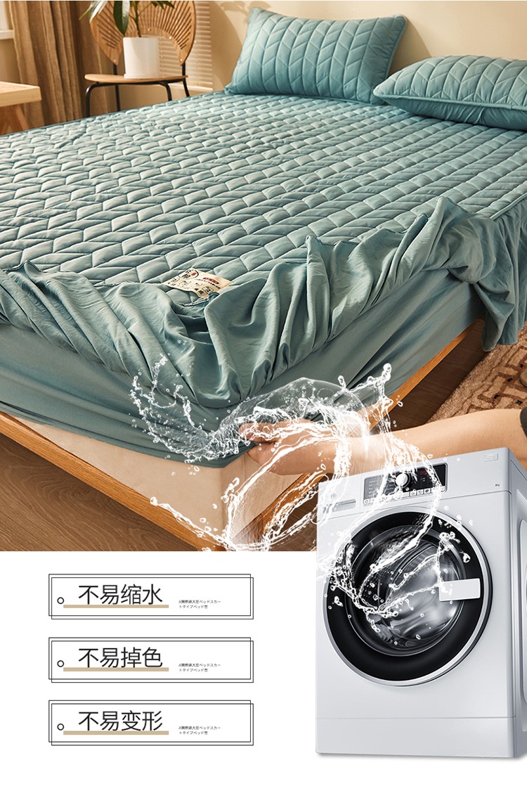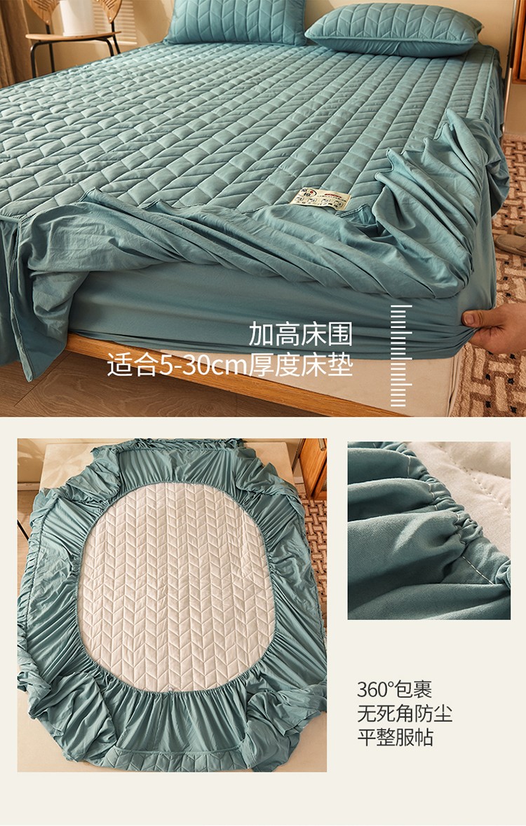 • 91家纺网 家纺一手货源 找家纺 2022新款A类原棉大豆夹棉床裙款床笠本色大豆床笠小麦格墨绿
