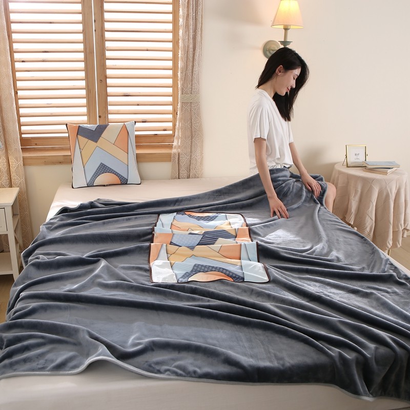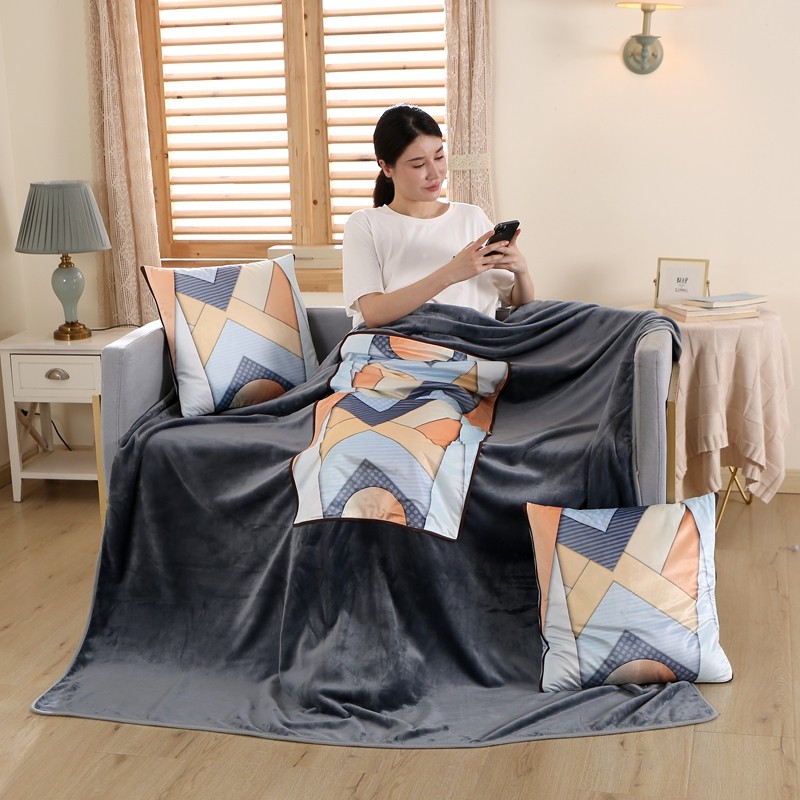 素玖抱枕被 2023新款外面水晶绒里面灰色法兰绒毛毯抱枕毯 格调情怀