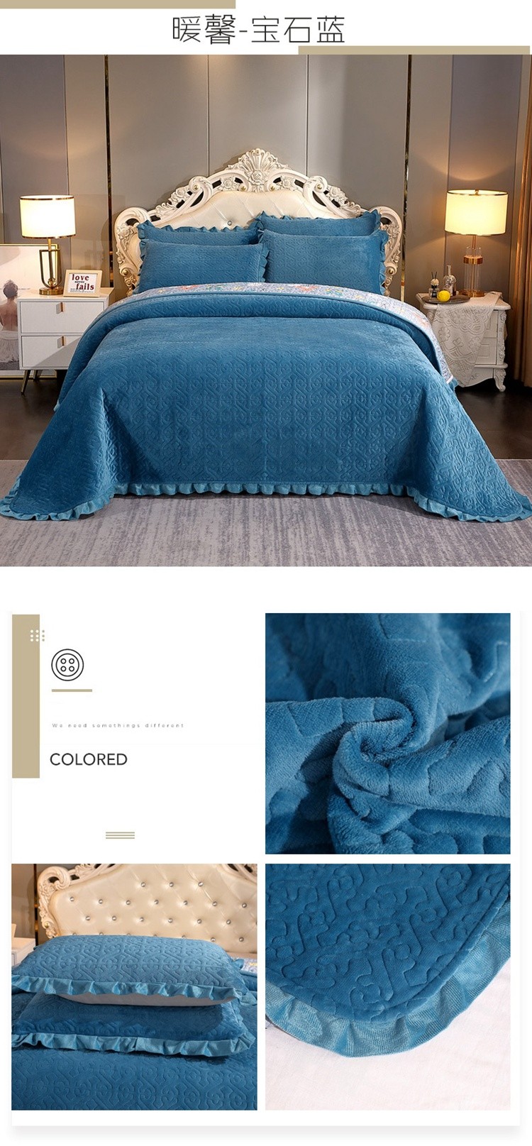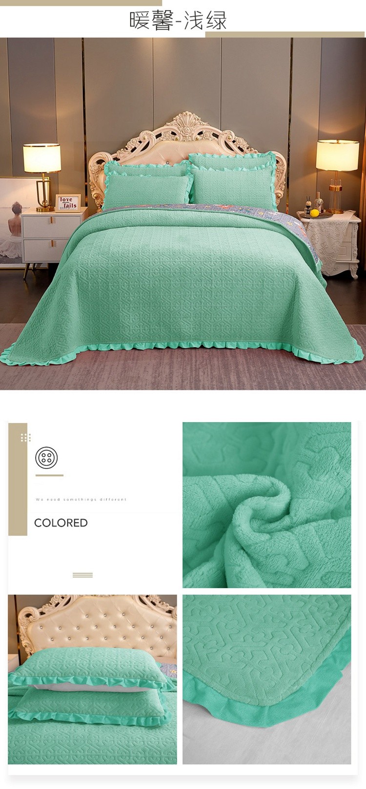 (总)2024韩版小花边牛奶绒床盖三件套/绗缝夹棉榻榻米垫子