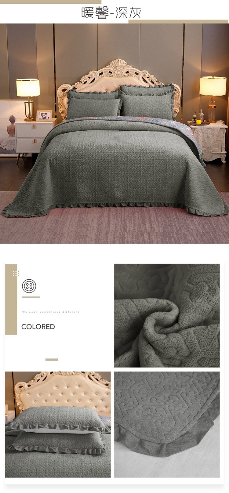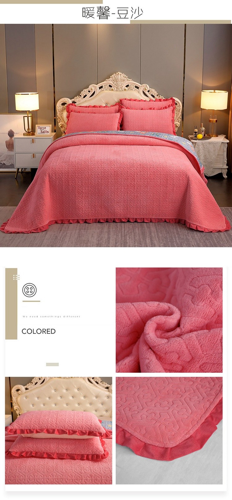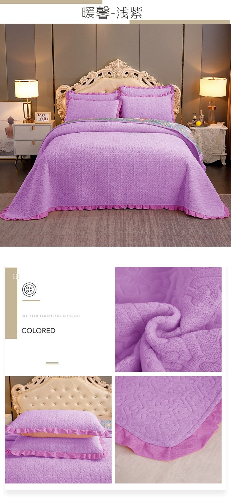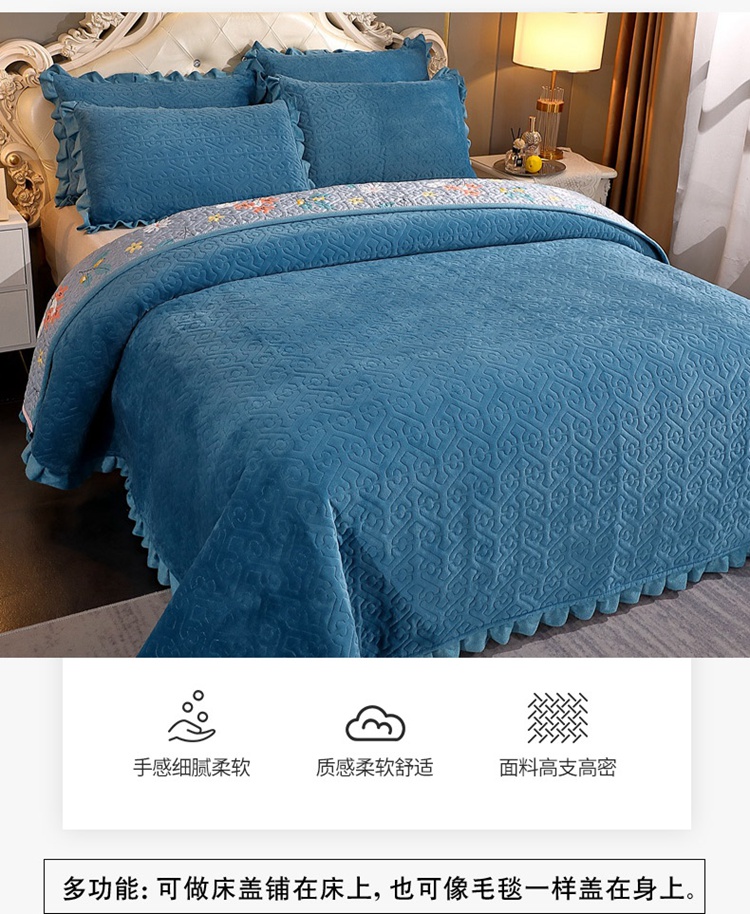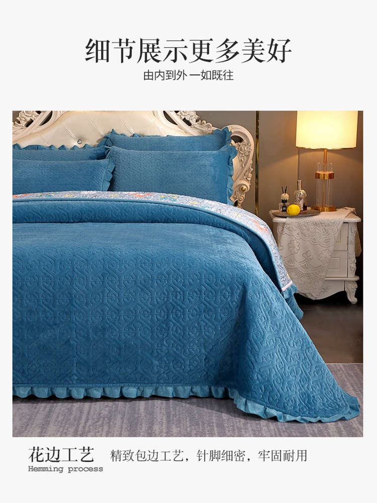 商品名称:(总)2024韩版小花边牛奶绒床盖三件套/绗缝夹棉榻榻米垫子