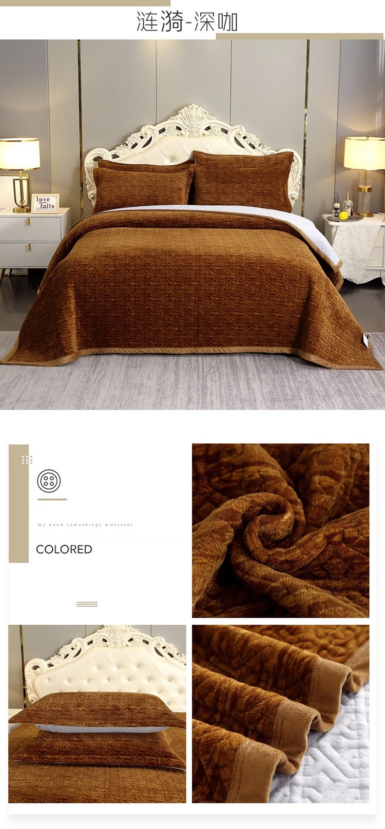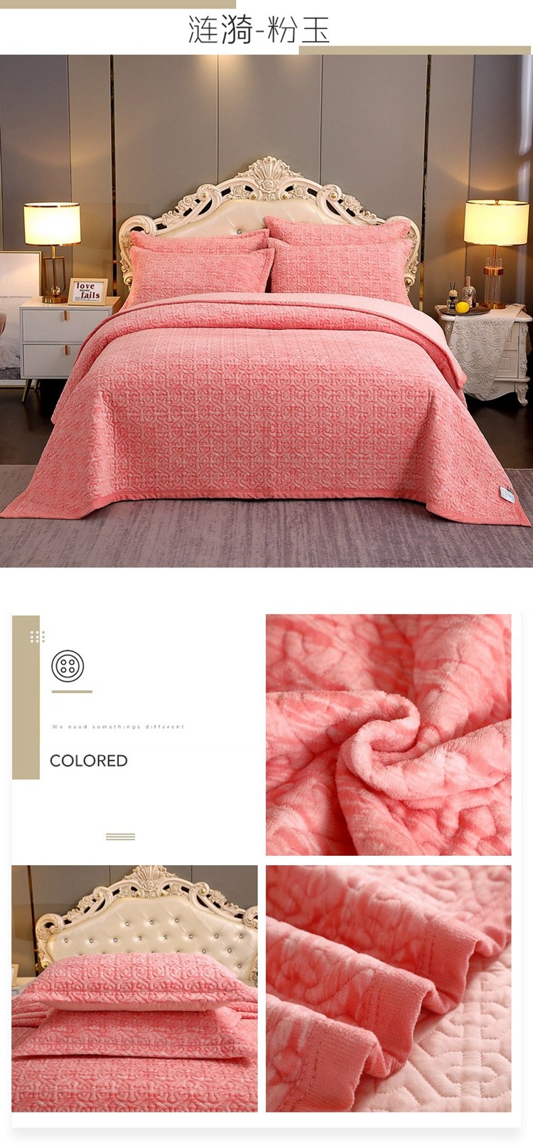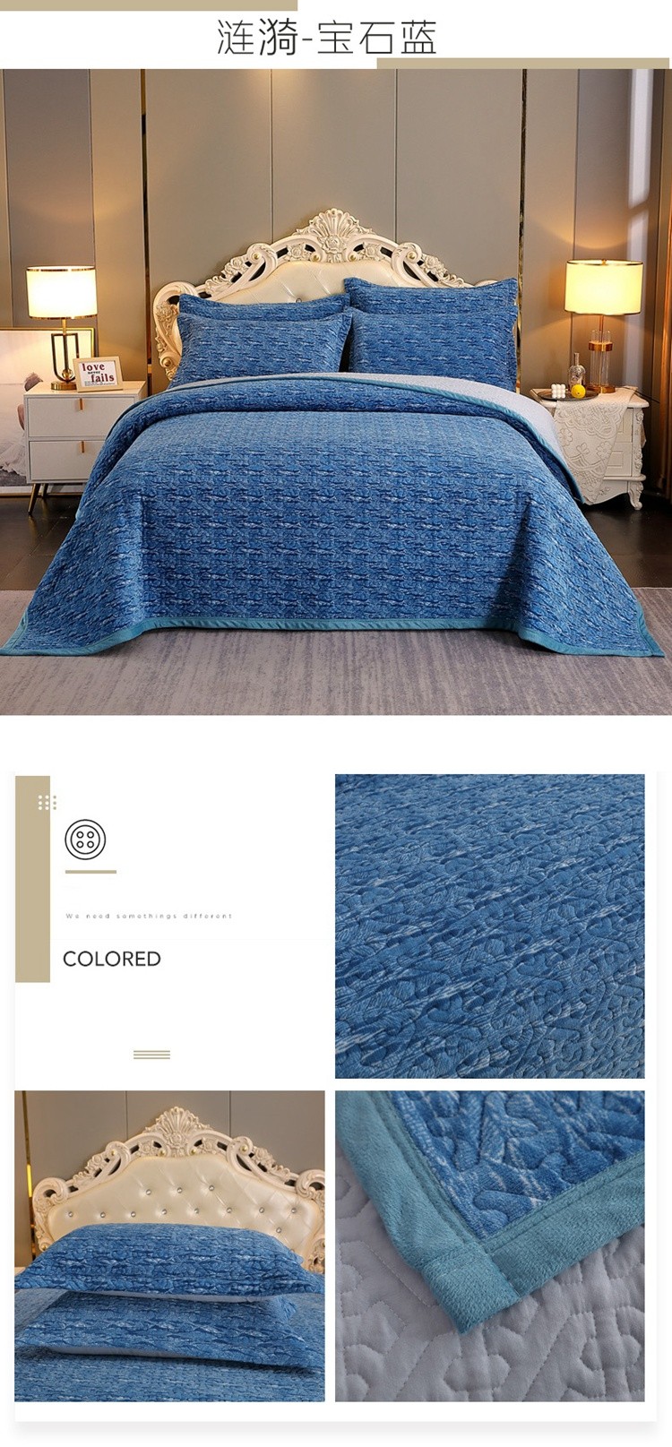 (总)2024水波纹色织牛奶绒床盖三件套/绗缝夹棉榻榻米垫子