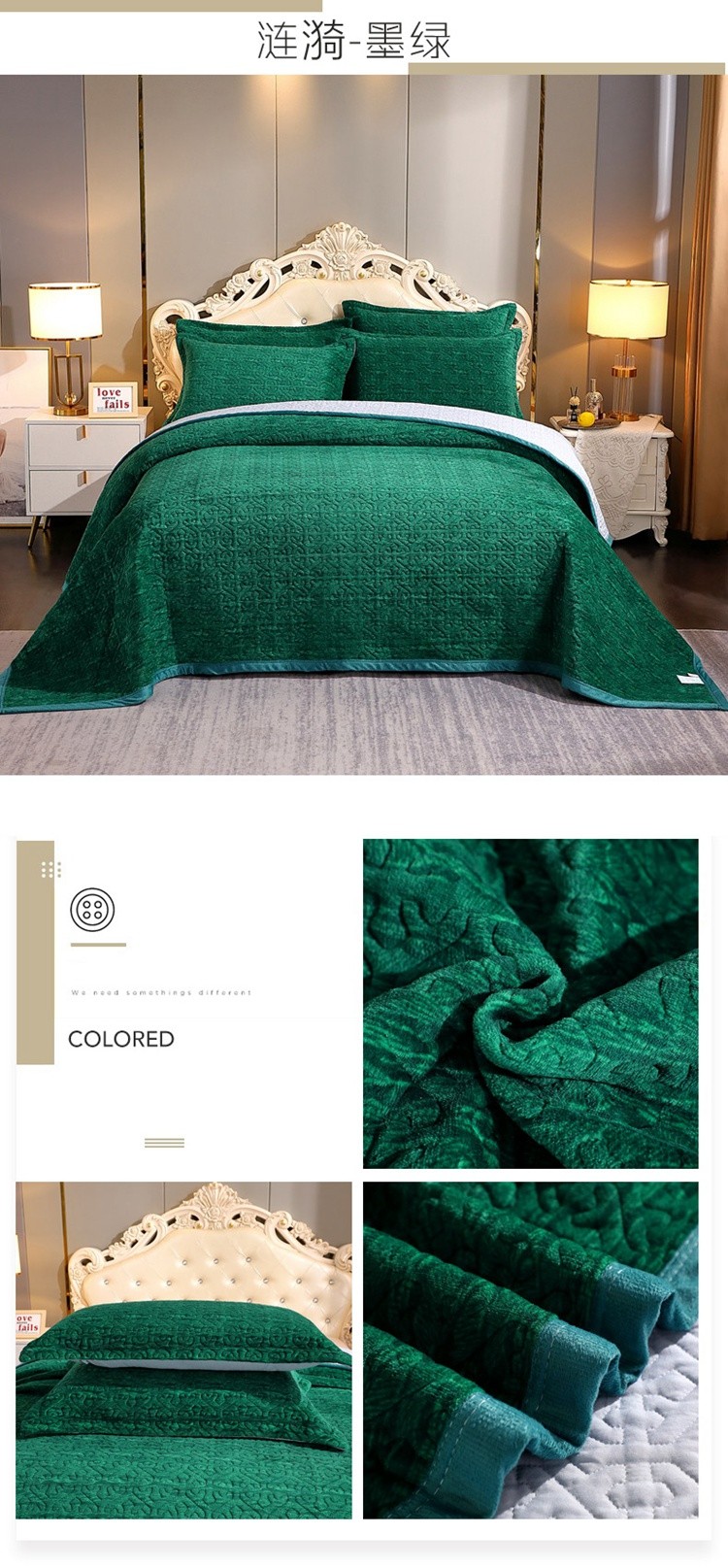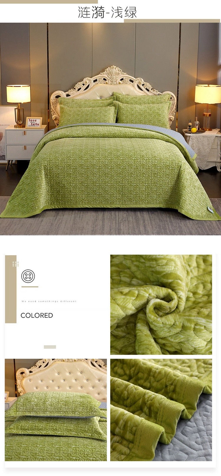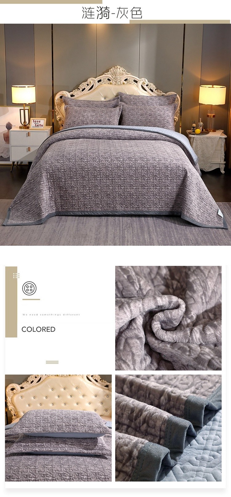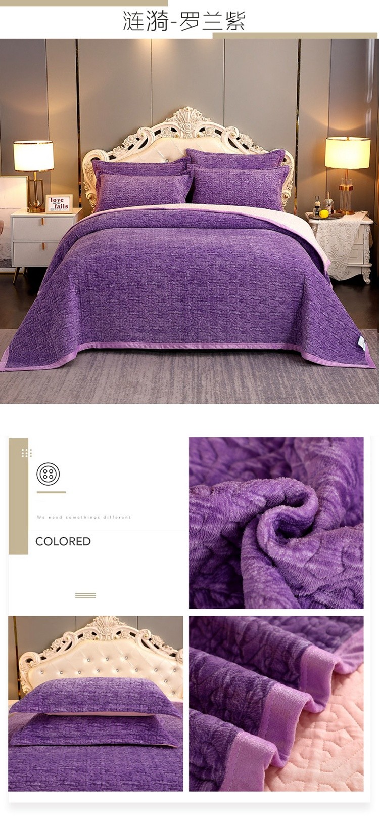 (总)2024水波纹色织牛奶绒床盖三件套/绗缝夹棉榻榻米垫子