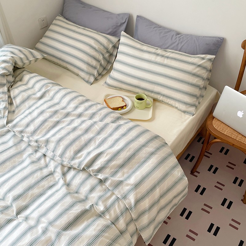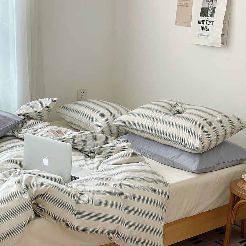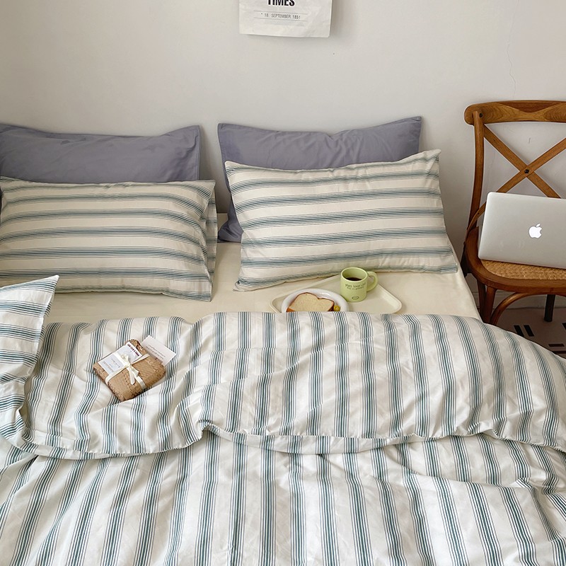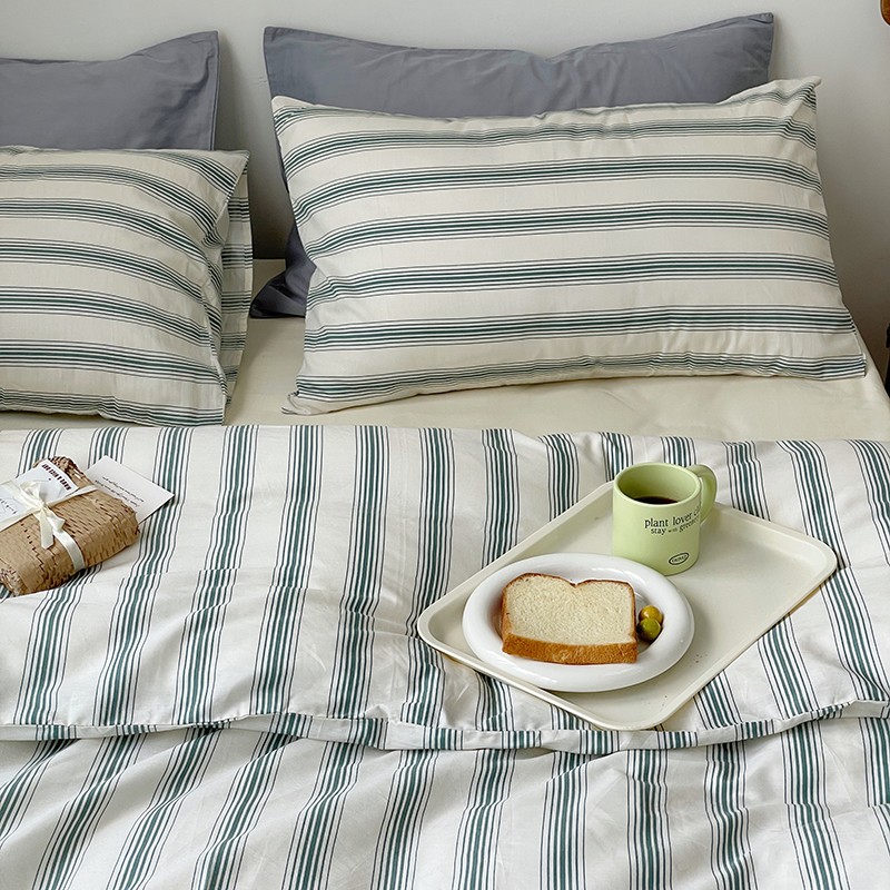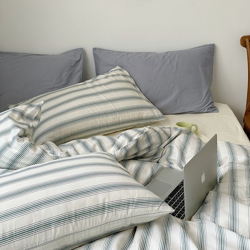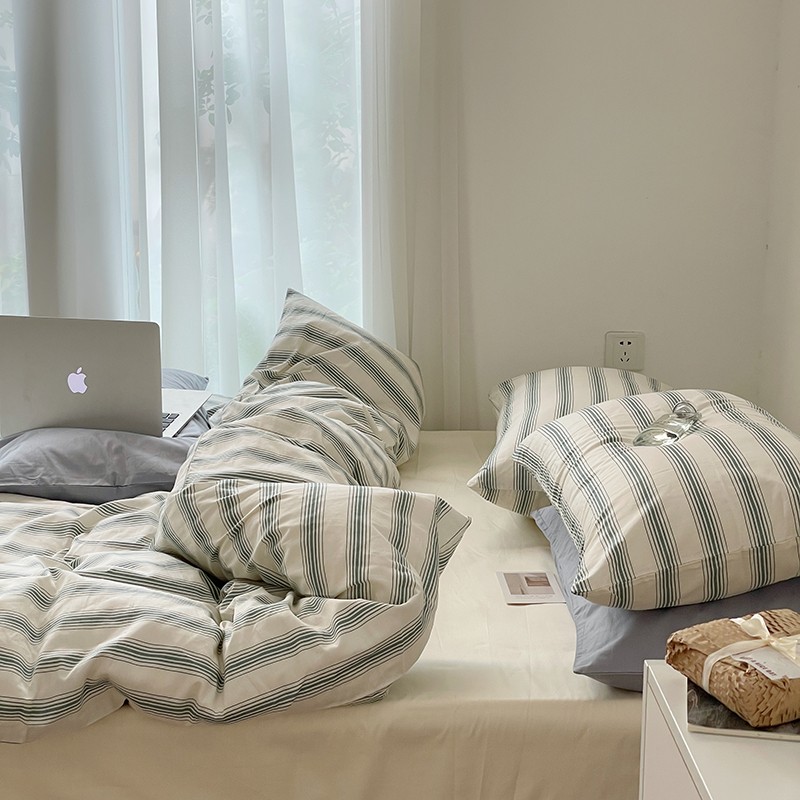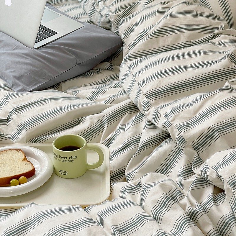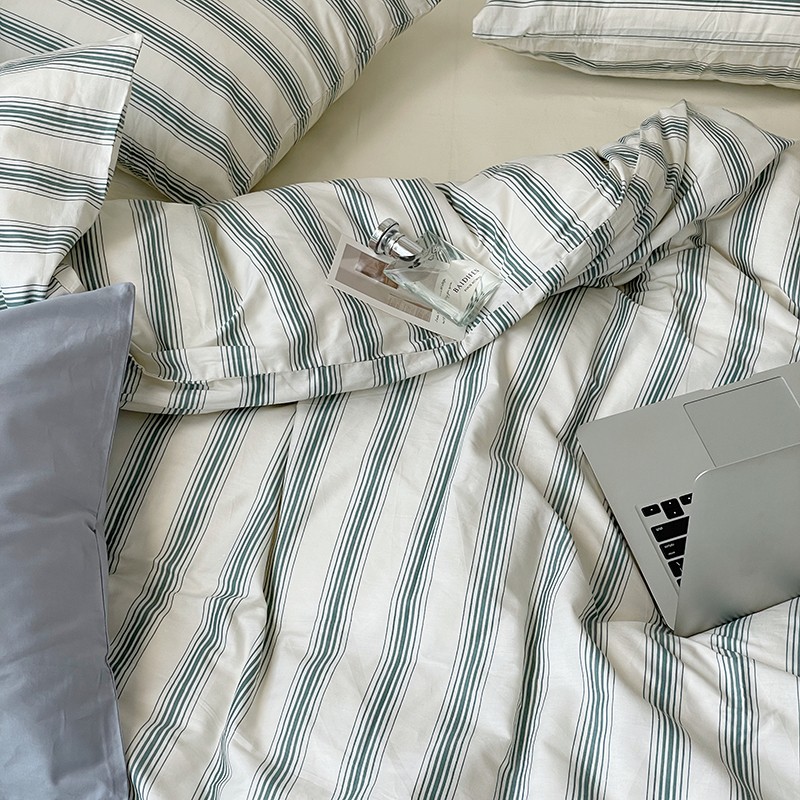 当前位置: 91家纺网 > 商品网购 > 床品套件 > 四件套 > 全棉普通四件套 > 时年 2022新款全棉40支13372ins条纹款四件套 复古奶绿