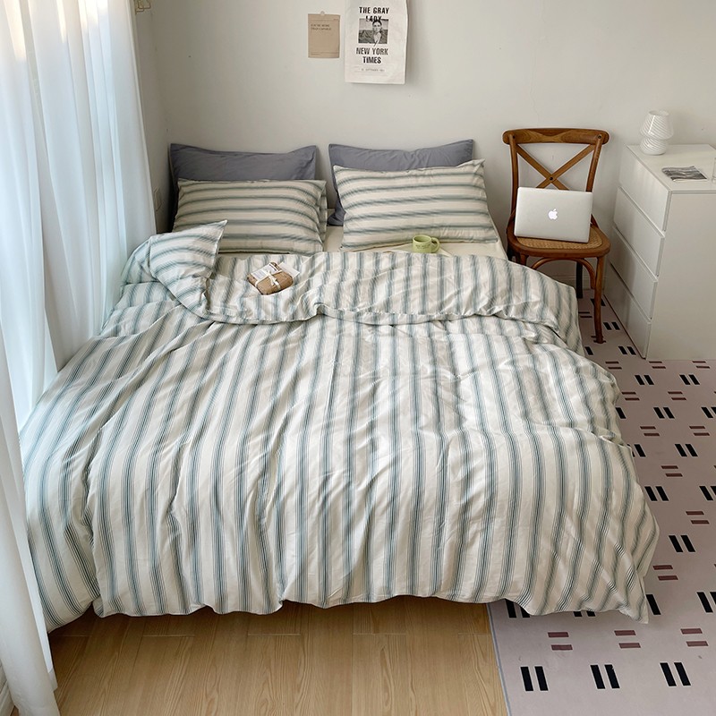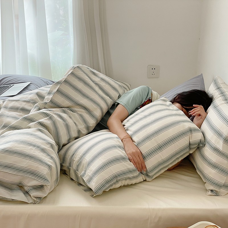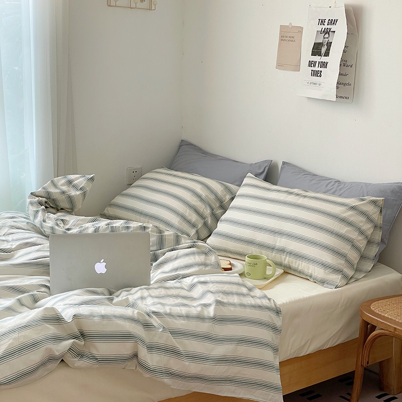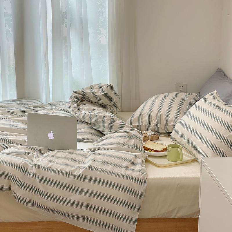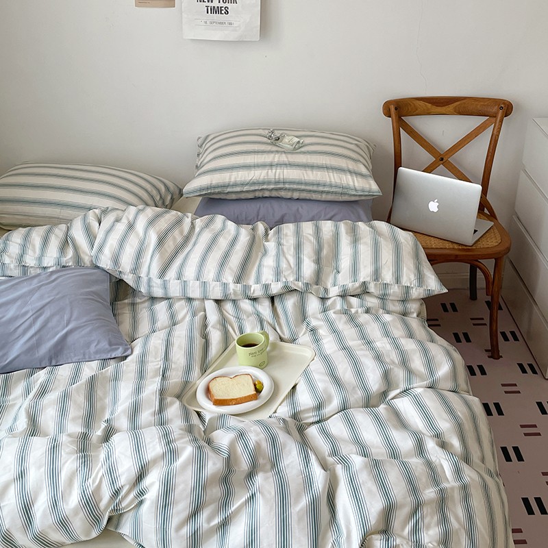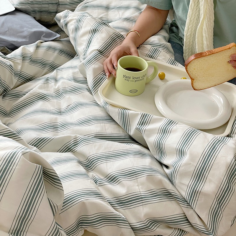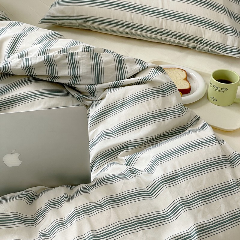 当前位置: 91家纺网 > 商品网购 > 床品套件 > 四件套 > 全棉普通四件套 > 时年 2022新款全棉40支13372ins条纹款四件套 复古奶绿