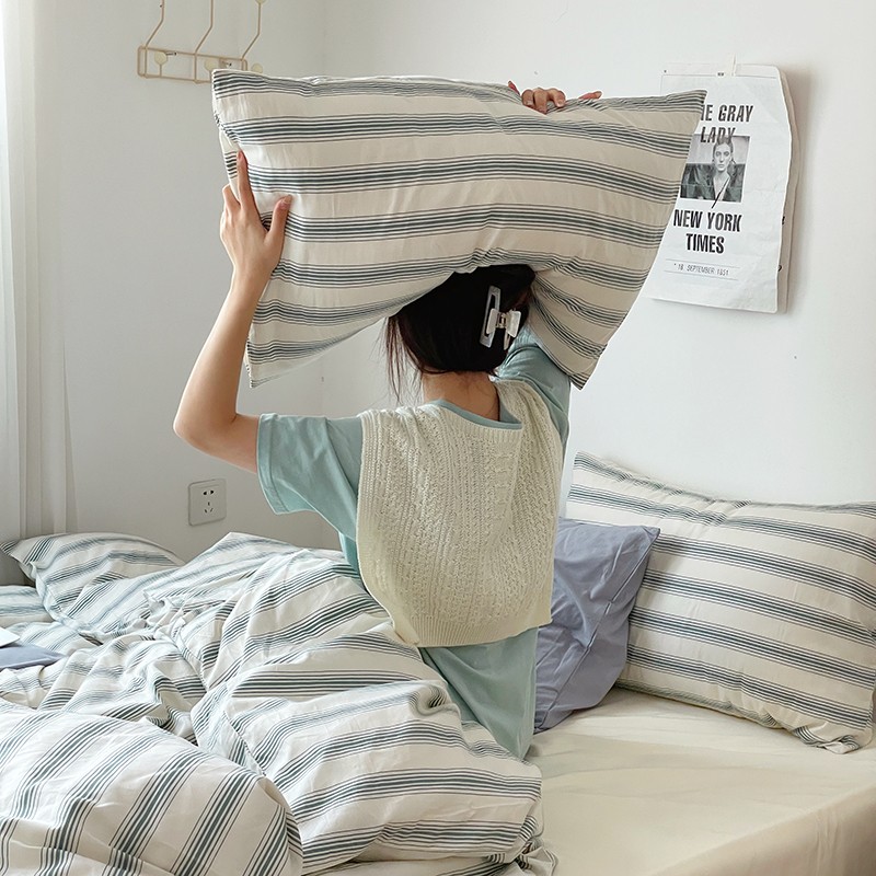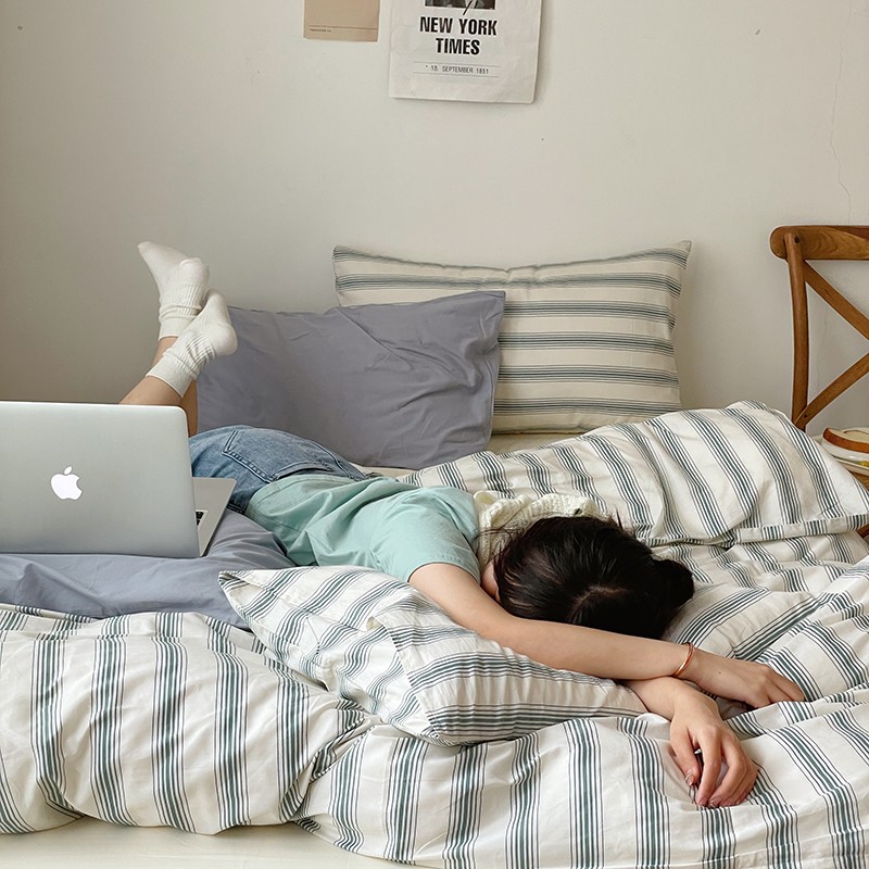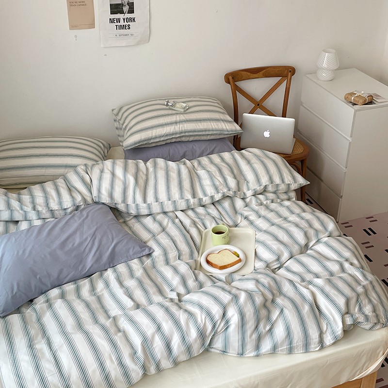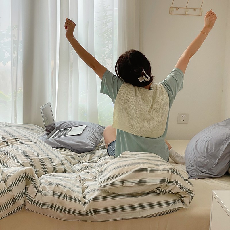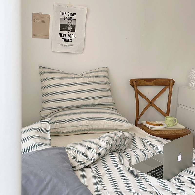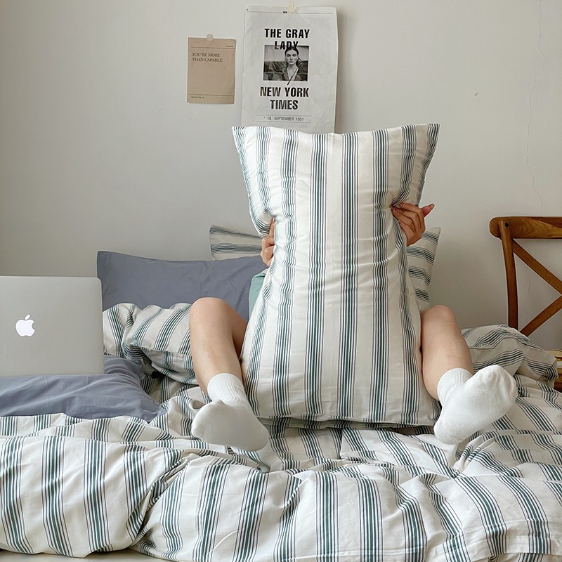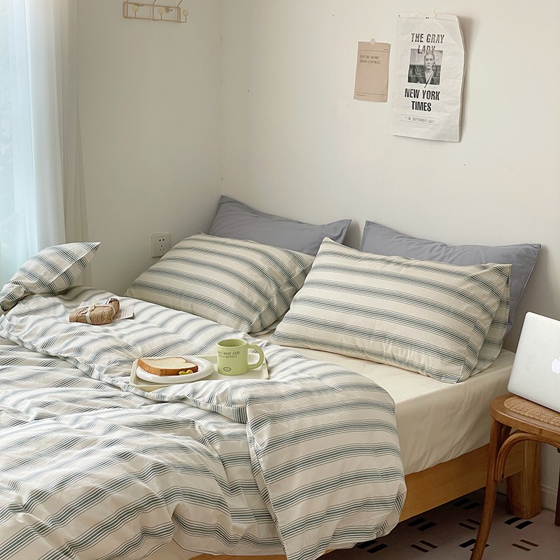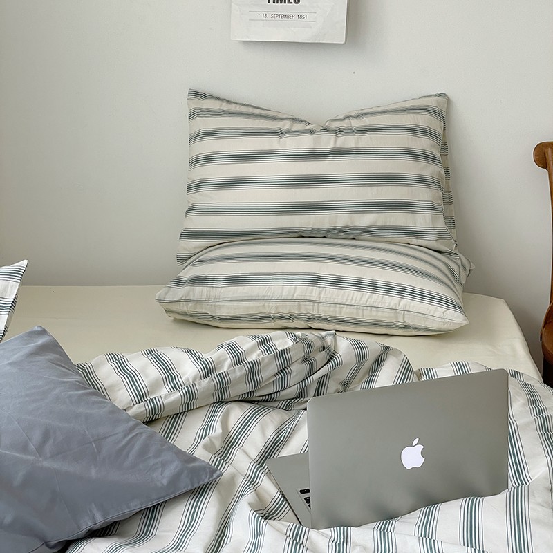当前位置: 91家纺网 > 商品网购 > 床品套件 > 四件套 > 全棉普通四件套 > 时年 2022新款全棉40支13372ins条纹款四件套 复古奶绿