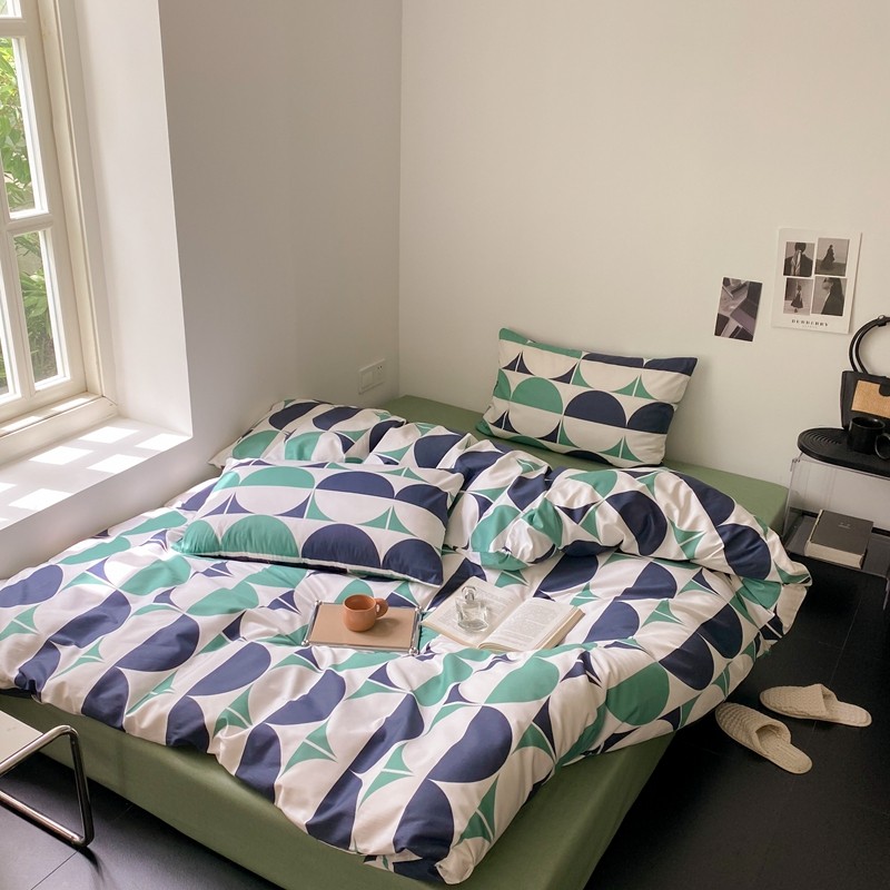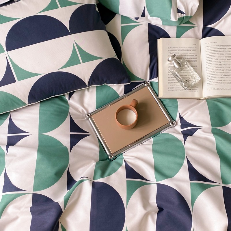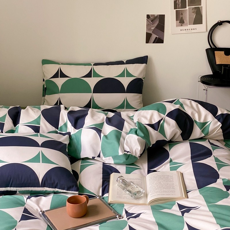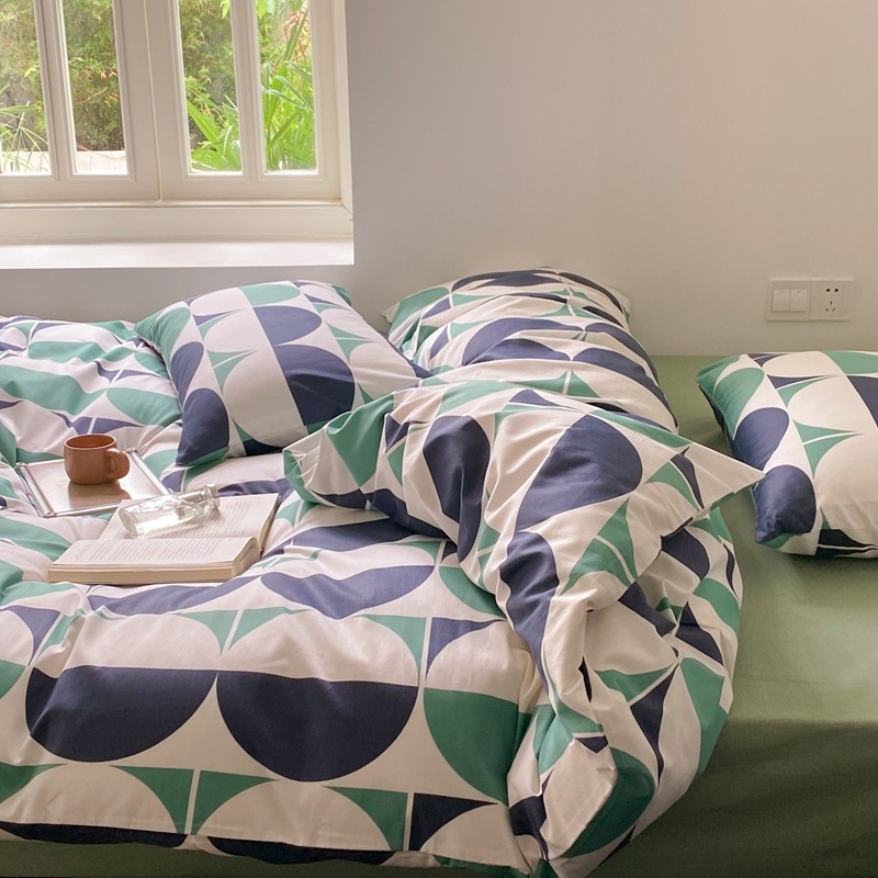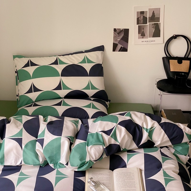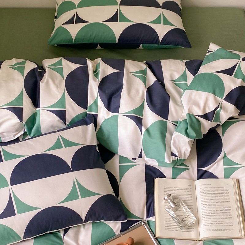 昔可2022新款全棉四件套新款影棚图 绿色拼接圈