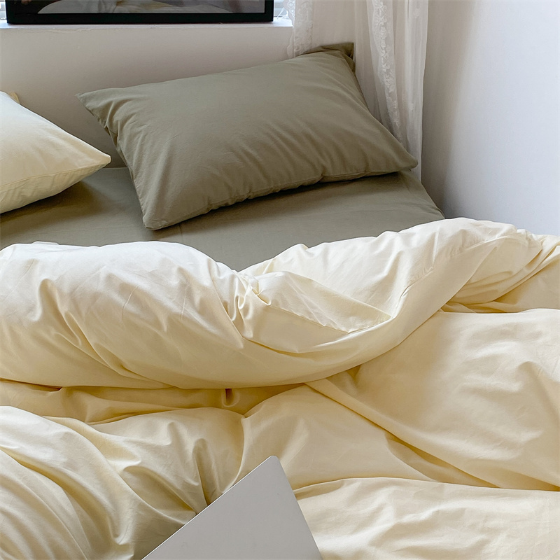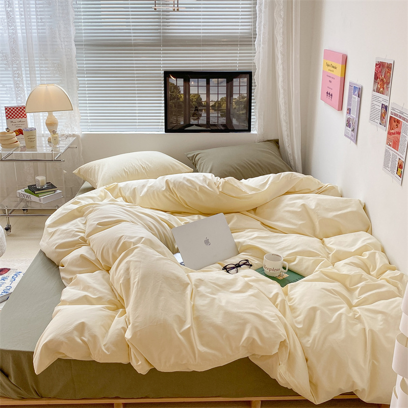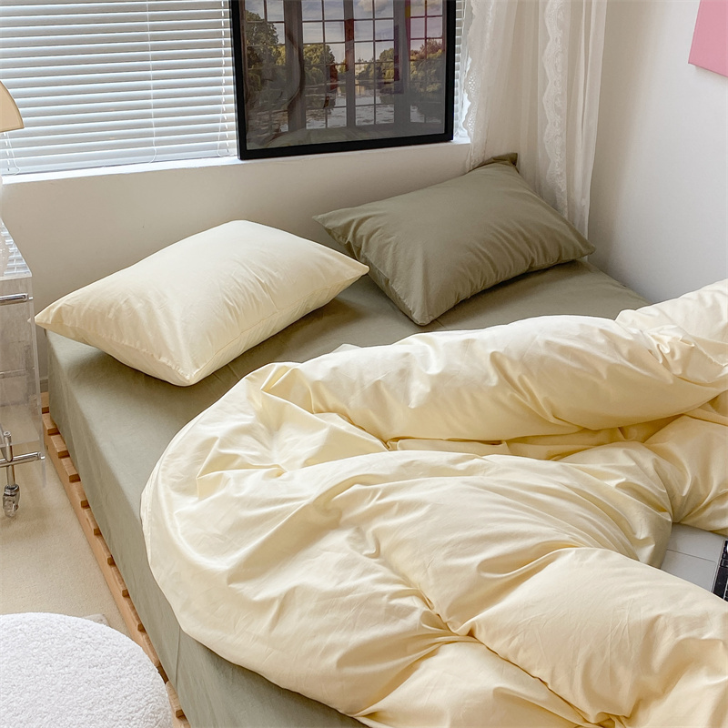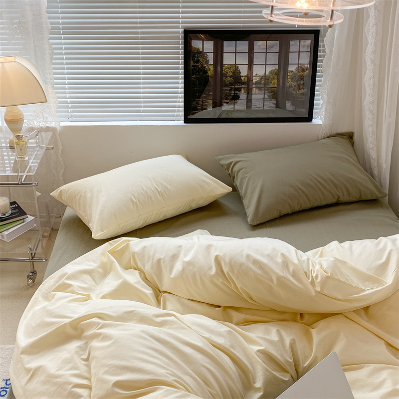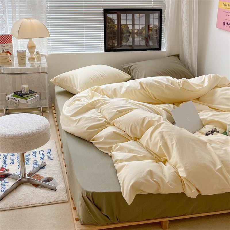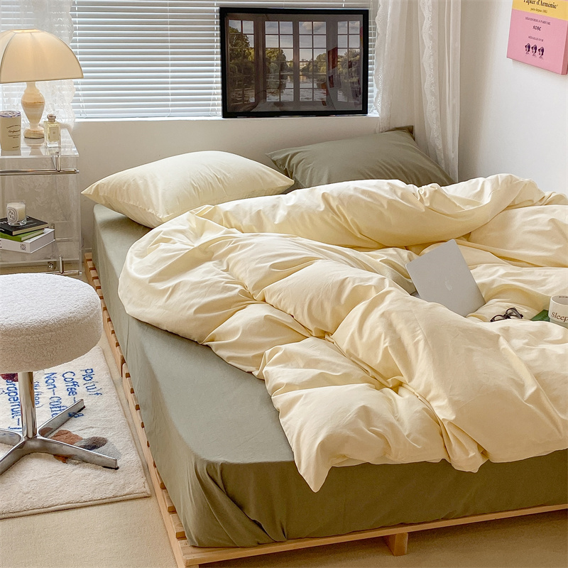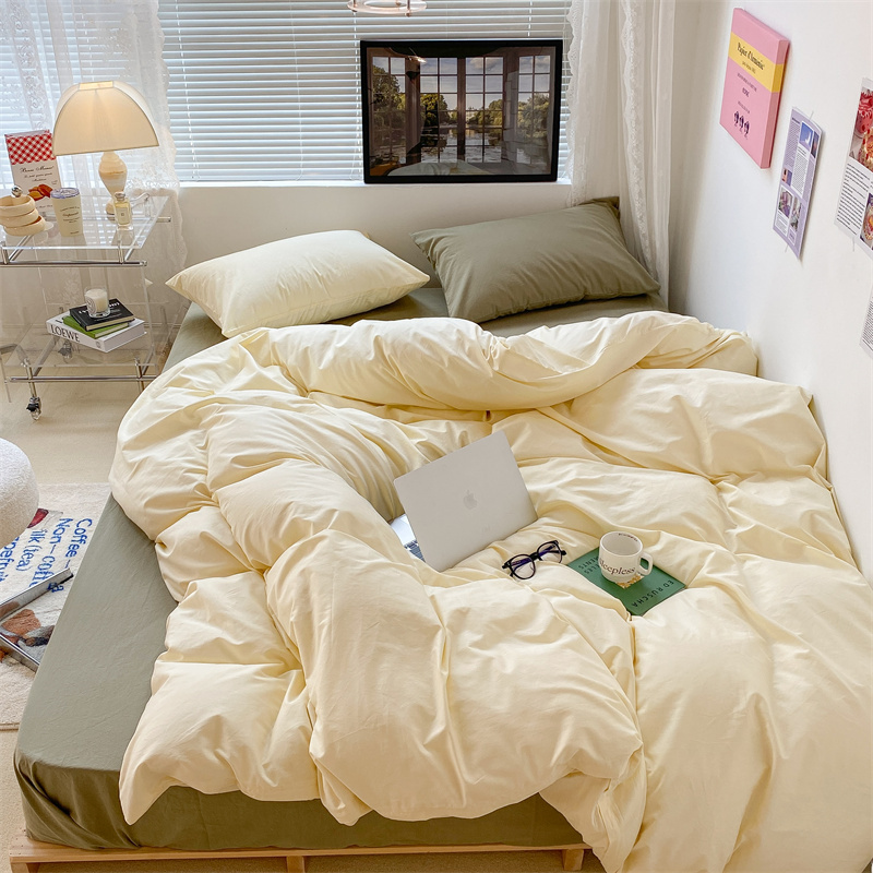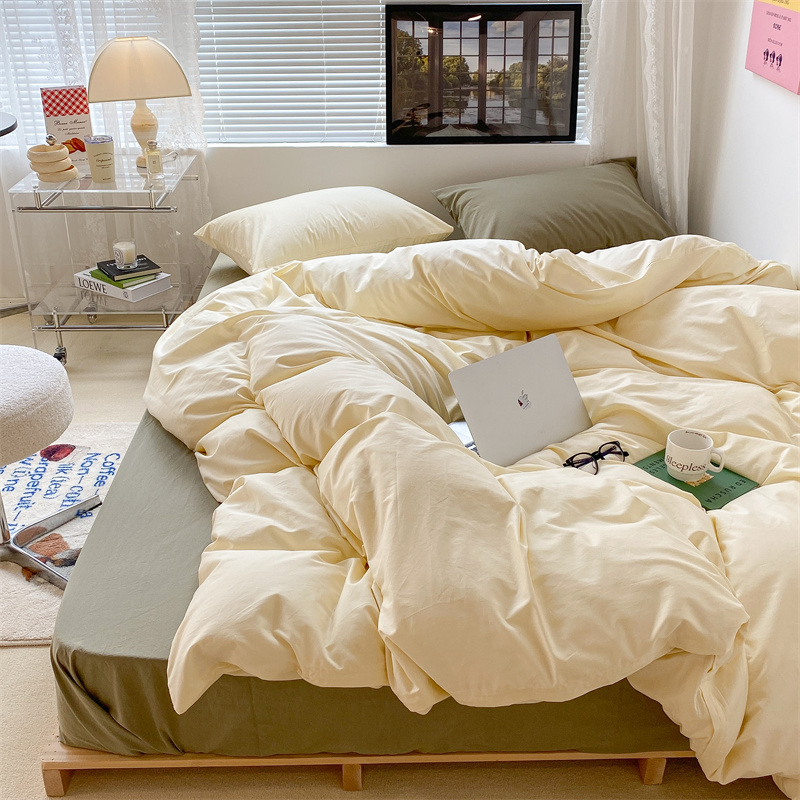 昔可 2022新款40支13372全棉水洗棉混搭四件套 奶白拼抹茶