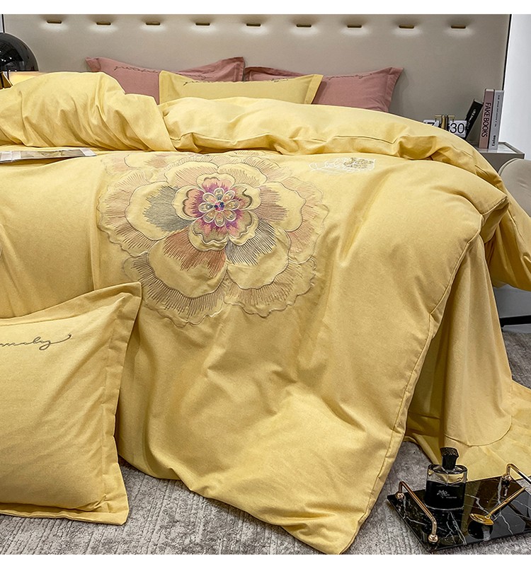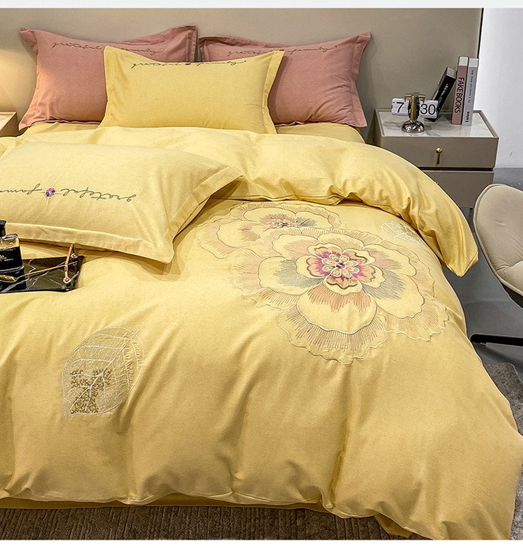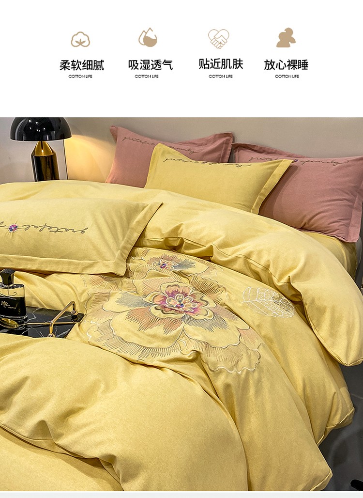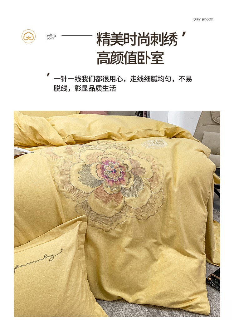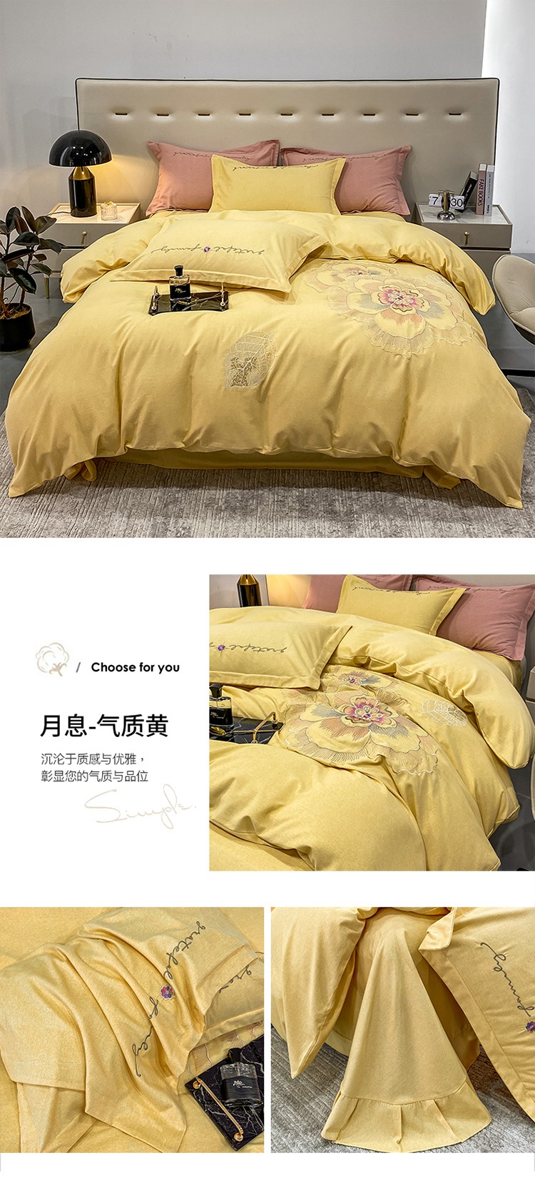 涵宸 2022新款全棉铂金磨毛刺绣四件套-月息系列 月息-气质黄