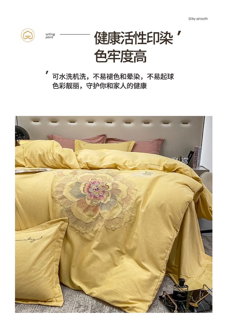 商品名称:涵宸 2022新款全棉铂金磨毛刺绣四件套-月息系列 月息-气质黄