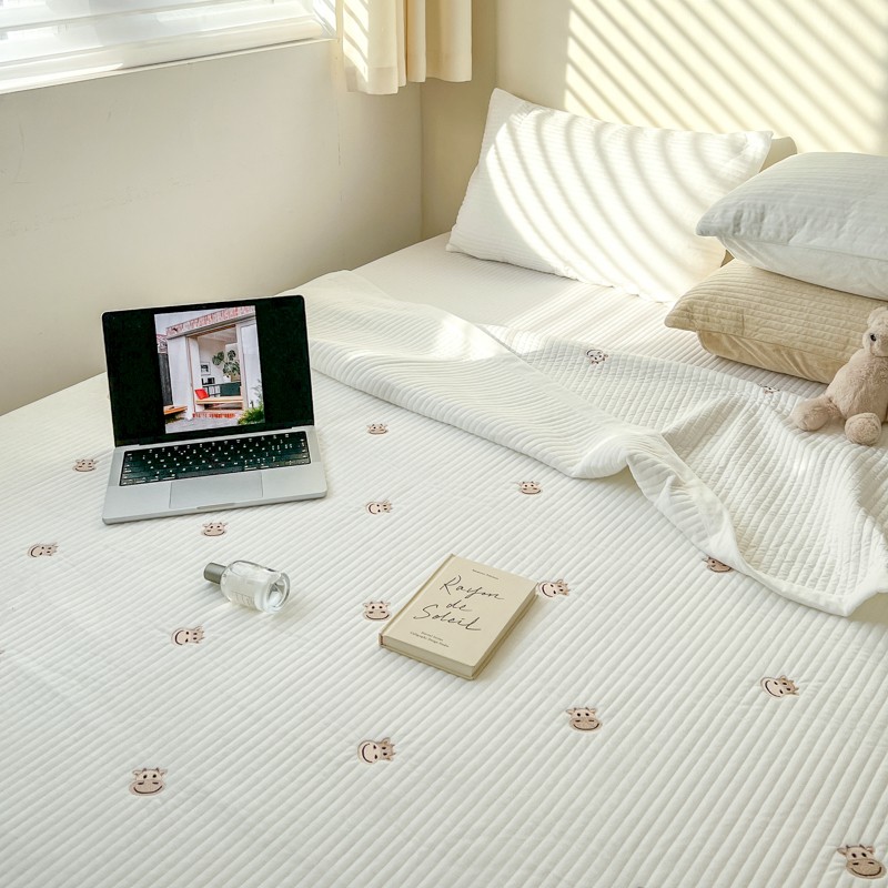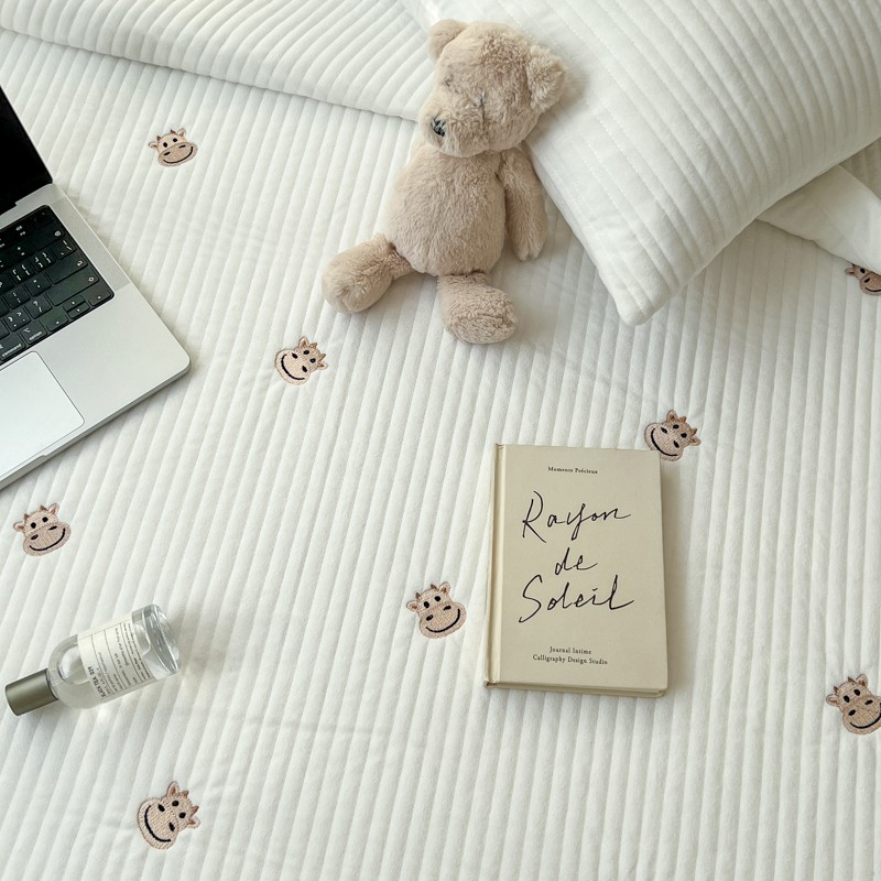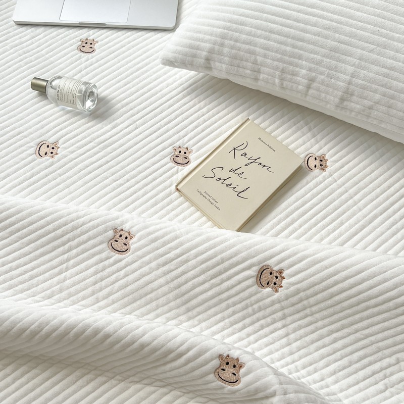 漫调 2022新款宝宝绒刺绣床盖三件套四件套 牛牛白