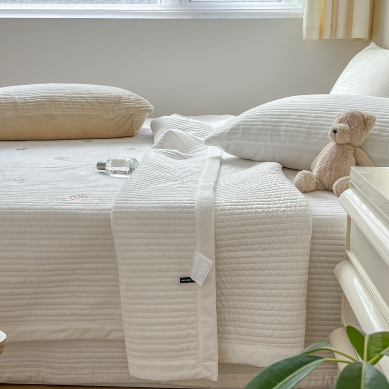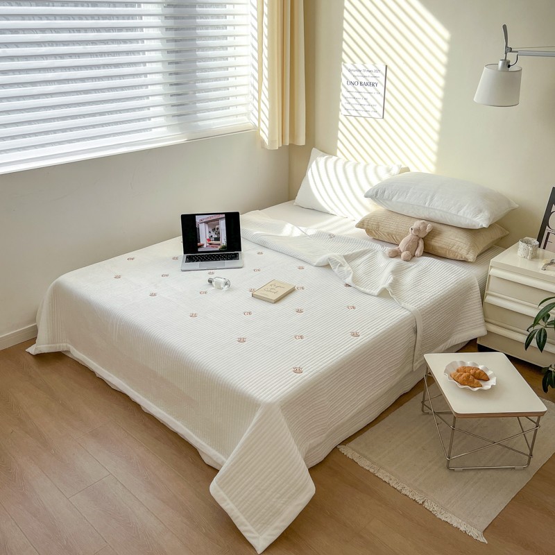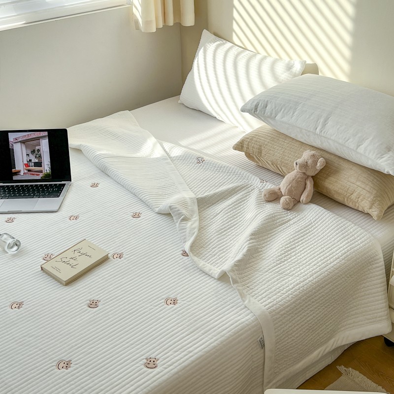 (总)漫调家纺 2025新款繁星绗缝夏被 复古风实拍,繁星白,繁星粉,繁星灰,繁星咖,繁星绿,繁星杏