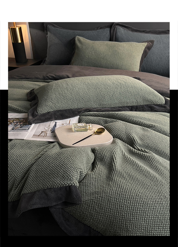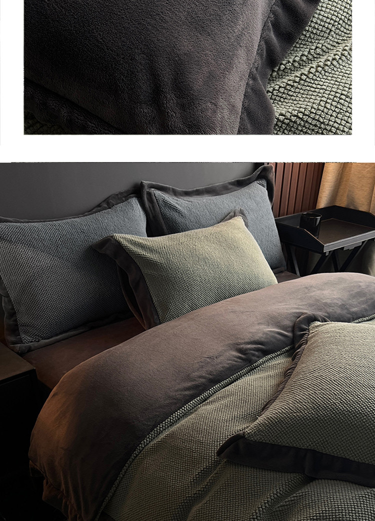 (总)网客家纺 2025新款羊毛绒牛奶绒夹棉床盖四件套,豹点-深灰,简格-黑色,简格-咖色,空间-红色,泥点-灰色,泥点-咖色,维奥-灰色,斜格-灰色,斜格-墨绿