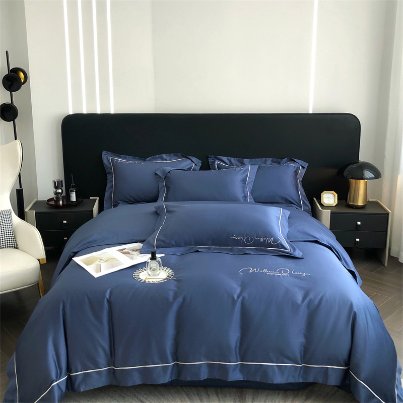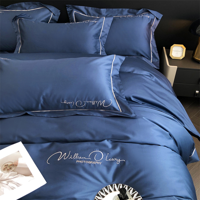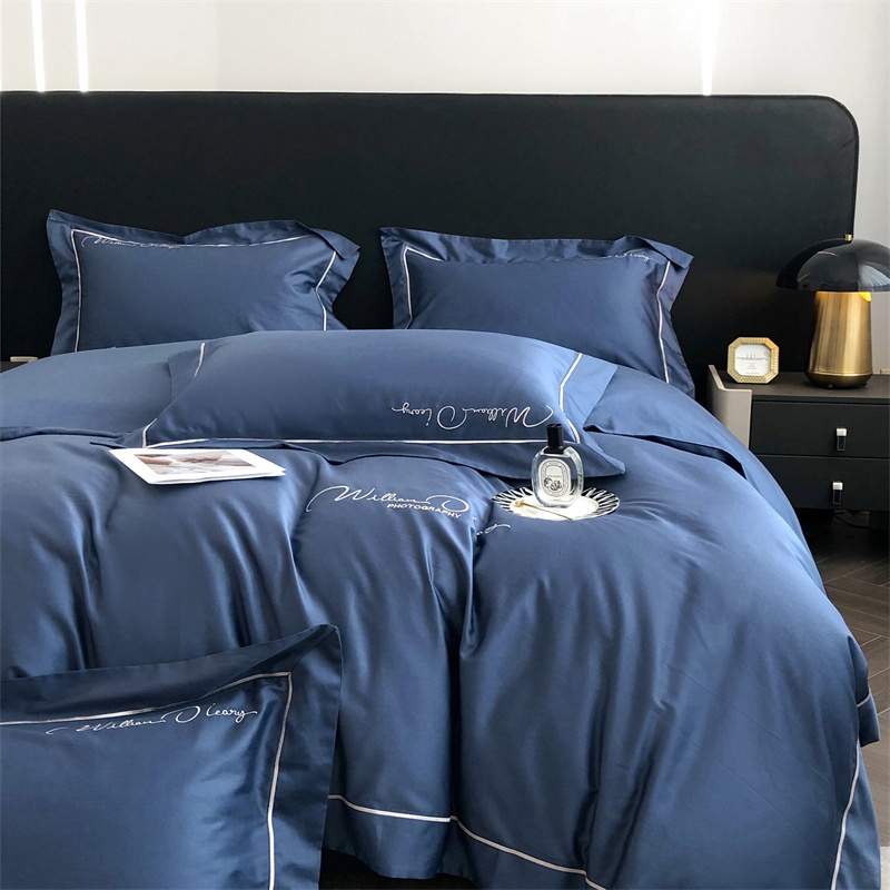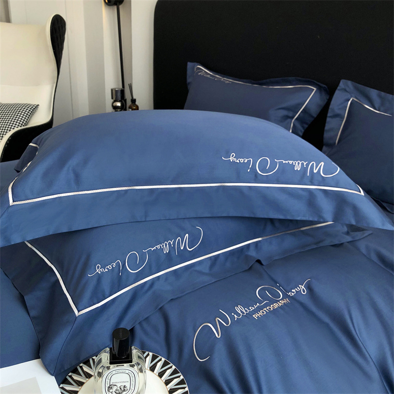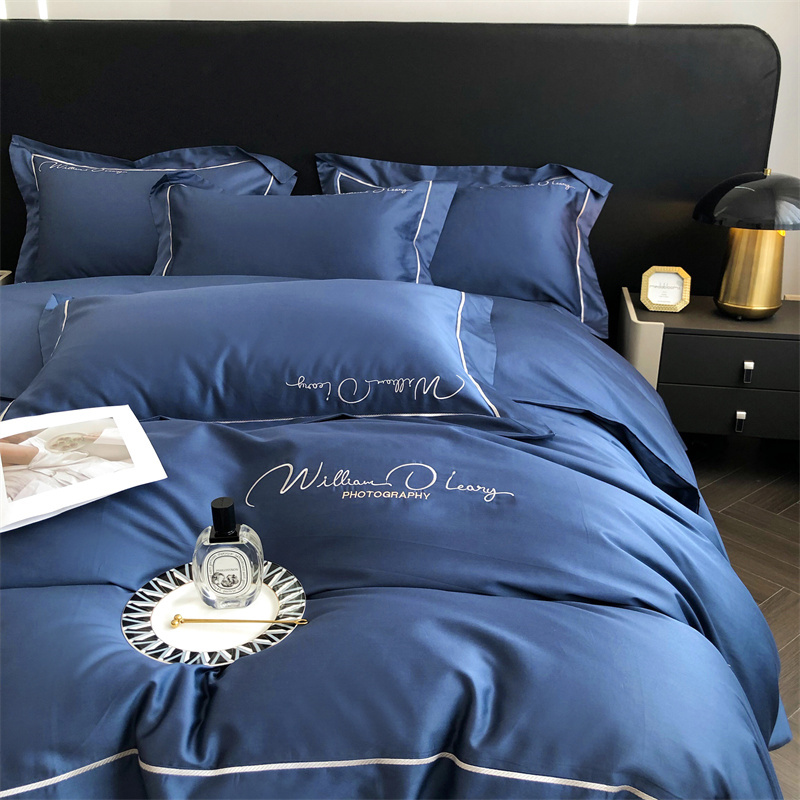 总玖玖爱家纺 纯棉100支贡缎长绒棉刺绣被套三件套四件套加大四件套,白色,高级灰,卡其,蓝灰,绿色,浅桔,深蓝,紫豆沙