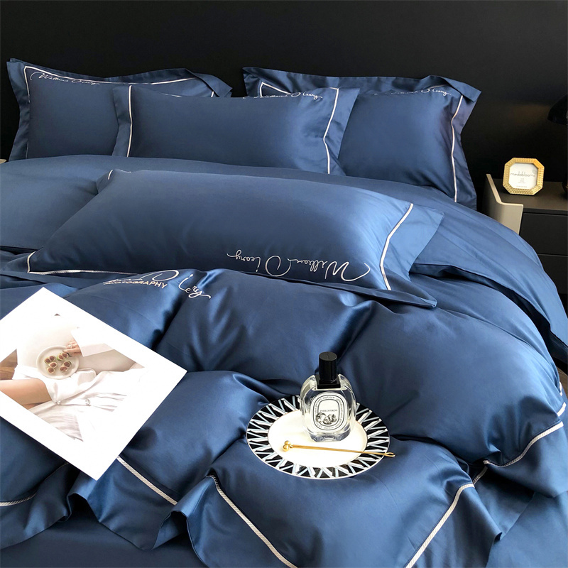商品名称:玖玖爱 2022新款100支纯色贡缎四件套 艾丽尼罗蓝