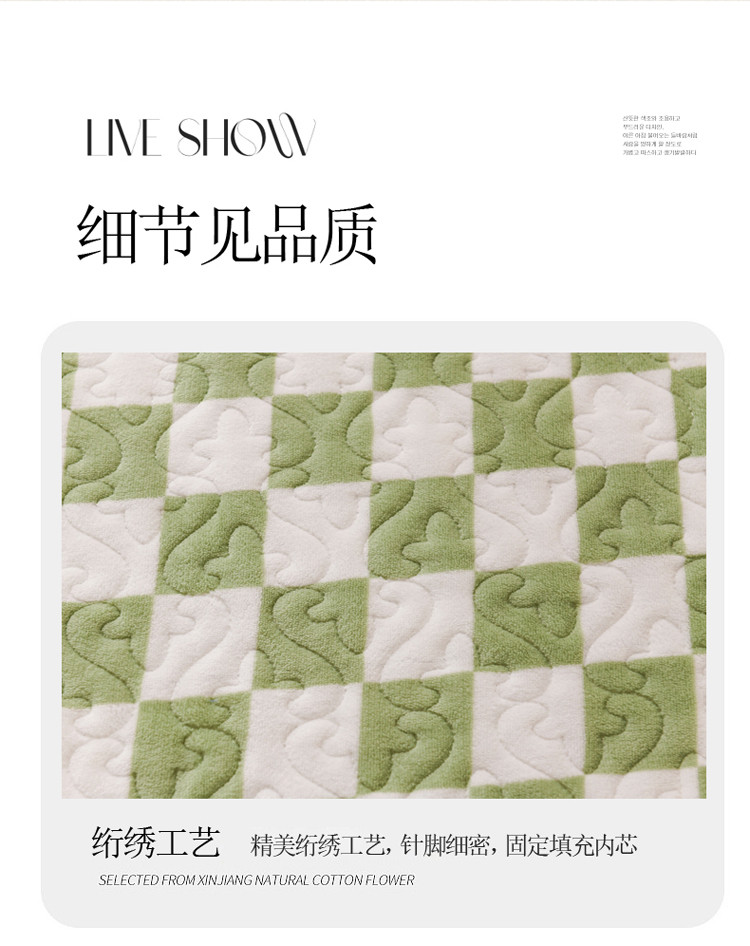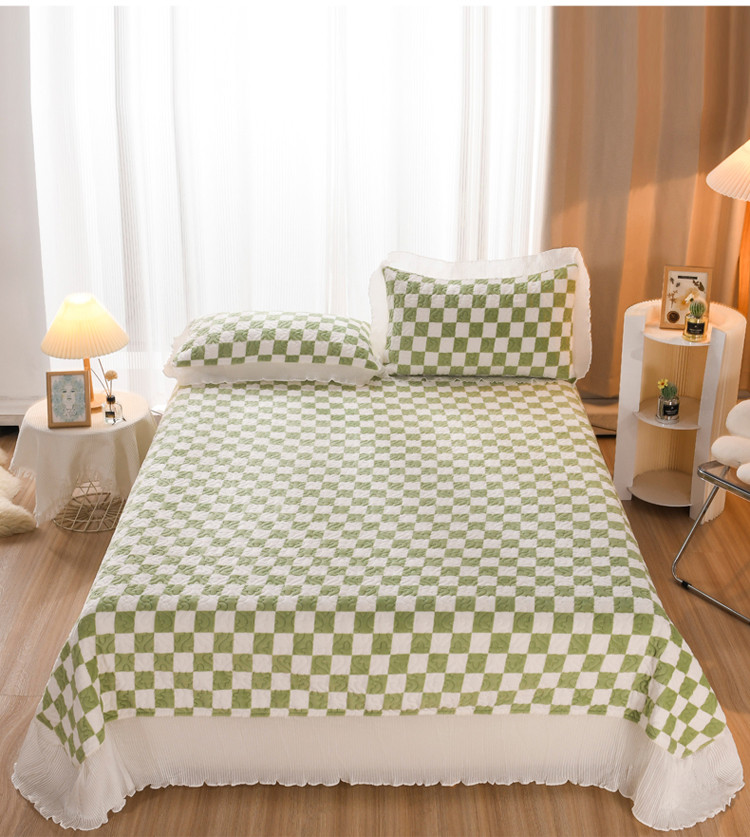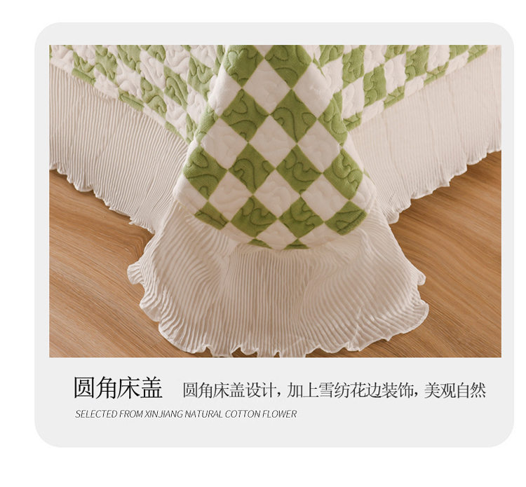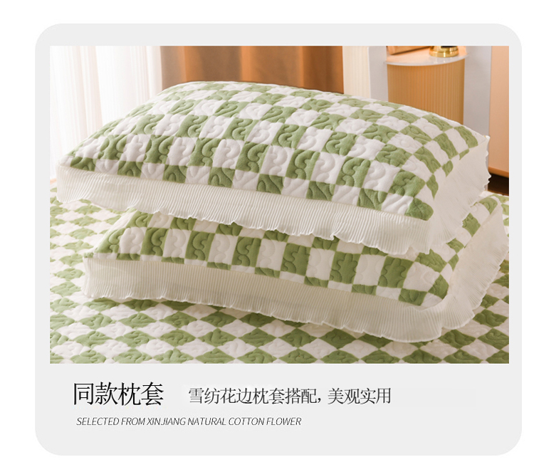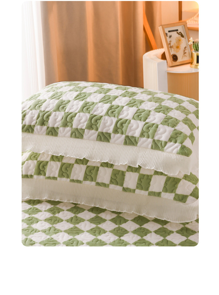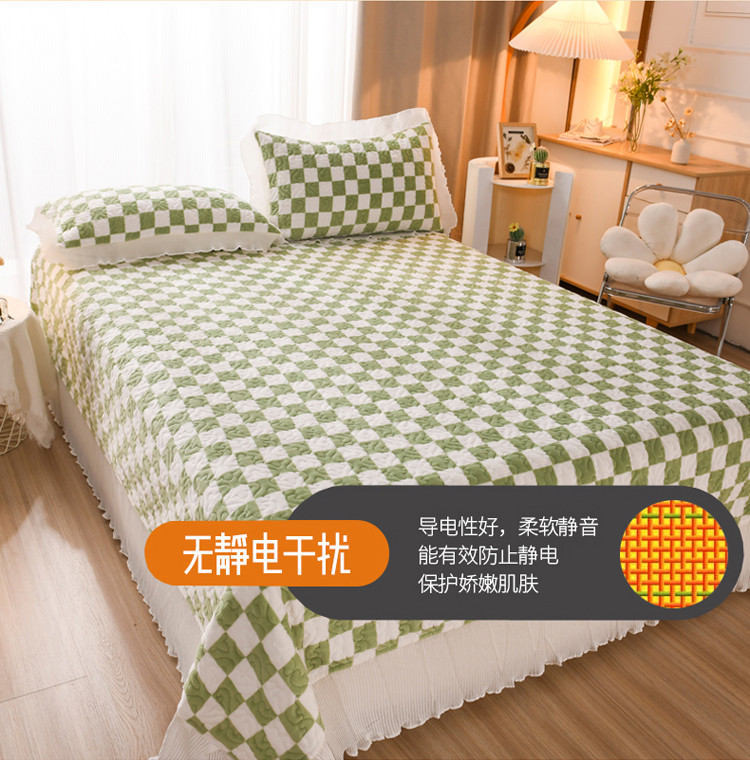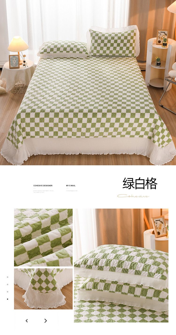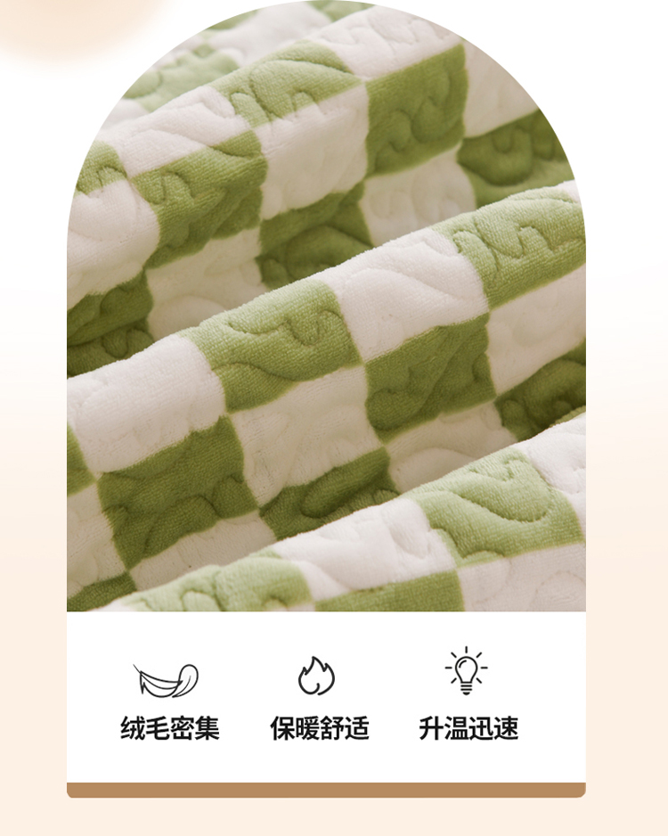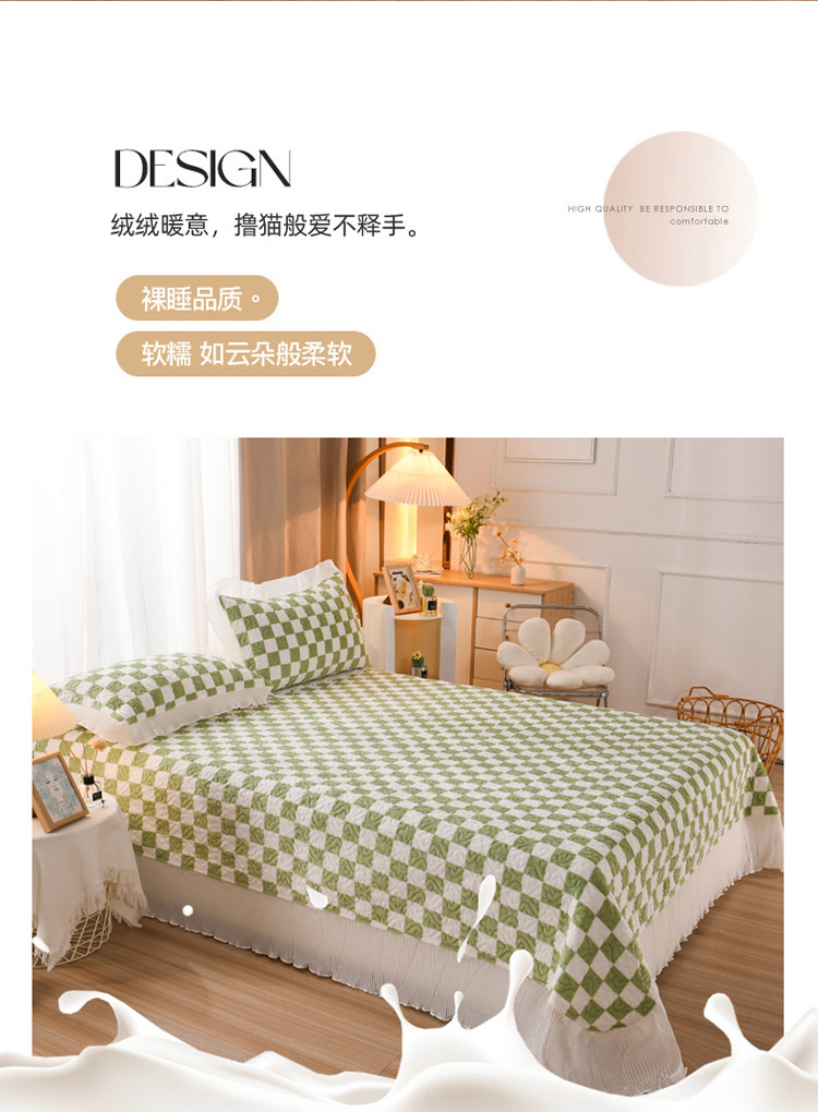 商品名称:迷仙巢 2022新款牛奶绒床盖款 绿白格