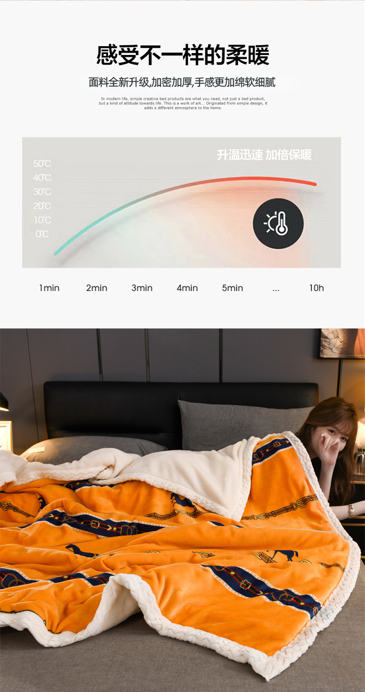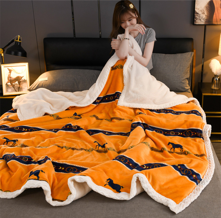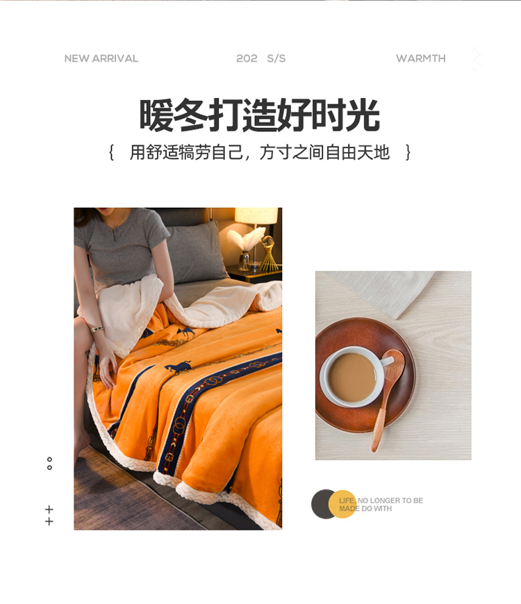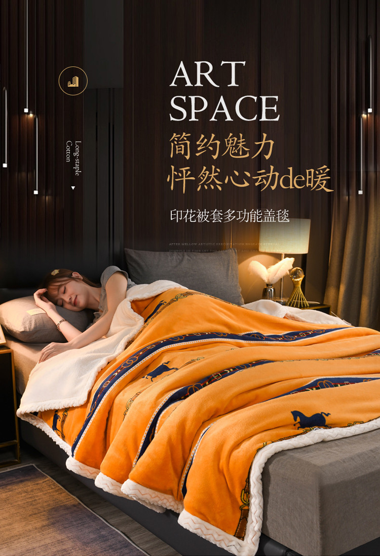 迷仙巢 2022新款牛奶绒拼北极绒盖毯 马到成功