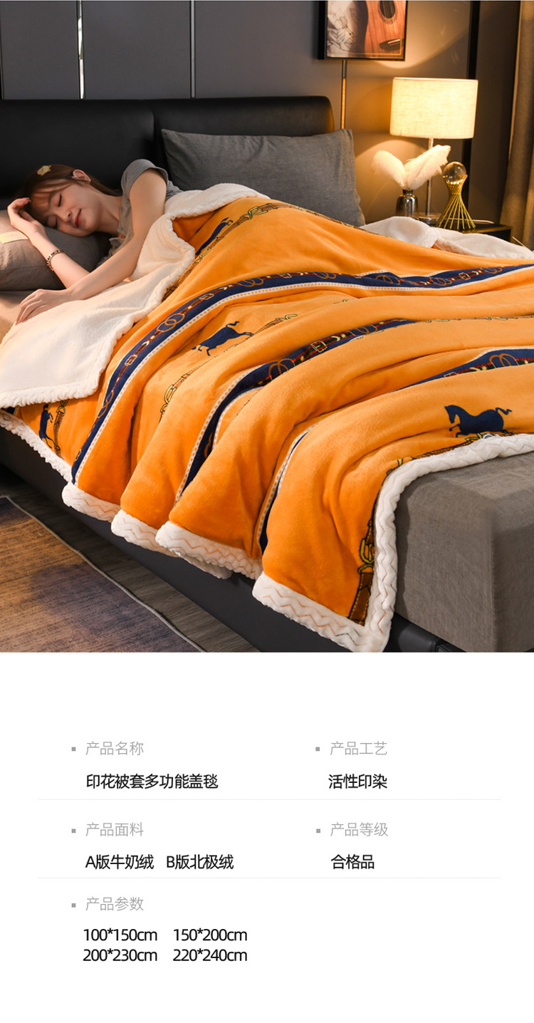 商品名称:迷仙巢 2022新款牛奶绒拼北极绒盖毯 马到成功