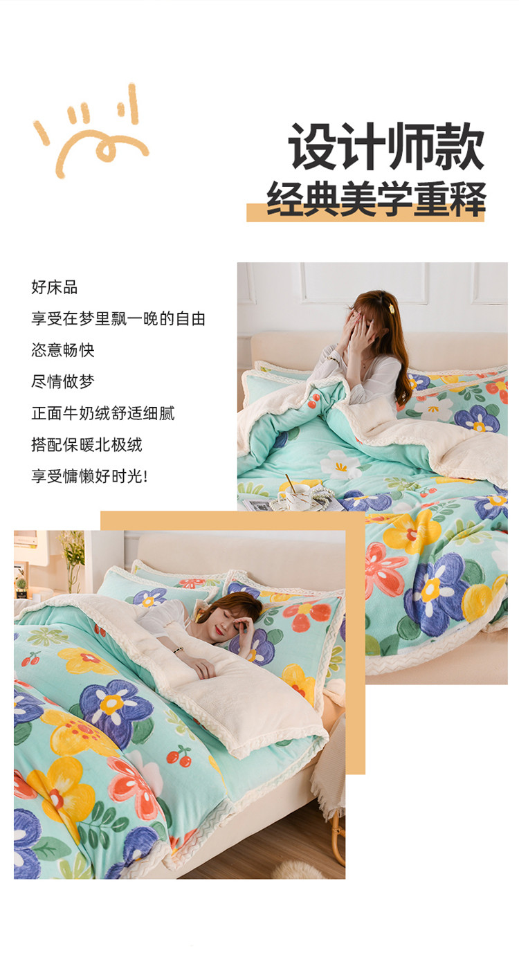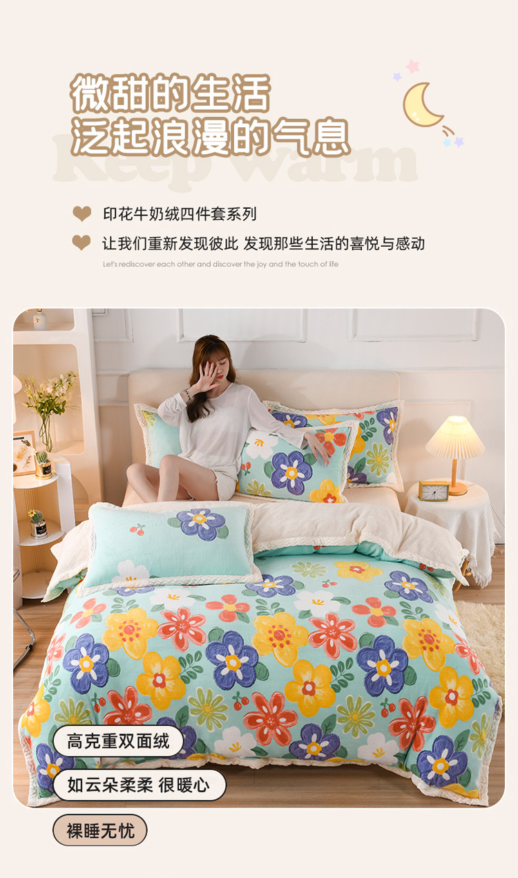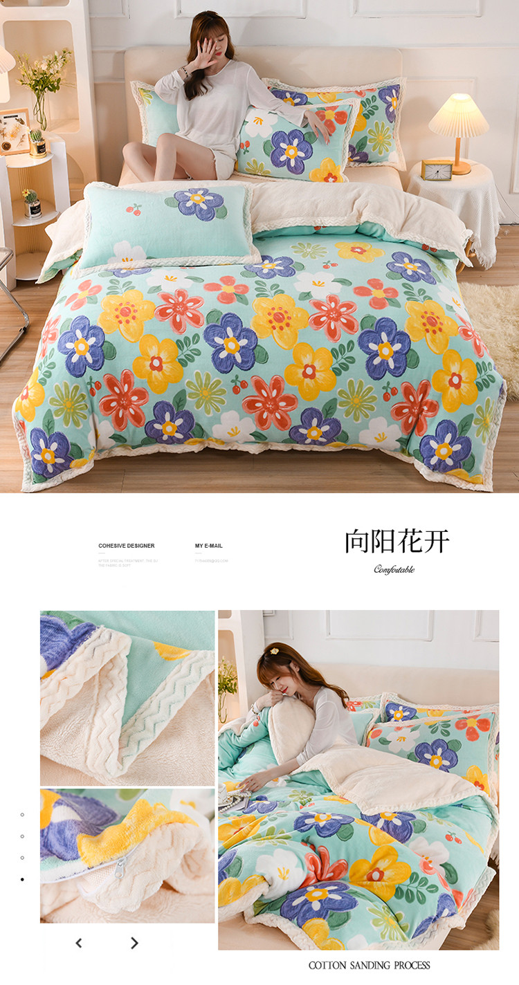 当前位置: 91家纺网 > 商品网购 > 床品套件 > 四件套 > 牛奶绒四件套 > 迷仙巢 2022新款牛奶绒拼北极绒贝贝绒包边四件套 向阳花开