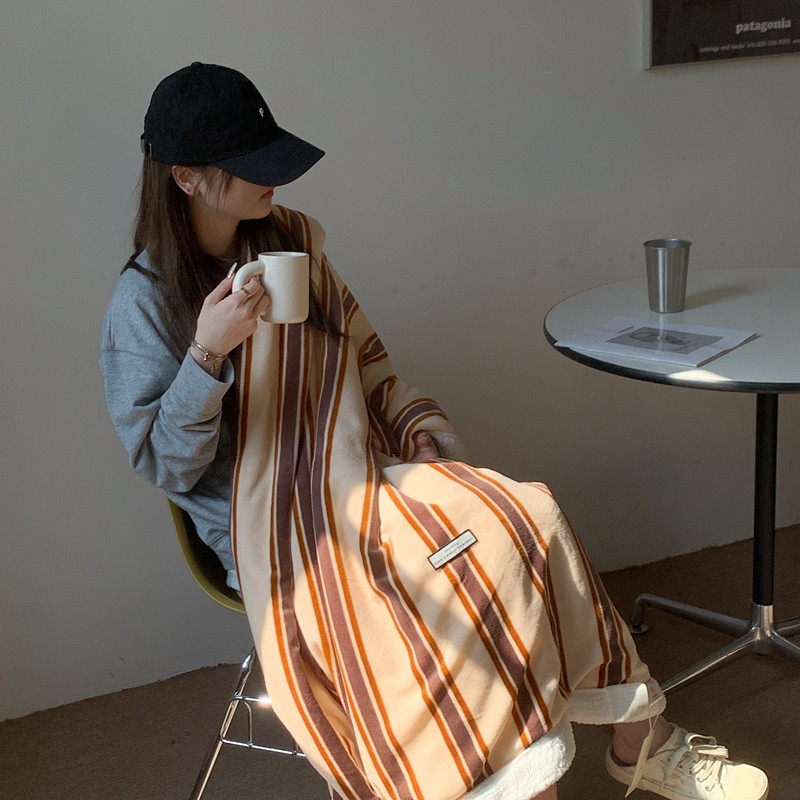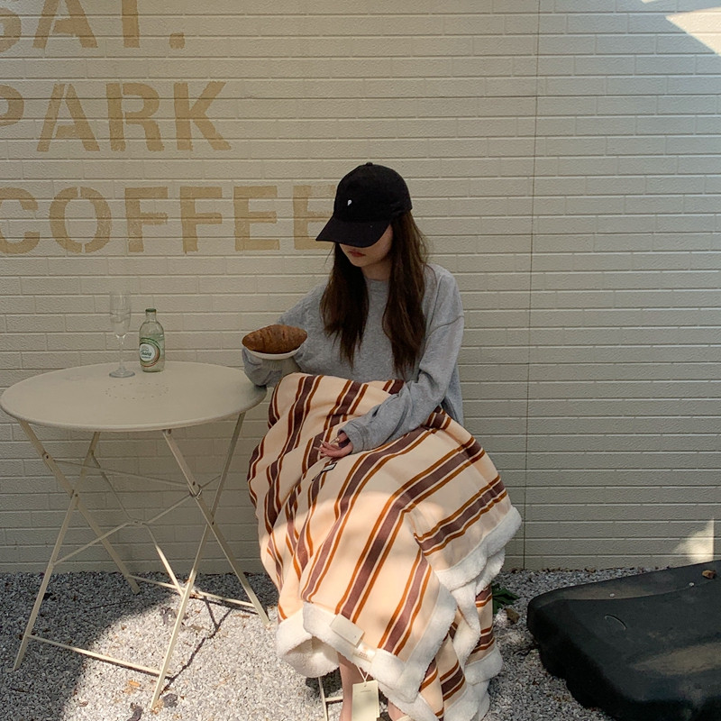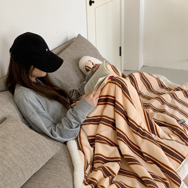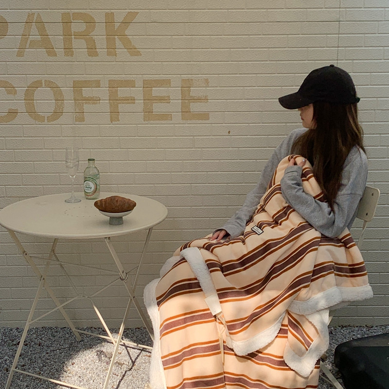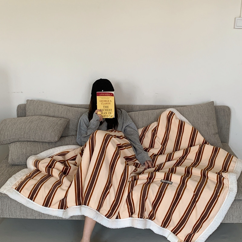 (总)桃喜 2024新款牛奶绒羊羔绒条纹系列盖绒毛毯午休毯多功能毛毯-场景二,多巴胺彩条,蓝咖条纹,栗子粉条纹,美式复古红蓝条,美式复古黄蓝条