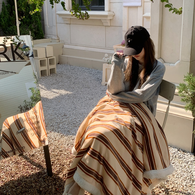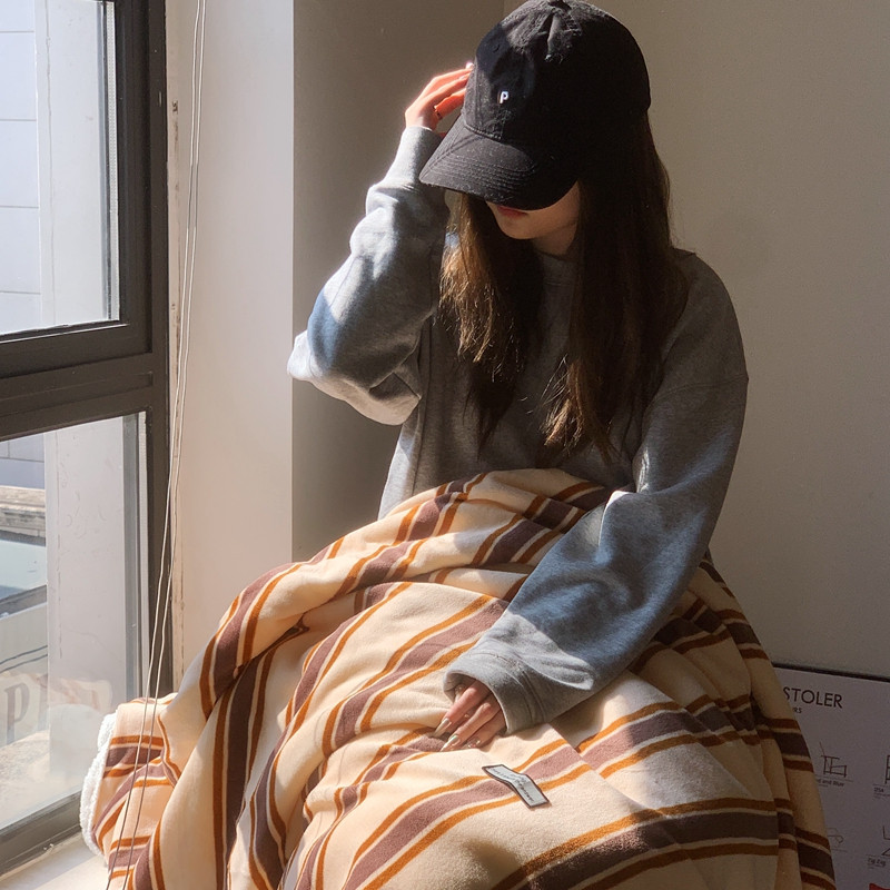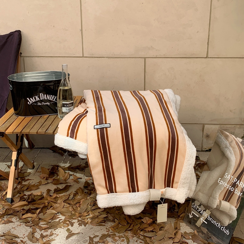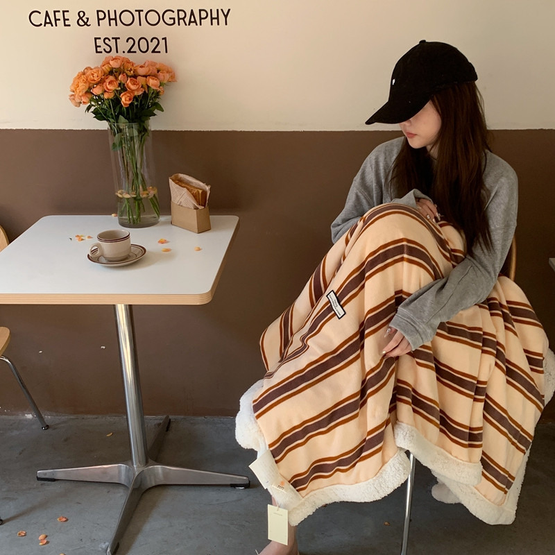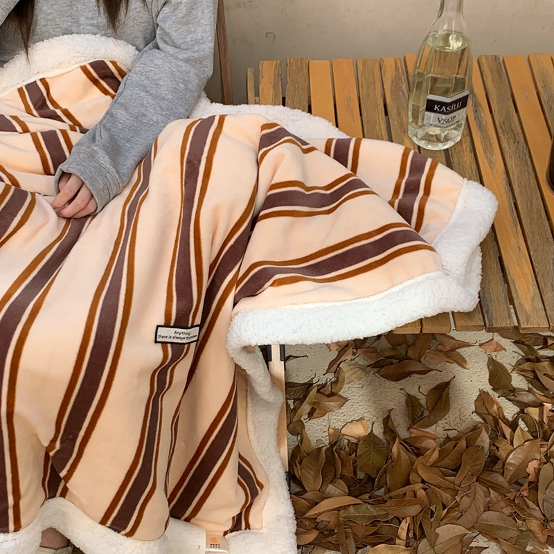 (总)桃喜 2024新款牛奶绒羊羔绒条纹系列盖绒毛毯午休毯多功能毛毯,多巴胺彩条,蓝咖条纹,栗子粉条纹,美式复古红蓝条,美式复古黄蓝条