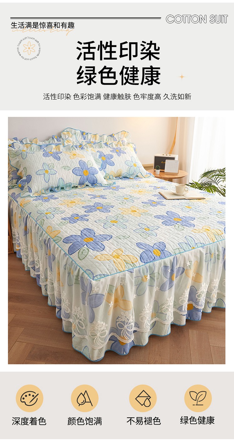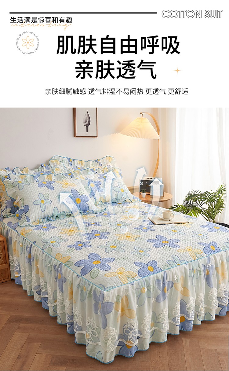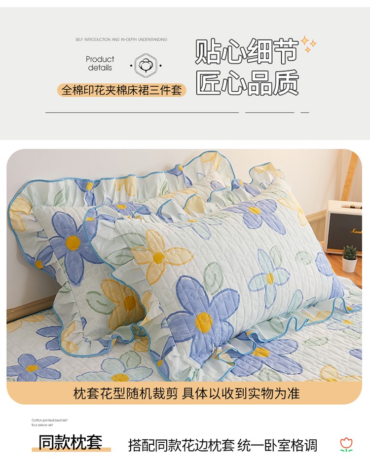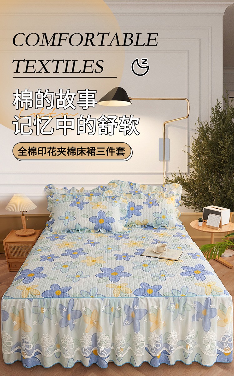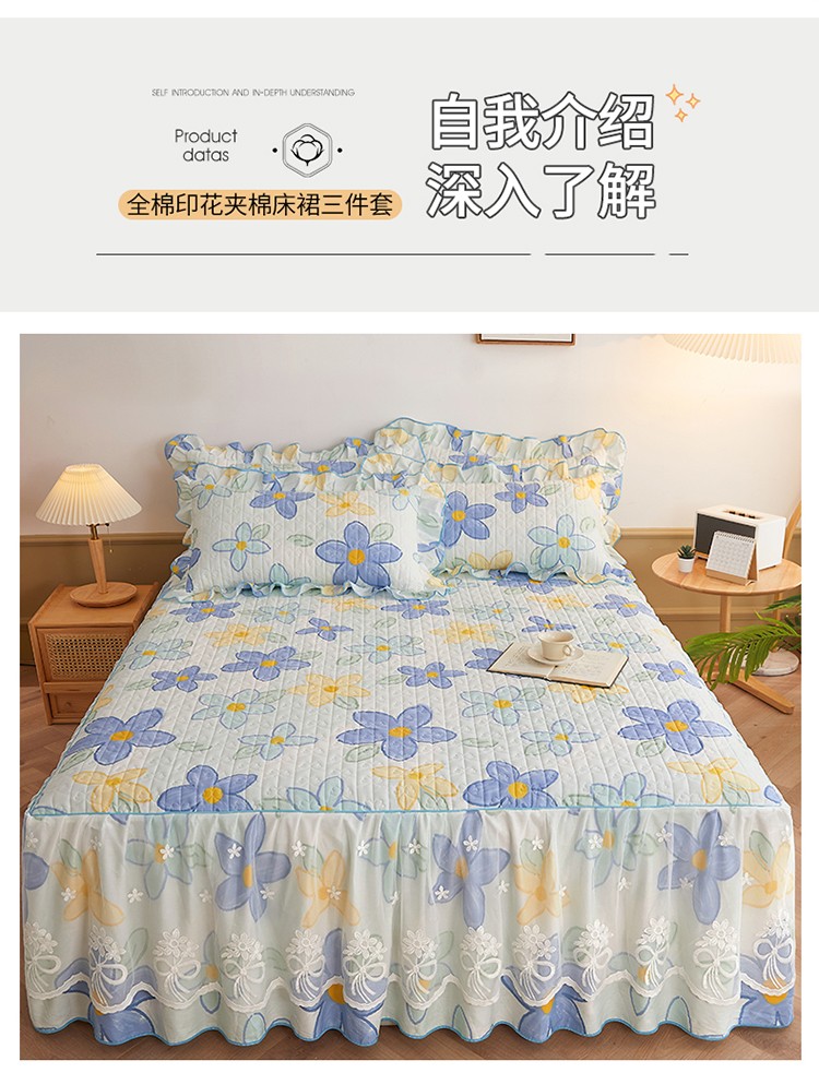 宜凡 2023新款四季款全棉夹棉床裙三件套 千禾