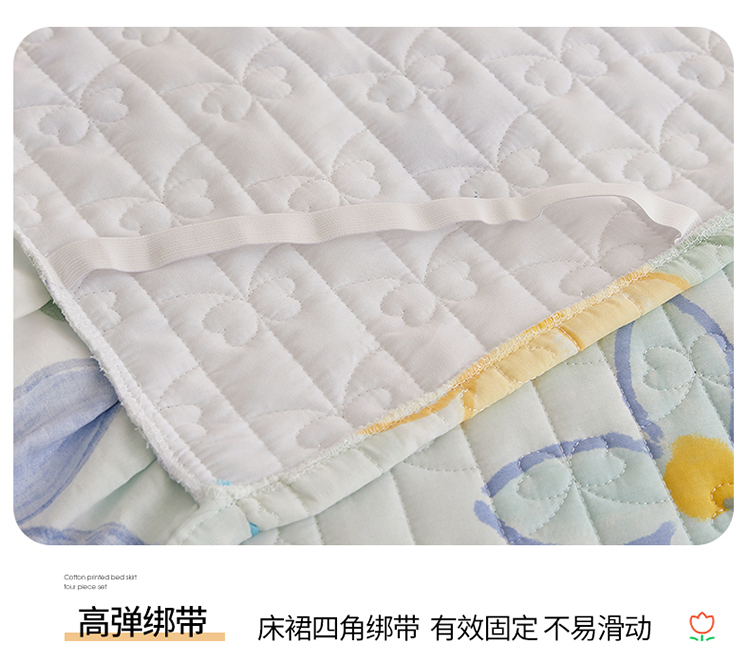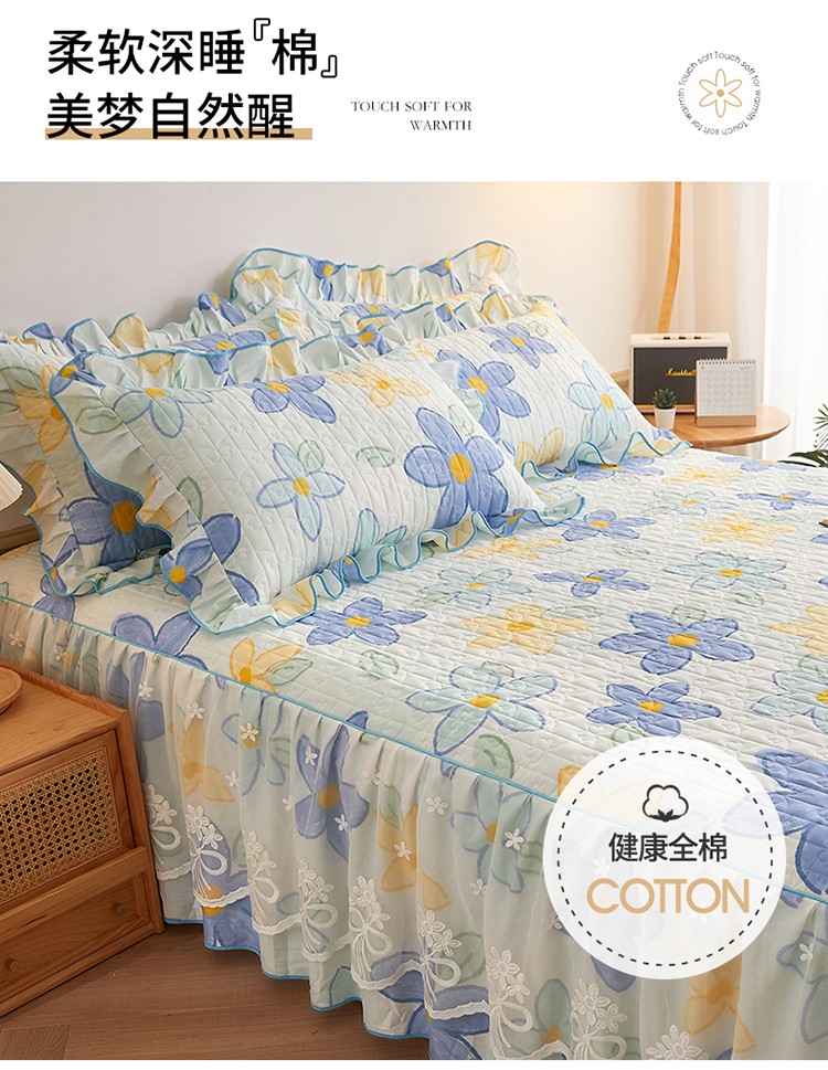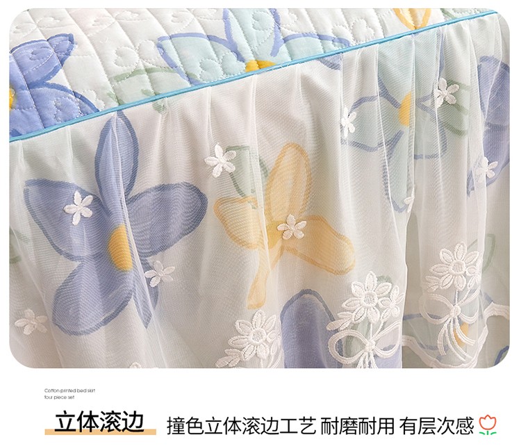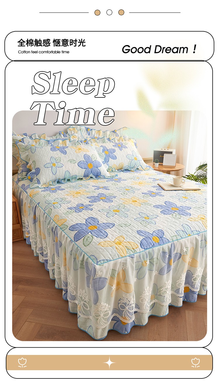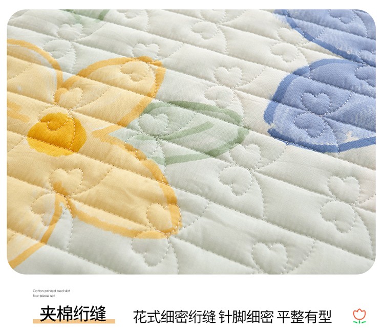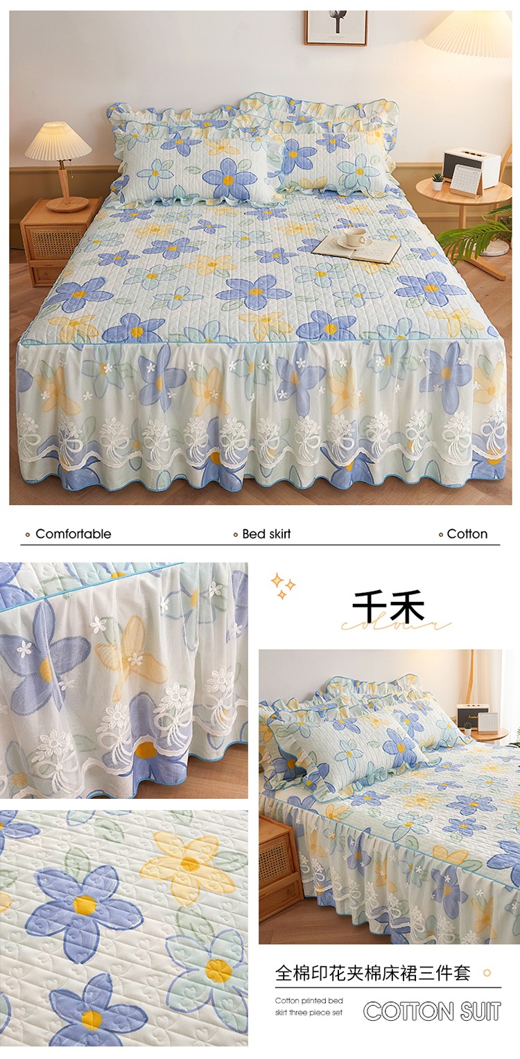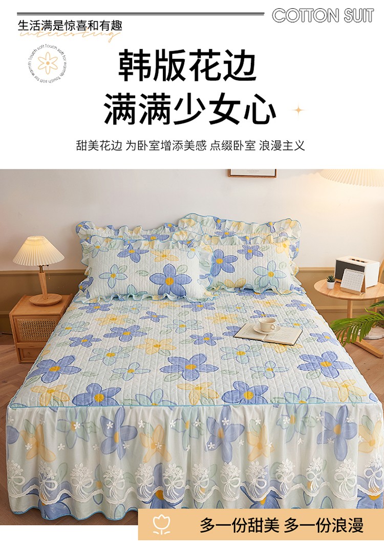 宜凡 2023新款四季款全棉夹棉床裙三件套 千禾