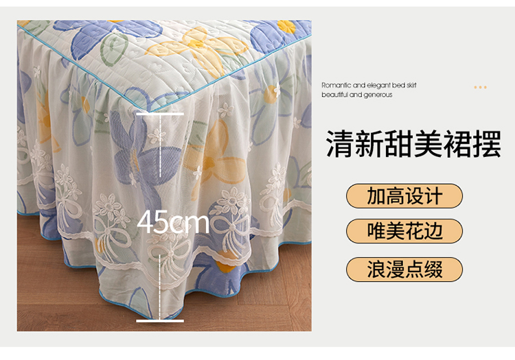 商品名称:宜凡 2023新款四季款全棉夹棉床裙三件套 千禾