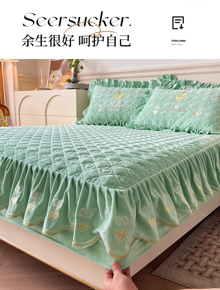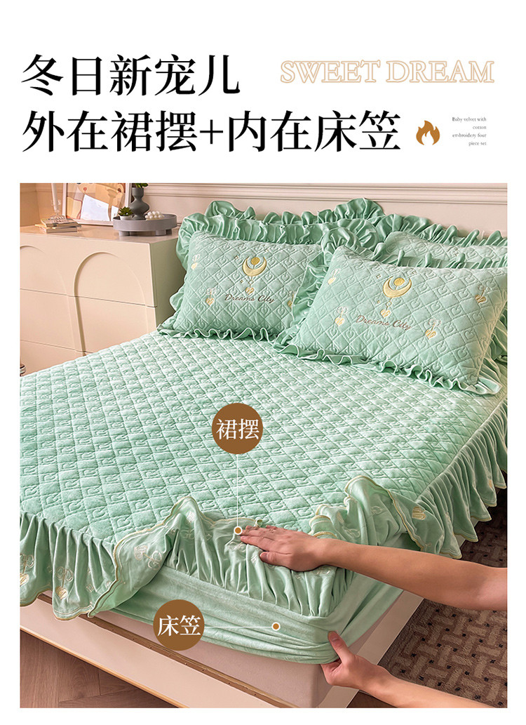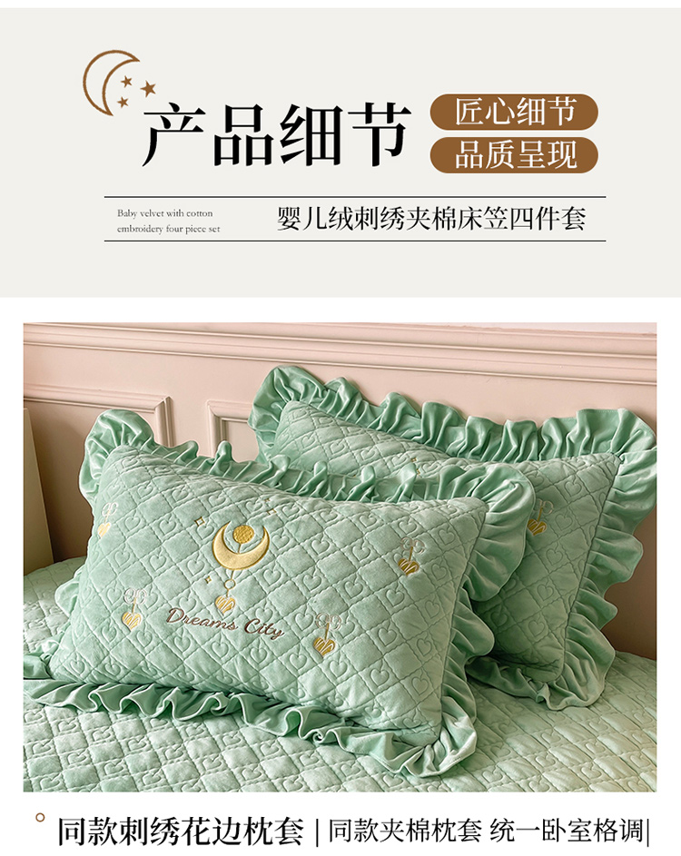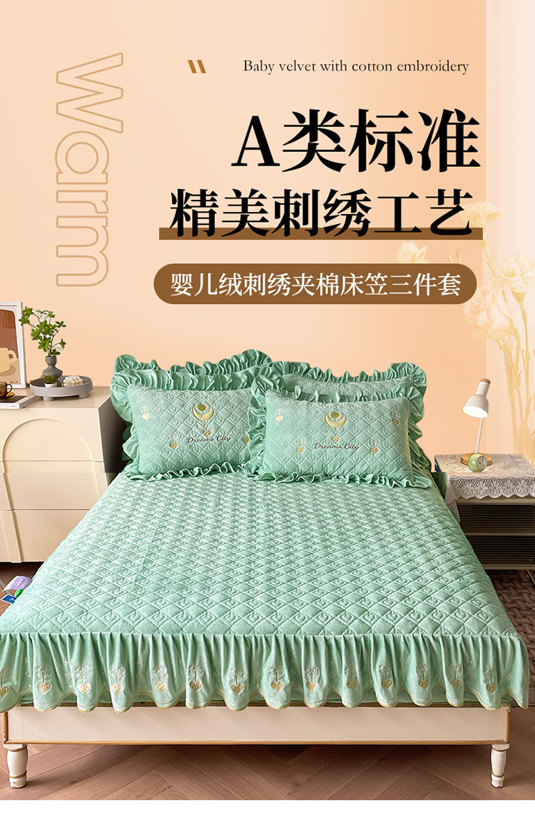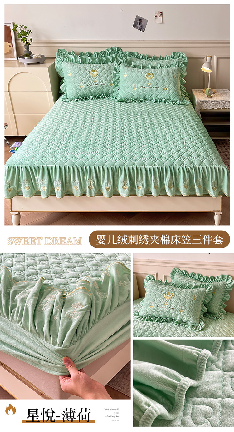 宜凡家纺 2022新款婴儿绒A类床笠三件套 星悅-薄荷