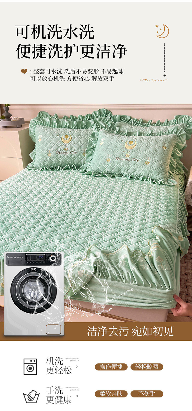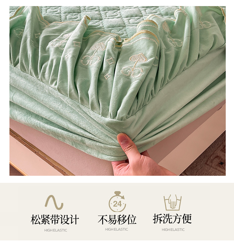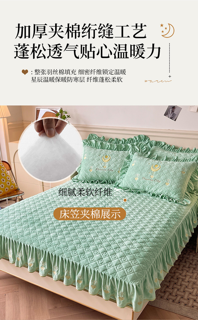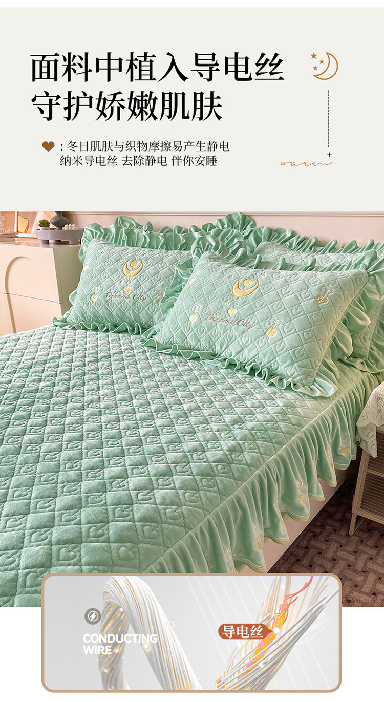 宜凡家纺 2022新款婴儿绒A类床笠三件套 星悅-薄荷