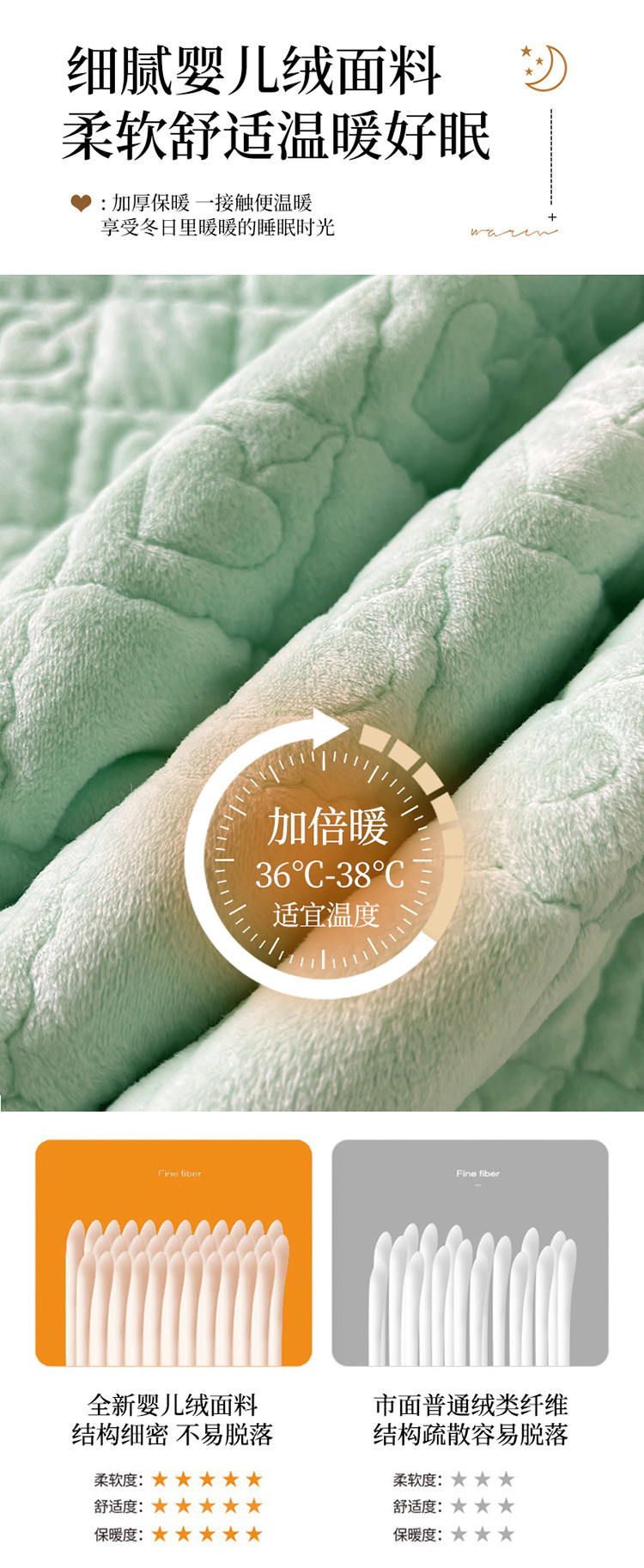 商品名称:宜凡家纺 2022新款婴儿绒A类床笠三件套 星悅-薄荷